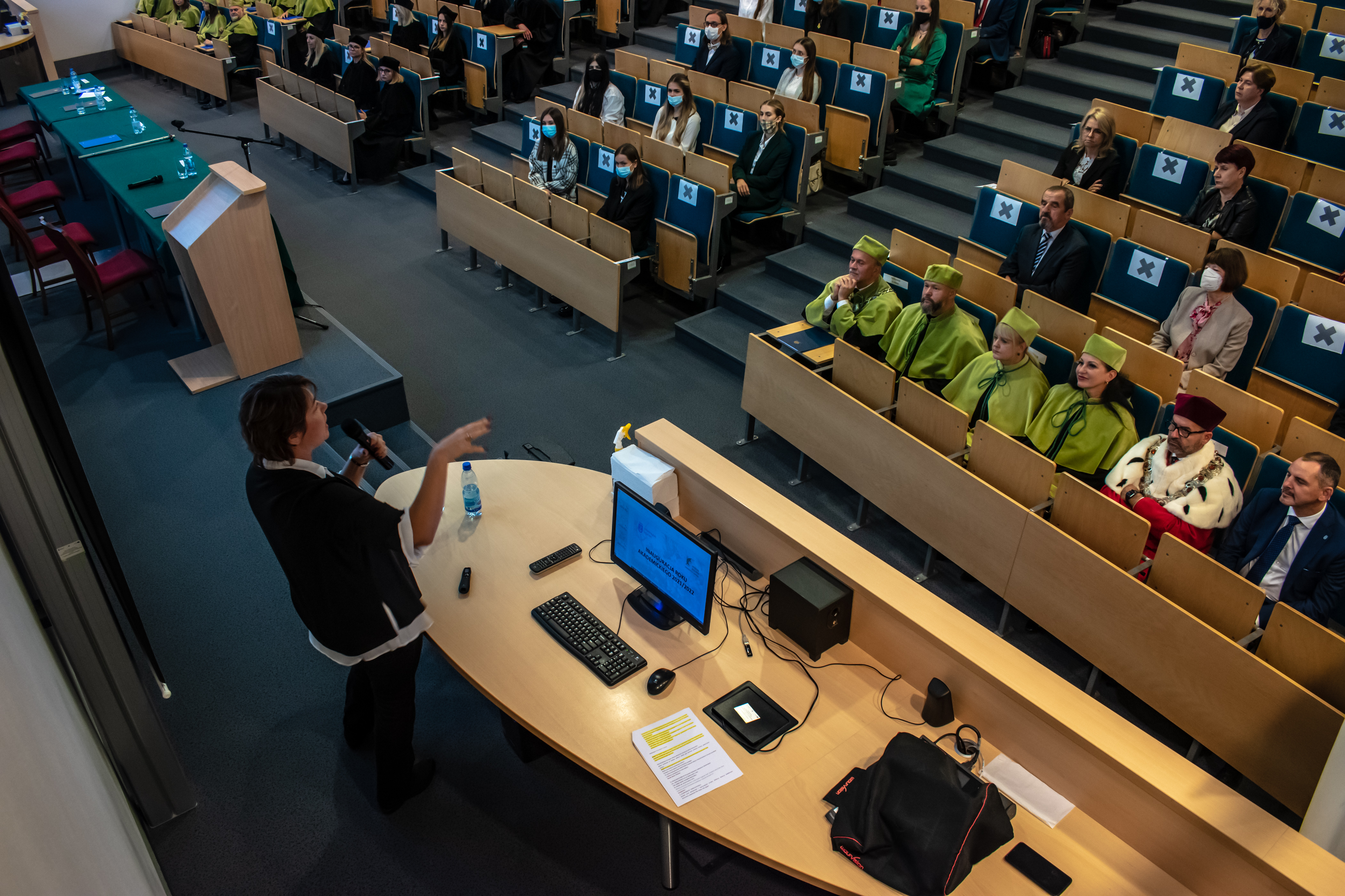 Wykład inauguracyjny pt. „Historia ewolucyjna amonitów: wielki triumf i tragiczny finał” wygłosiła dr hab. Elena Yazykova, prof. Uniwersytetu Opolskiego.