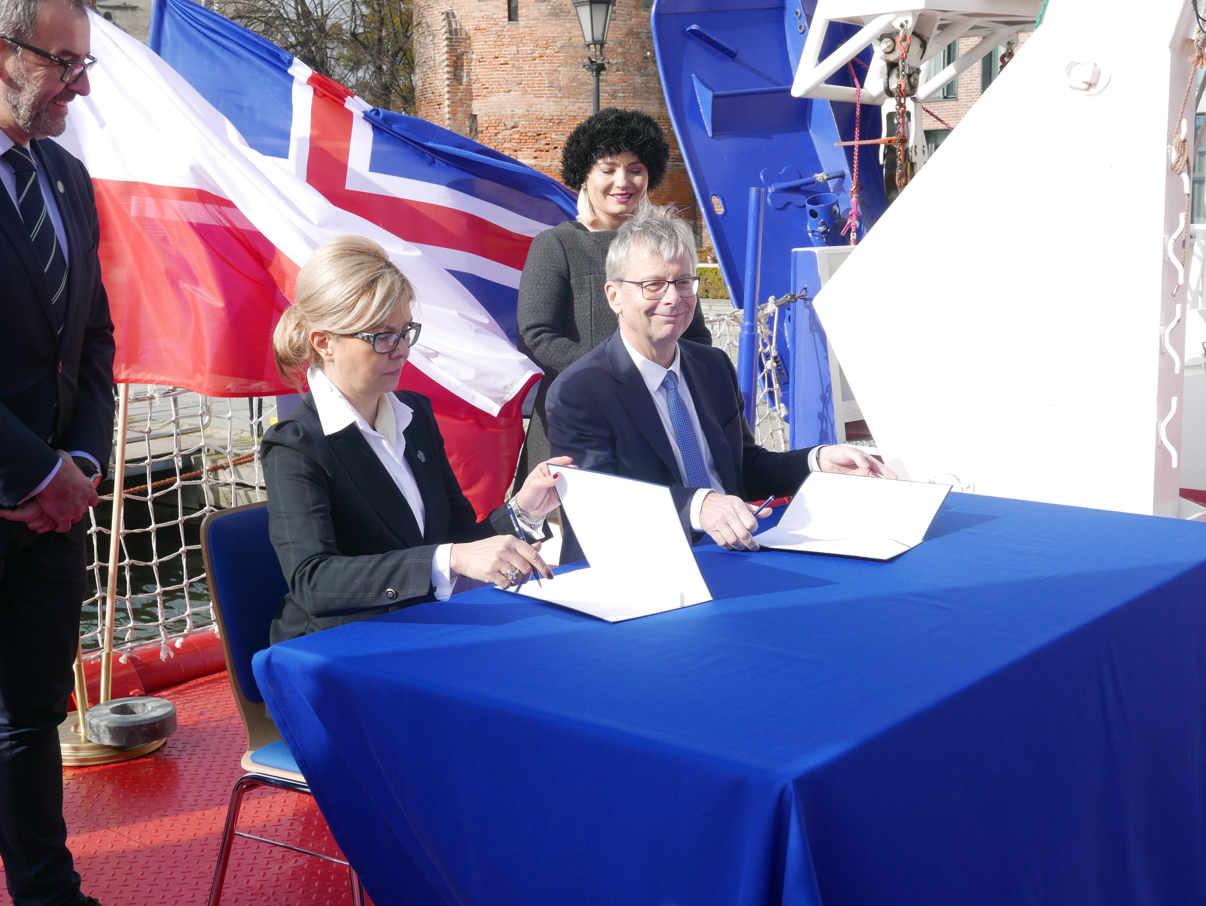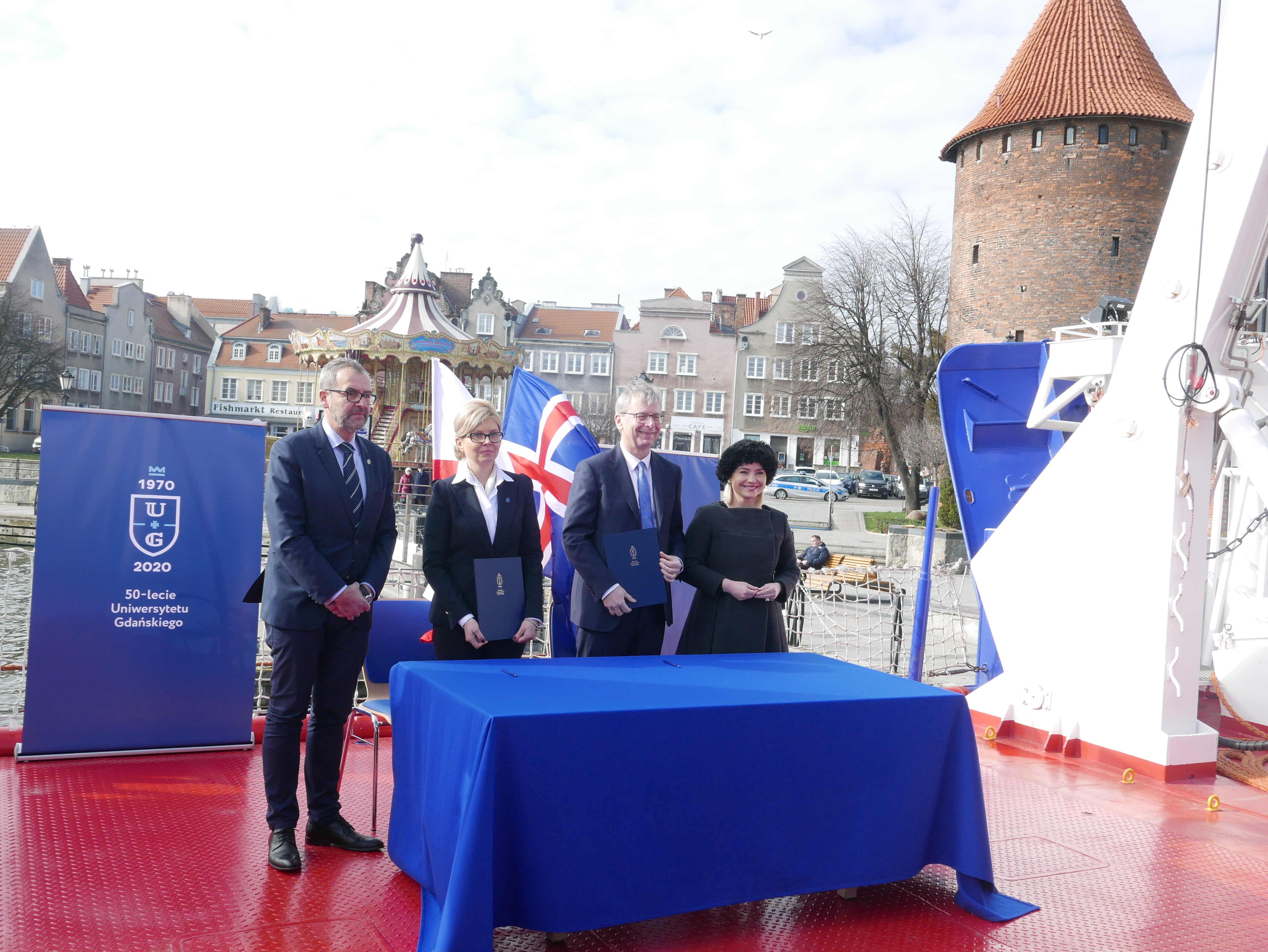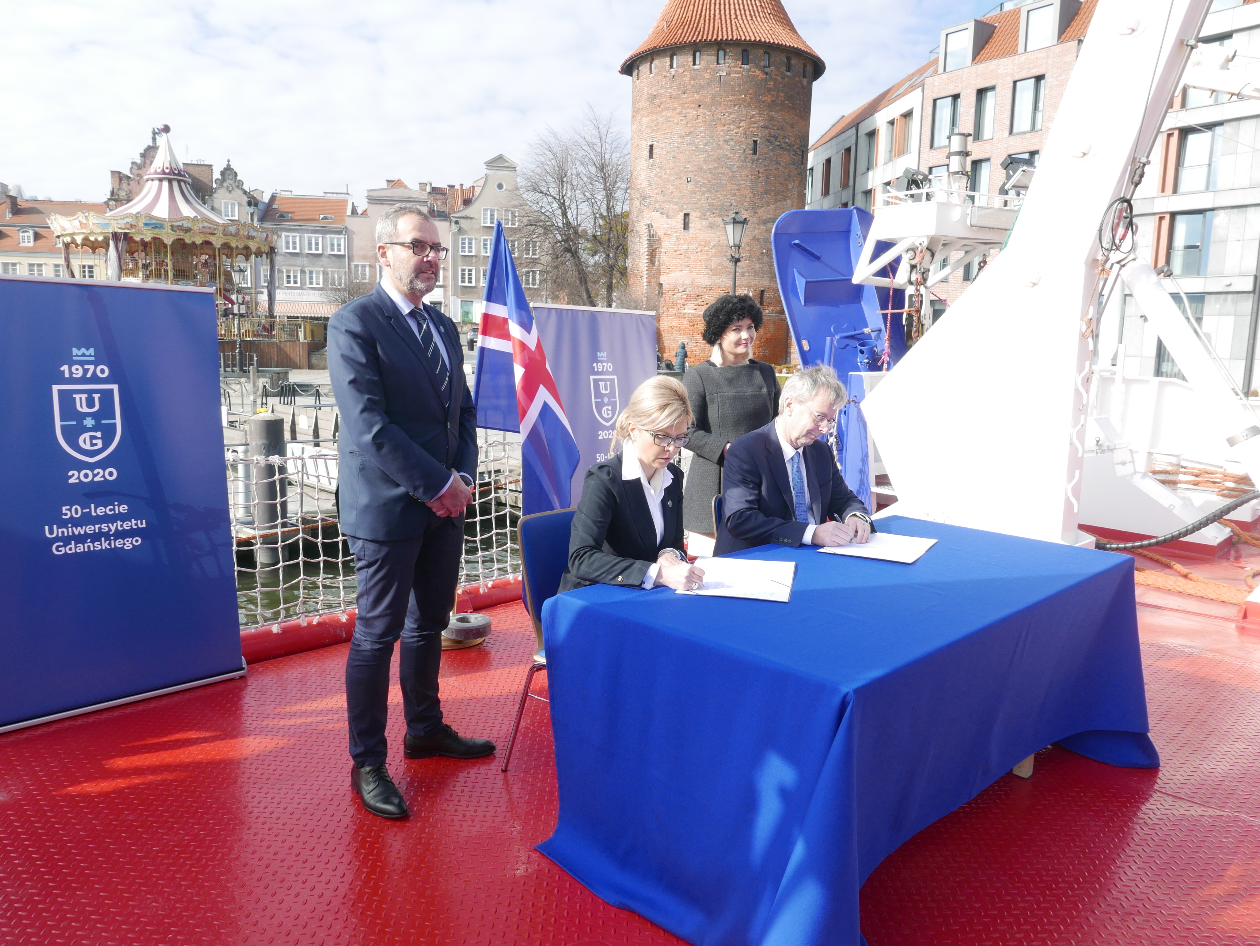 Podpisanie porozumienia pomiędzy Uniwersytetem Gdańskim a Uniwersytetem Islandzkim odbyło się 5 marca 2020 roku na pokładzie statku r/v Oceanograf, należącego do Uniwersytetu Gdańskiego. W imieniu Uniwersytetu Gdańskiego memorandum podpisała prof. Aneta Oniszczuk-Jastrząbek – Prorektor ds. Informatyzacji i Umiędzynarodowienia UG, a Uniwersytet Islandzki w Reykjaviku reprezentował Rektor – Dr Jón Atli Benediktsson. Porozumienie zakłada wymianę pracowników naukowych i studentów oraz współpracę w zakresie wspólnych przedsięwzięć badawczych i organizacyjnych.