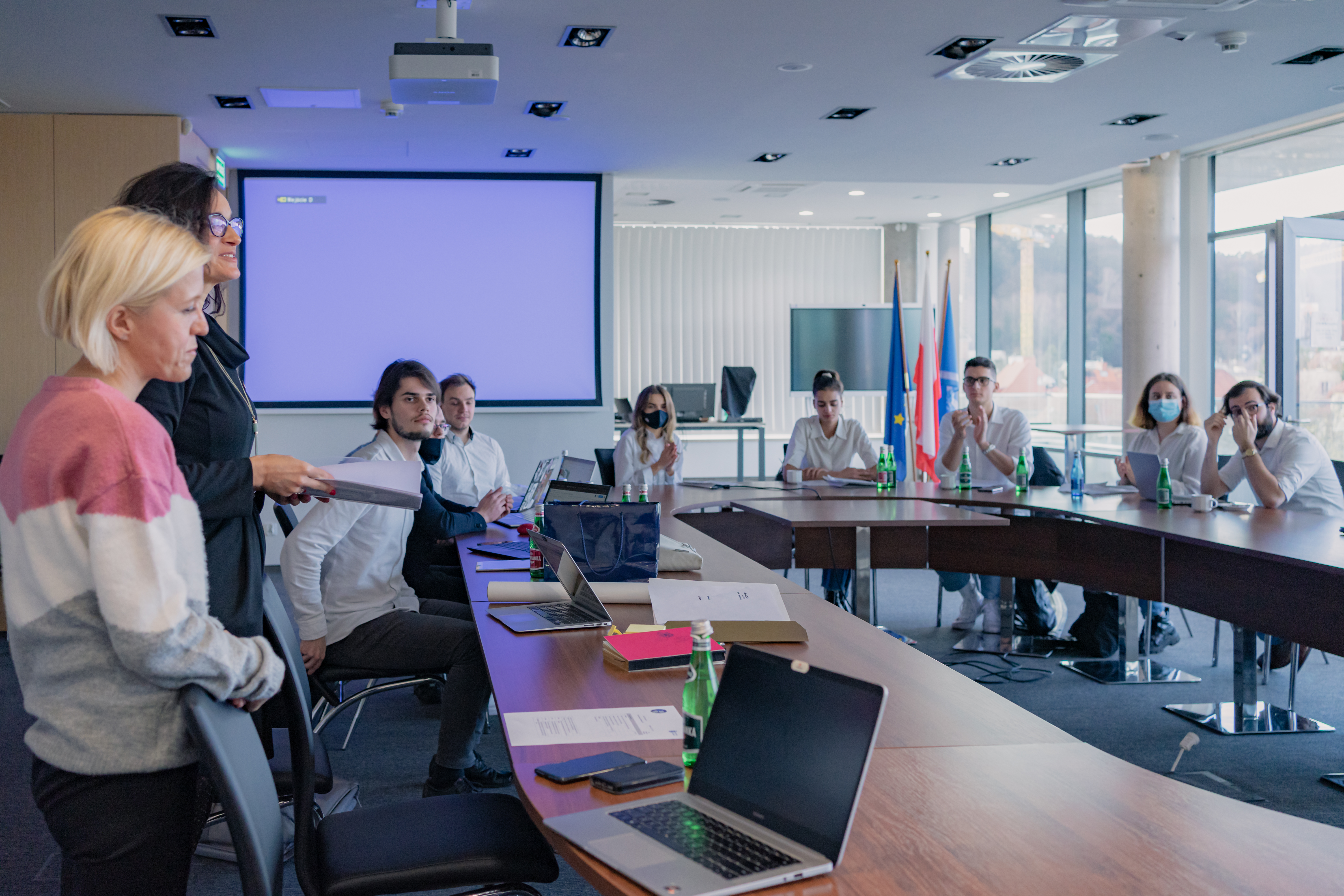 Po wielogodzinnej pracy i przygotowaniach przyszedł czas na finałowe prezentacje przed jury, w skład którego weszły prowadzące spotkanie oraz prof. Krzysztof Bielawski, prof. A. Kłonczyński i dr Sebastian Susmarski. Jako pierwsi zaprezentowali się studenci kierunku dyplomacja (Bartosz Duraj, Miłosz Andraka, Zuzanna Neubauer, Aleksander Piskorz, Paulina Pitsikalis, Aleksandra Selwon), których projekt Assembly of Tomorrow dotyczy zbudowania partycypacyjnego modelu dialogu pomiędzy studentami i wypracowywaniu rozwiązań wpisujących się w cele zrównoważonego rozwoju ONZ. Ten pomysł zbudowany jest przede wszystkim na koncepcji oddolnej współpracy i łączenia potencjałów studentów z różnych dyscyplin naukowych. Drugi zespół stanowili studenci matematyki i informatyki (Jakub Możejko, Kamil Szlagowski, Kamil Plewka, Kacper Budniak), którzy zaproponowali aplikację i narzędzie Studdy Buddy! mające postać platformy wsparcia i współpracy studentów w zakresie opanowywania materiału. Celem projektu jest przeciwdziałanie zbyt dużej liczbie studentów rezygnujących z nauki w trakcie pierwszego roku studiów. I wreszcie trzeci projekt studentów oceanografii (Adam Jurkiewicz, Jarosław Matwiejczuk, Natalia Wierzbicka-Mróz) to Generation of RE-Makers, zakłada utworzenie w murach uczelni warsztatu, przestrzeni kreatywnych napraw i designu, które będą zapobiegać generowaniu przez uczelnię elektro śmieci. Idea opiera się na współpracy międzypokoleniowej, niejako powrotem do starej tradycji „naprawiania” a nie wyrzucania przedmiotów. W tym celu właśnie potrzebna jest pomoc starszej generacji, majsterkowiczów, rzemieślników, którzy będą dzielić się swoimi umiejętnościami.