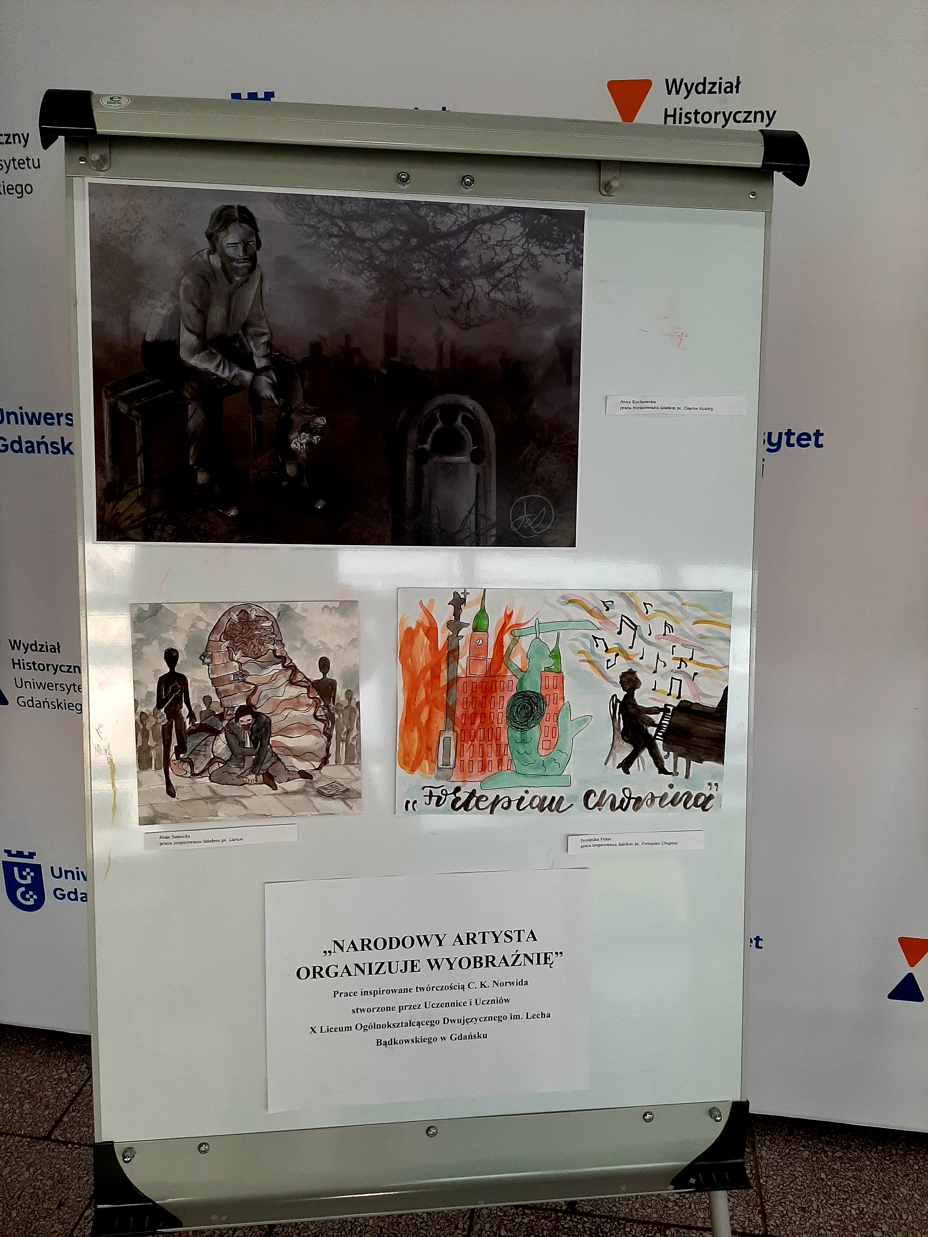Wśród wydarzeń zorganizowanych w ramach Dnia z Norwidem na UG była ekspozycja przygotowywanych przez dwa miesiące różnych prac związanych z tym projektem. Na scenie wystąpili licealiści X Liceum Ogólnokształcącego Dwujęzycznego im. Lecha Bądkowskiego z inscenizacją spektaklu "Słodycz". Chór XIX Liceum Ogólnokształcącego im. Mariana Mokwy przedstawił muzyczną interpretację kilku wierszy.