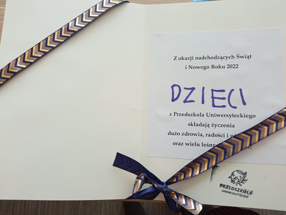 Z pewnością była to niecodzienna wizyta. Grupa przedszkolaków mile zaskoczyła władze UG. Samodzielnie przygotowane kartki z życzeniami świątecznymi maluchy wręczyły Rektorowi UG, prof. Piotrowi Stepnowskiemu, oraz Zespołowi Kanclerskiemu UG.