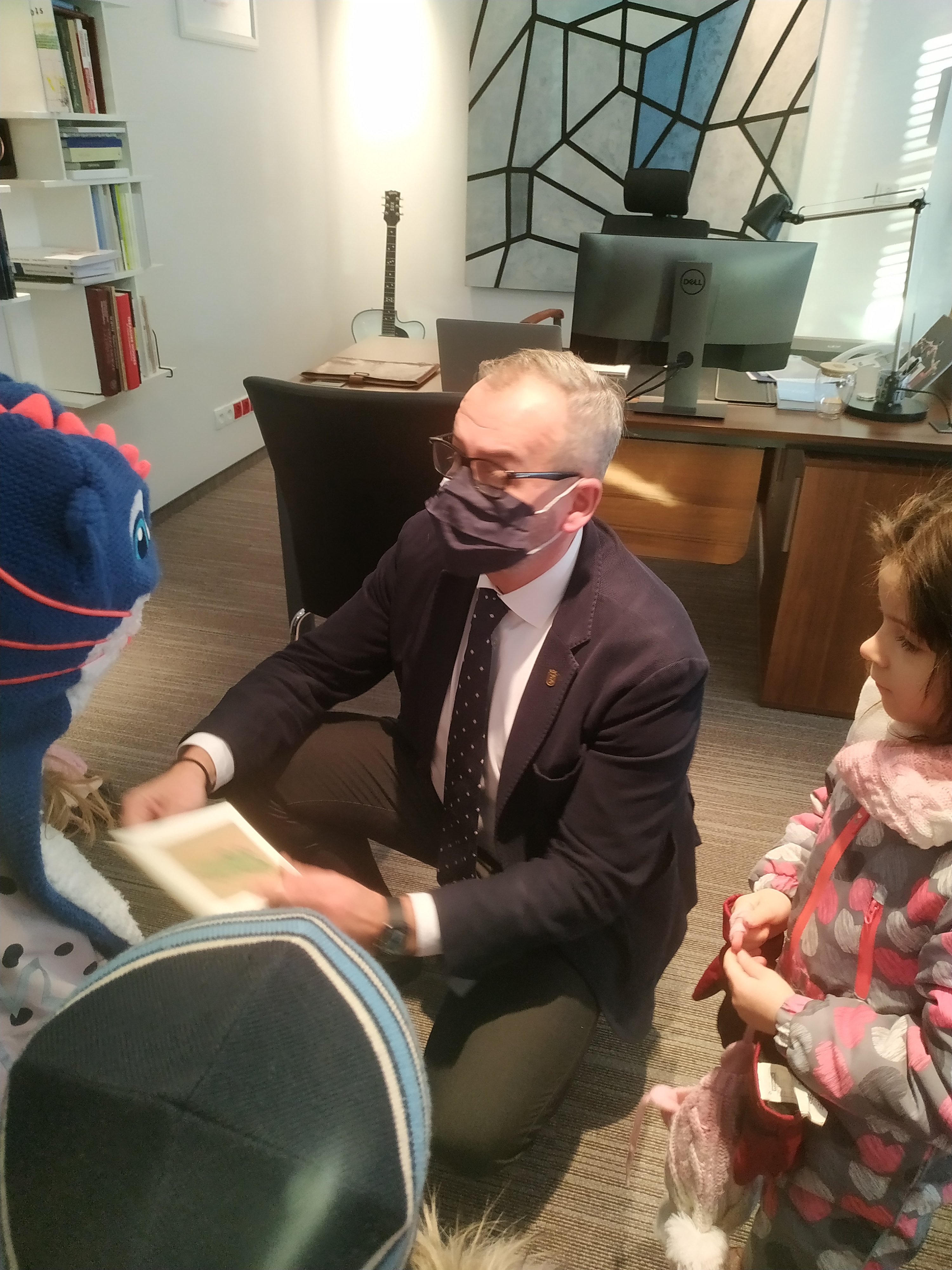 – To były bardzo fajne, spontaniczne odwiedziny. Dzieci natychmiast się ośmieliły i równie szybko zrewidowały, co Pan Kanclerz ma na biurku – maskotka sowa cieszyła się niewątpliwie największym zainteresowaniem – opowiada z uśmiechem mgr Grażyna Tałanda, Zastępca Kanclerza ds. Administracyjnych.