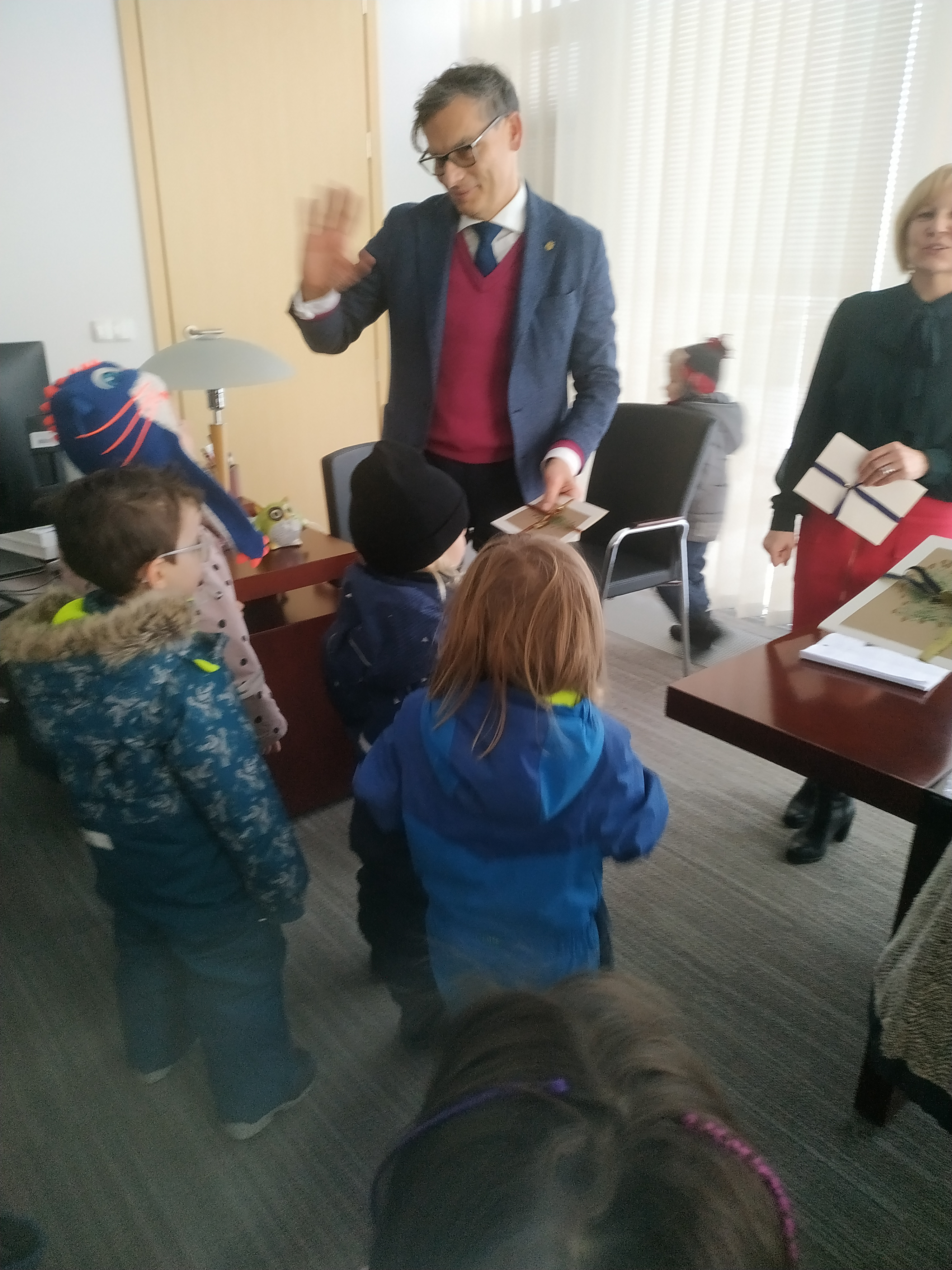 Grupa dzieci z Przedszkola Uniwersyteckiego odwiedziła Władze Uniwersytetu Gdańskiego. Maluchy wręczyły rektorowi własnoręcznie wykonane kartki świąteczne.
