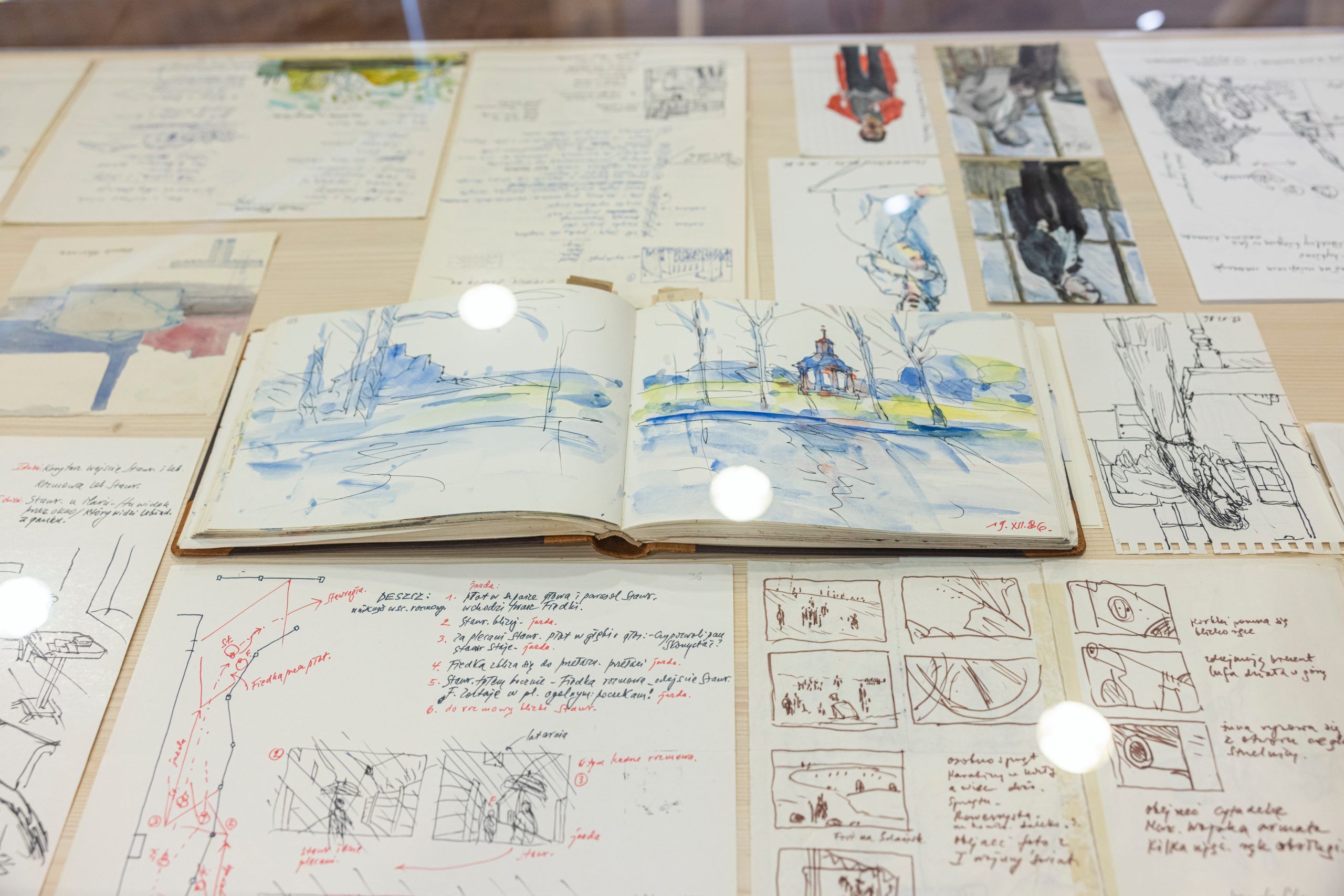 Niezwykle interesującą częścią ekspozycji, szczególnie dla filmoznawców są szkice i materiały, dotyczące realizacji filmowych i spektakli teatralnych. W gablotach wystawy umieszczono sporo storyboard’ów scen, czyli rysunkowych scenopisów, które były szczegółową wizją artysty i wytycznymi do realizacji filmów.