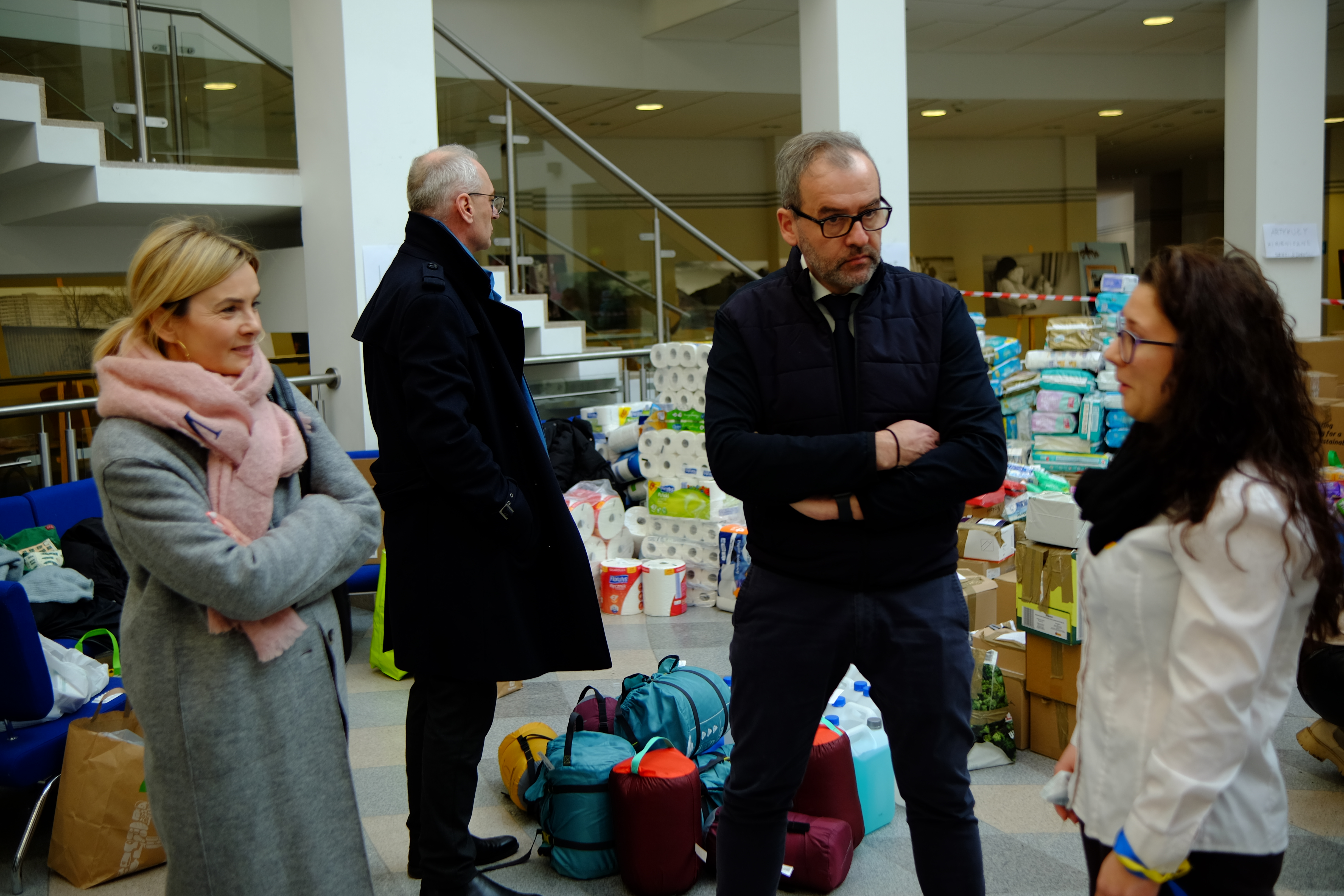 Ponad 400 busów wypełnionych darami wyjechało do wczoraj (01.03.2022) spod WNS UG. Wszystko dzięki studenckiej akcji #StudencidlaUkrainy. Władze Uniwersytetu Gdańskiego odwiedziły członków społeczności akademickiej prowadzących zbiórkę na rzecz Ukrainy na Wydziale Nauk Społecznych UG.