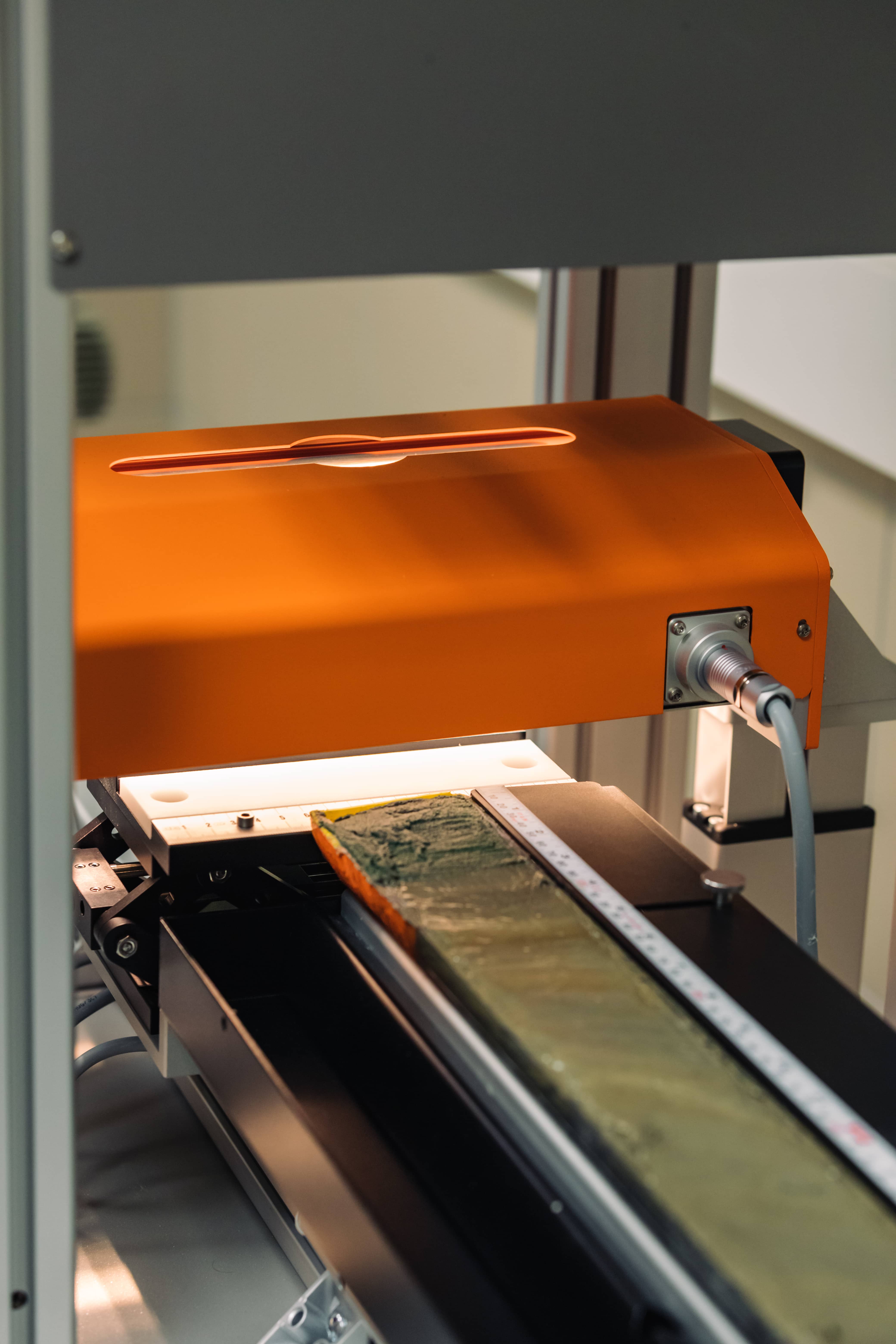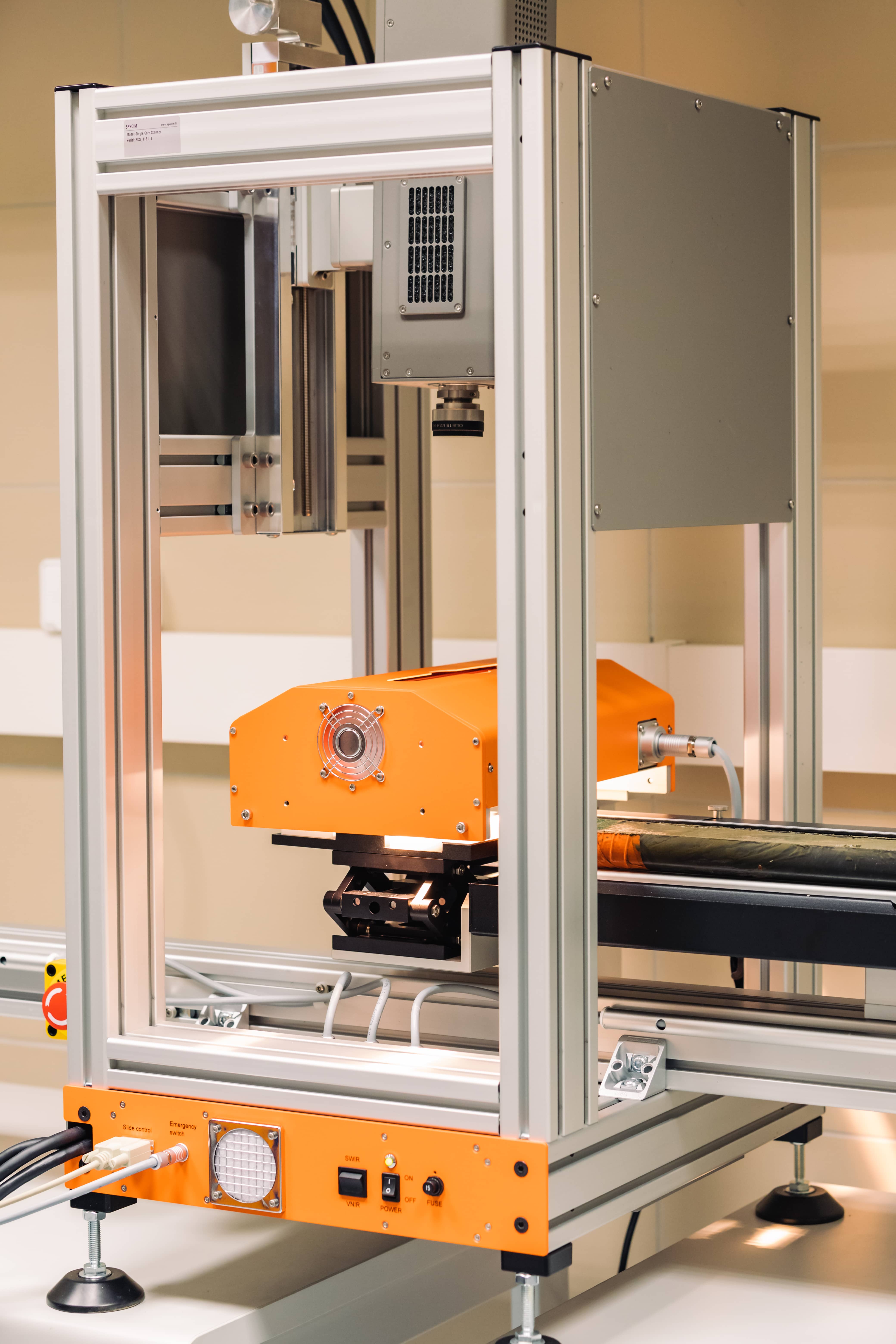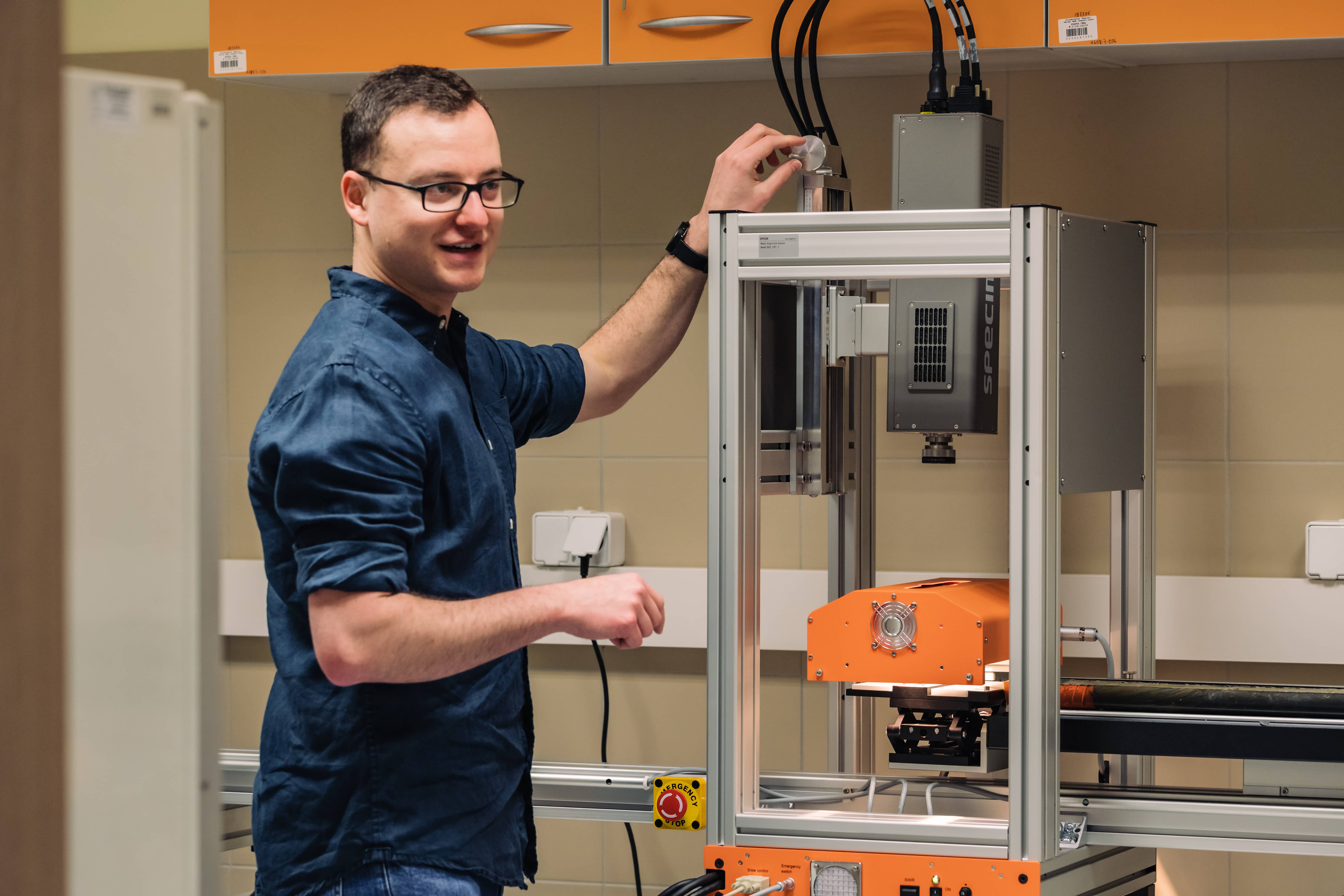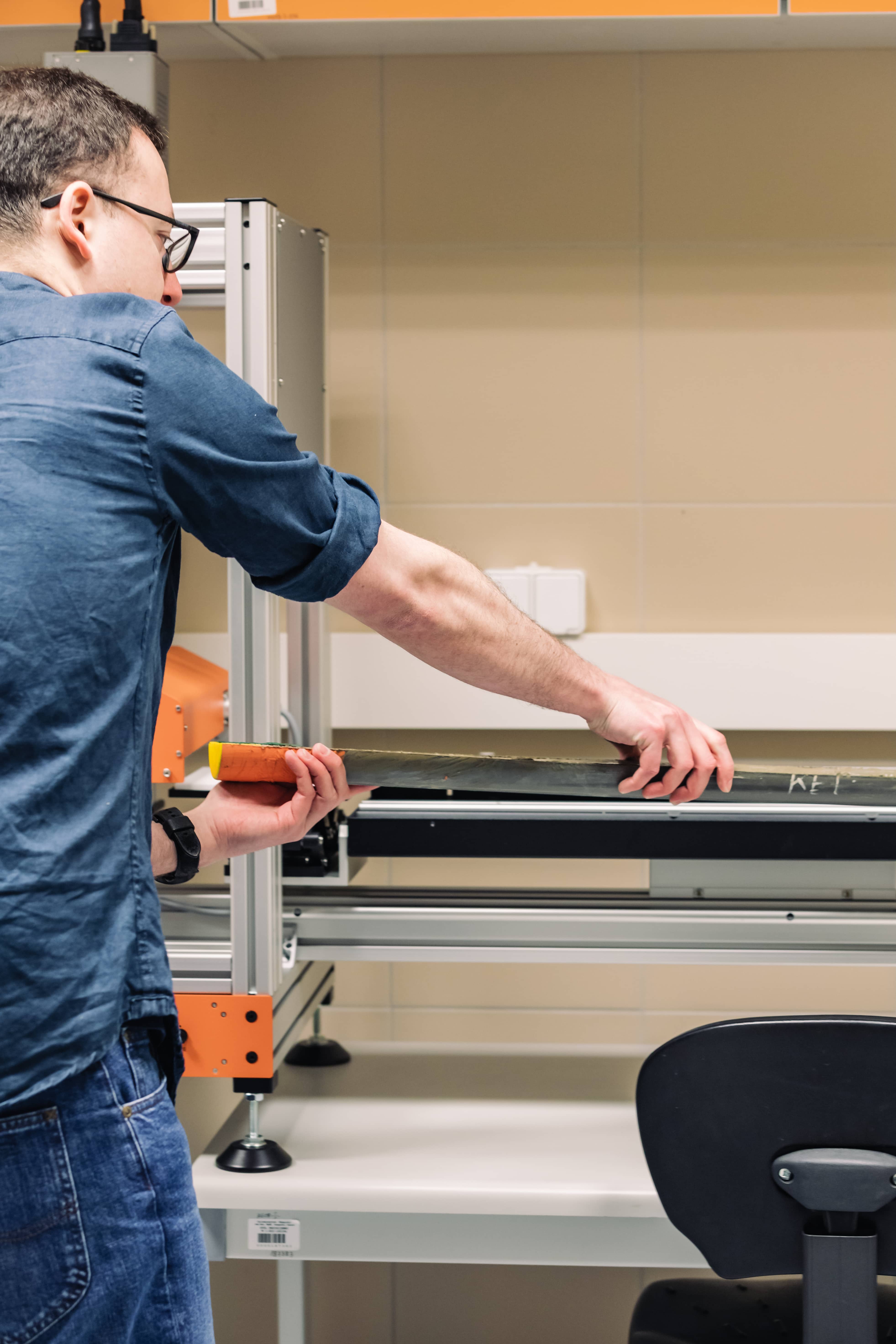 - Dokładnie taki jest plan. Ten sprzęt daje niesamowite możliwości. Służy do obrazowania hiperspektralnego osadów. Zamontowana w nim kamera hiperspektralna jest bardzo dokładna, „widzi” dużo więcej „światła” niż my i zbiera więcej informacji o obserwowanych obiektach. To taki aparat fotograficzny na legalnym dopingu. Kamera patrzy na całą powierzchnię próbki i tworzy mapę, zdjęcie o bardzo wielu pasmach (promieniowania elektromagnetycznego). Normalnie myśląc o zdjęciu myślimy o czymś opisanym przez trzy kanały – czerwony, zielony i niebieski. Kamera hiperspektralna takich kanałów rejestruje niemal 800. Wyobraź też sobie, że skaner wykonuje kilkadziesiąt pomiarów w milimetrze rdzenia. W każdym z tych punktów w tym samym czasie określa ile jest „produktów” funkcjonowania różnych organizmów albo jakie budują go minerały i jak duże są różne komponenty osadu. To mnóstwo informacji, które informują nas o przeszłości.