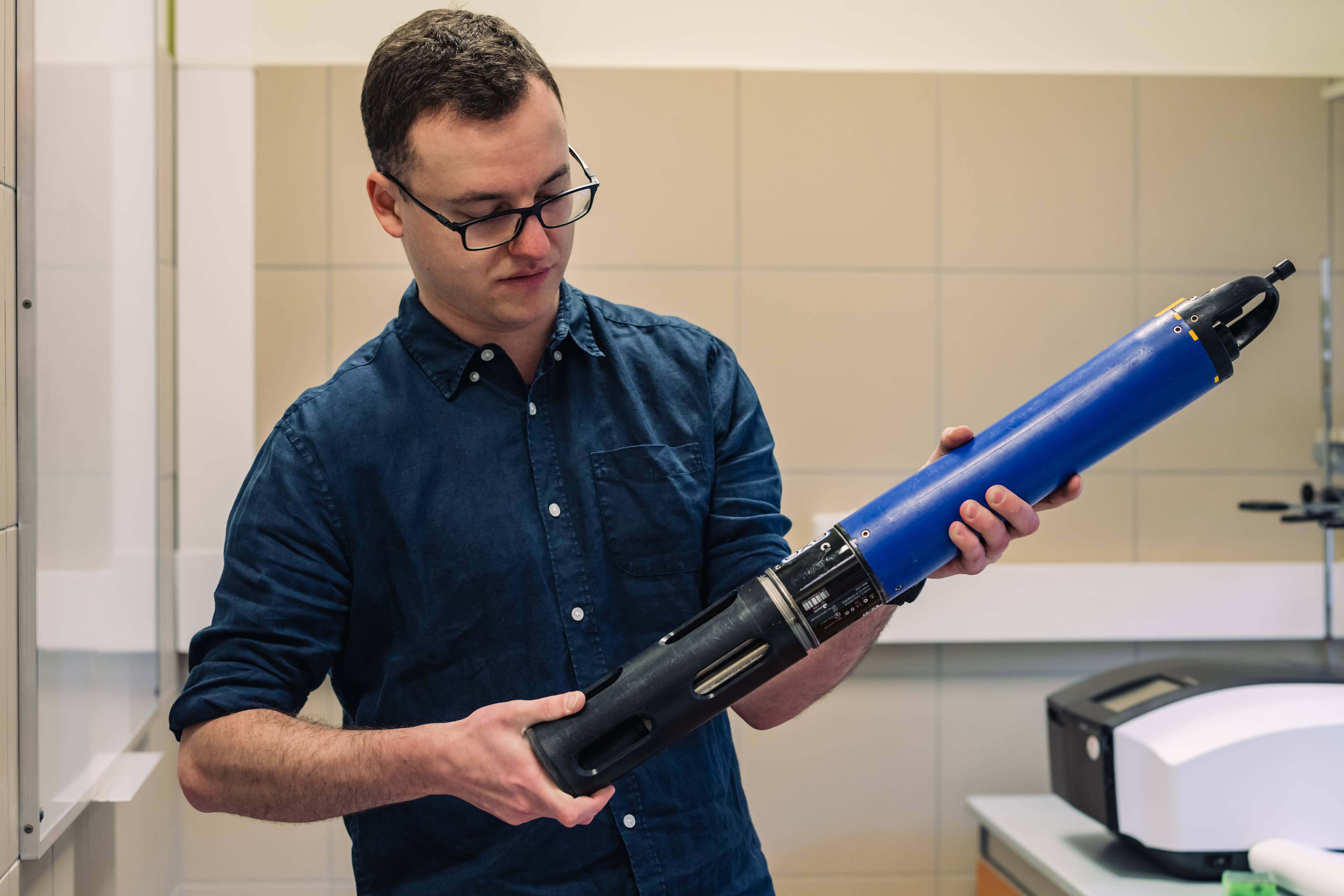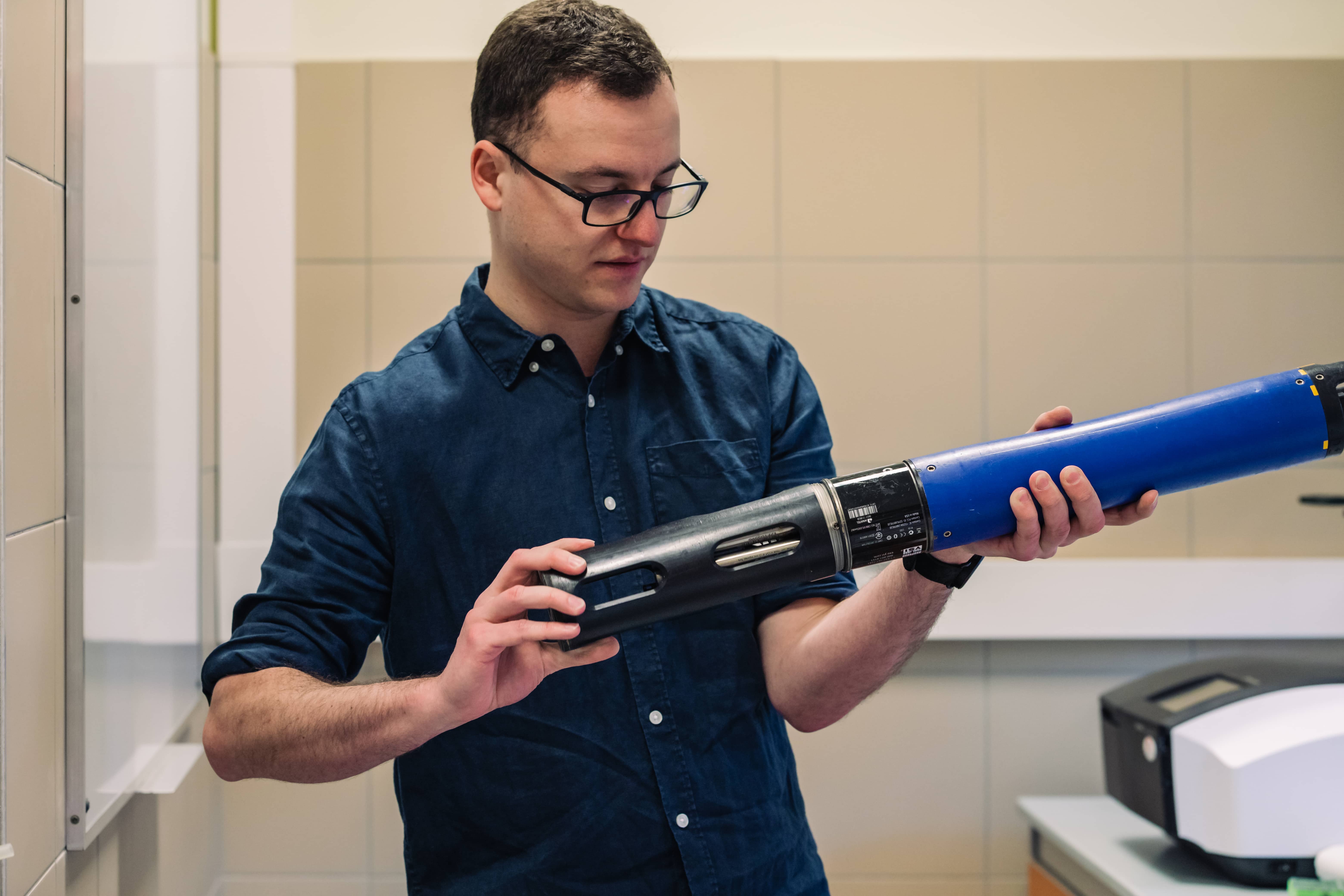 Na zdjęciu dr Maurycy Żarczyński programujący automatyczną pułapkę sedymentacyjną.