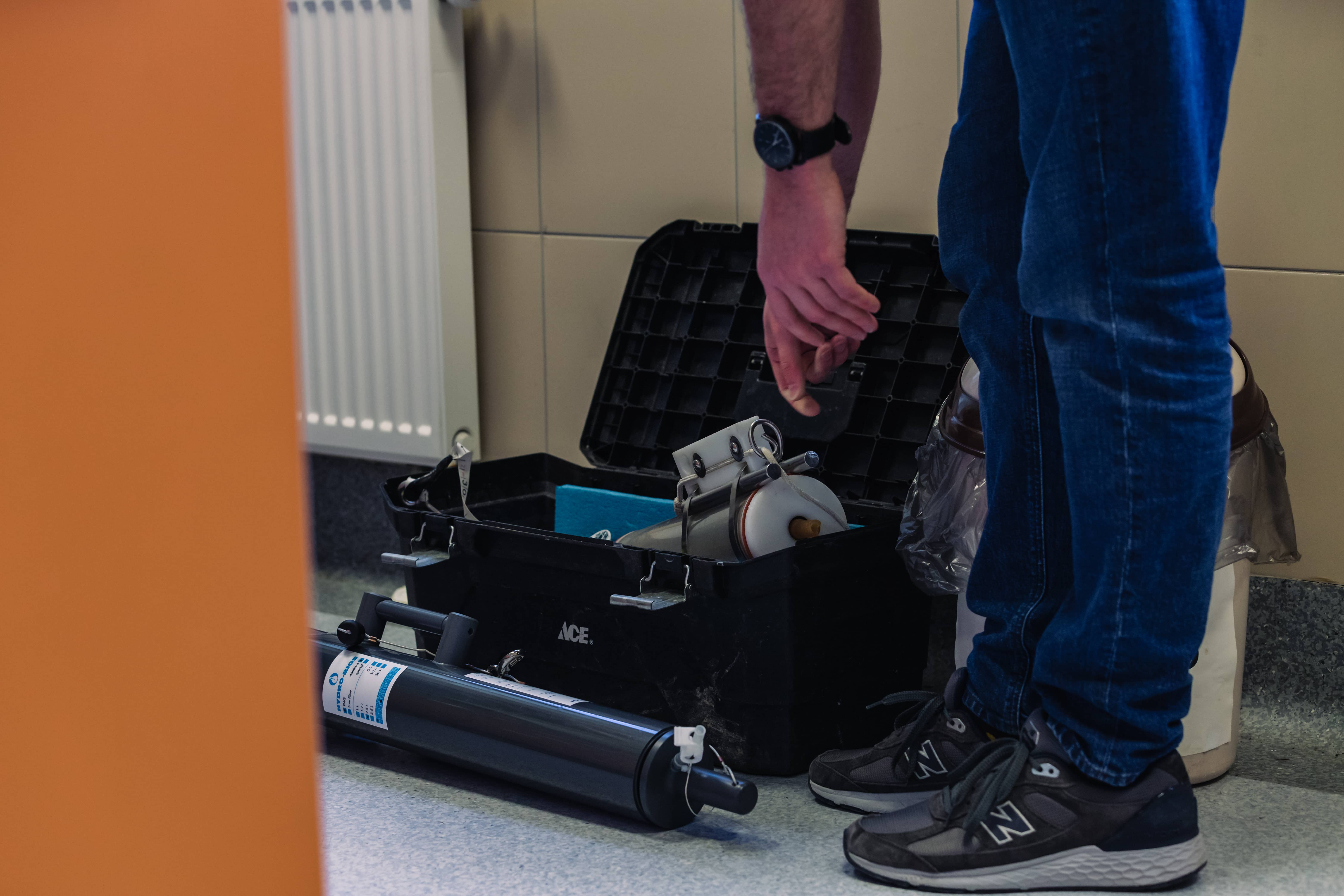 Historie o sprzęcie można by długo opowiadać. Robimy to od lat, wydaje się, że mamy na pontonie wszystko zorganizowane co do centymetra, a i tak - co może to się plącze. Zdarzyło nam się też utopić GPS-y albo stracić krążek Secchiego – przy ciężkiej pogodzie nietrudno o to, coś może pęknąć, coś może się zerwać, zimą ręce tracą czucie. Choć staramy się dokładnie zabezpieczyć sprzęt, przypinamy go na linkach i karabinkach, nie zawsze udaje się go ocalić.