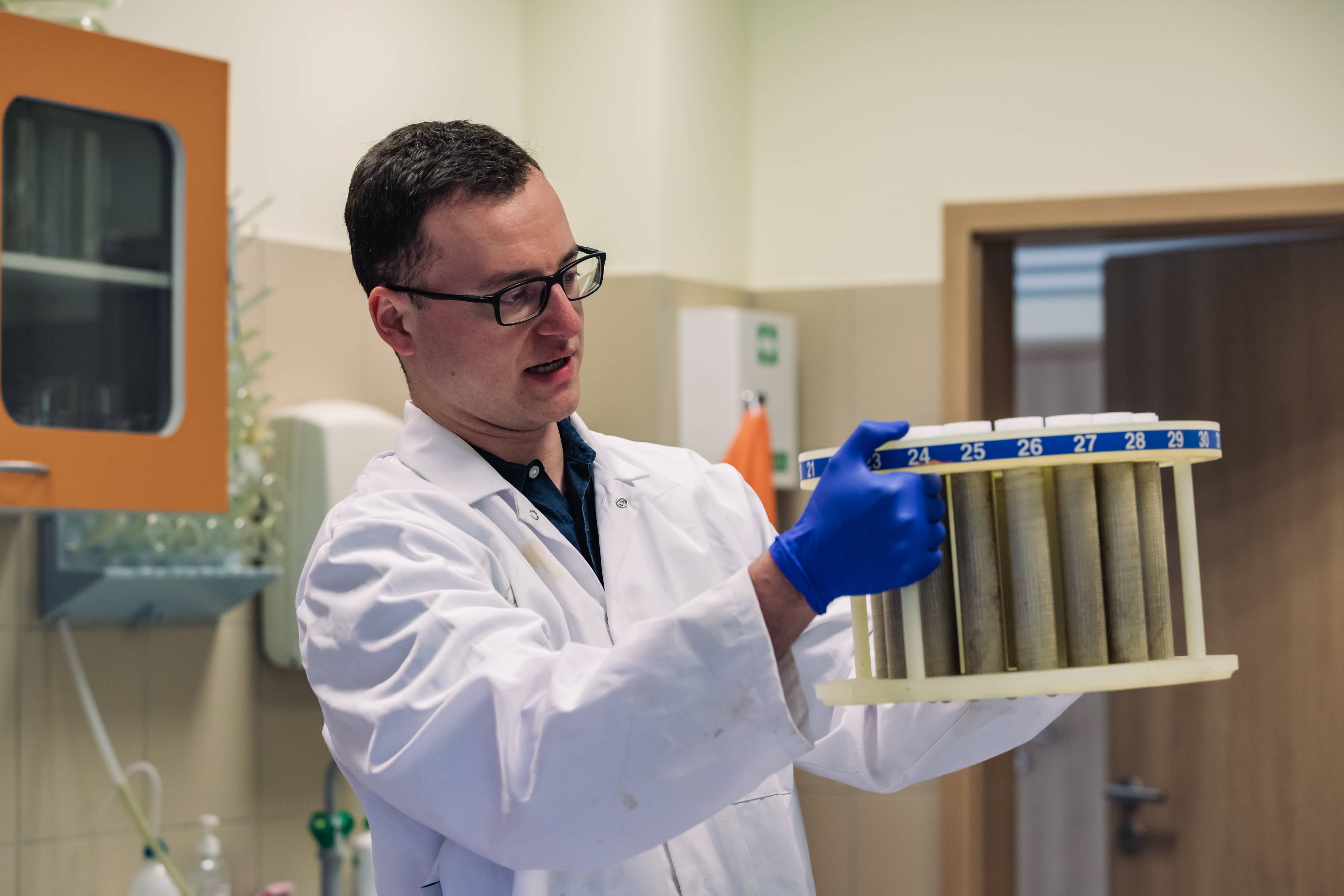 Osobiście skupiam się przede wszystkim na tym, co zmienia się w składzie chemicznym osadów. W pobranych próbkach wykonujemy na przykład oznaczenie zawartości węgla organicznego i nieorganicznego oraz azotu i siarki (to tzw. analiza elementarna), które informują nas m.in. o tym, ile w osadzie jest materii organicznej. Osady skanujemy też z wykorzystaniem nowoczesnych technik o ciekawych i niewiele mówiących skrótach nazw - µXRF (pierwiastki), HSI (pigmenty). Zajmujemy się też geochronologią, czyli opracowaniem skali czasu. Część materiału trafia na przykład do próbówek i obudowanego ołowiem spektrometru gamma, gdzie każdą próbkę mierzy się przez całą dobę (tu mierzymy m.in., ile jest radioaktywnego cezu-137, czyli sztucznego pierwiastka wytworzonego w dużych ilościach przez człowieka w trakcie testów jądrowych i po katastrofie w Czarnobylu).