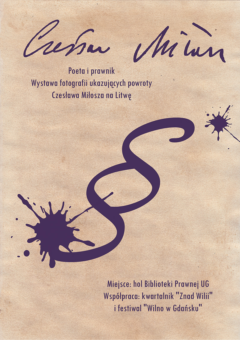 W nawiązaniu do tej dwoistości pasji Czesława Miłosza na Wydziale Prawa i Administracji powstała wystawa „Czesław Miłosz. Poeta i prawnik”, na której zobaczyć można dokumenty jak i zdjęcia związane z prawniczym wykształceniem pisarza. Wśród eksponatów znalazły się m.in. odbitki fotografii z kolekcji Romualda Mieczkowskiego, prezentowane wcześniej m.in. na wystawie „Powroty Czesława Miłosza na Litwę” podczas festiwalu „Wilno w Gdańsku", a także zdjęcie dyplomu ukończenia studiów prawniczych Czesława Miłosza. Jako dodatkową atrakcję na ścianie wywieszono wiersze poety, które zwiedzający mogą zerwać i zabrać ze sobą.