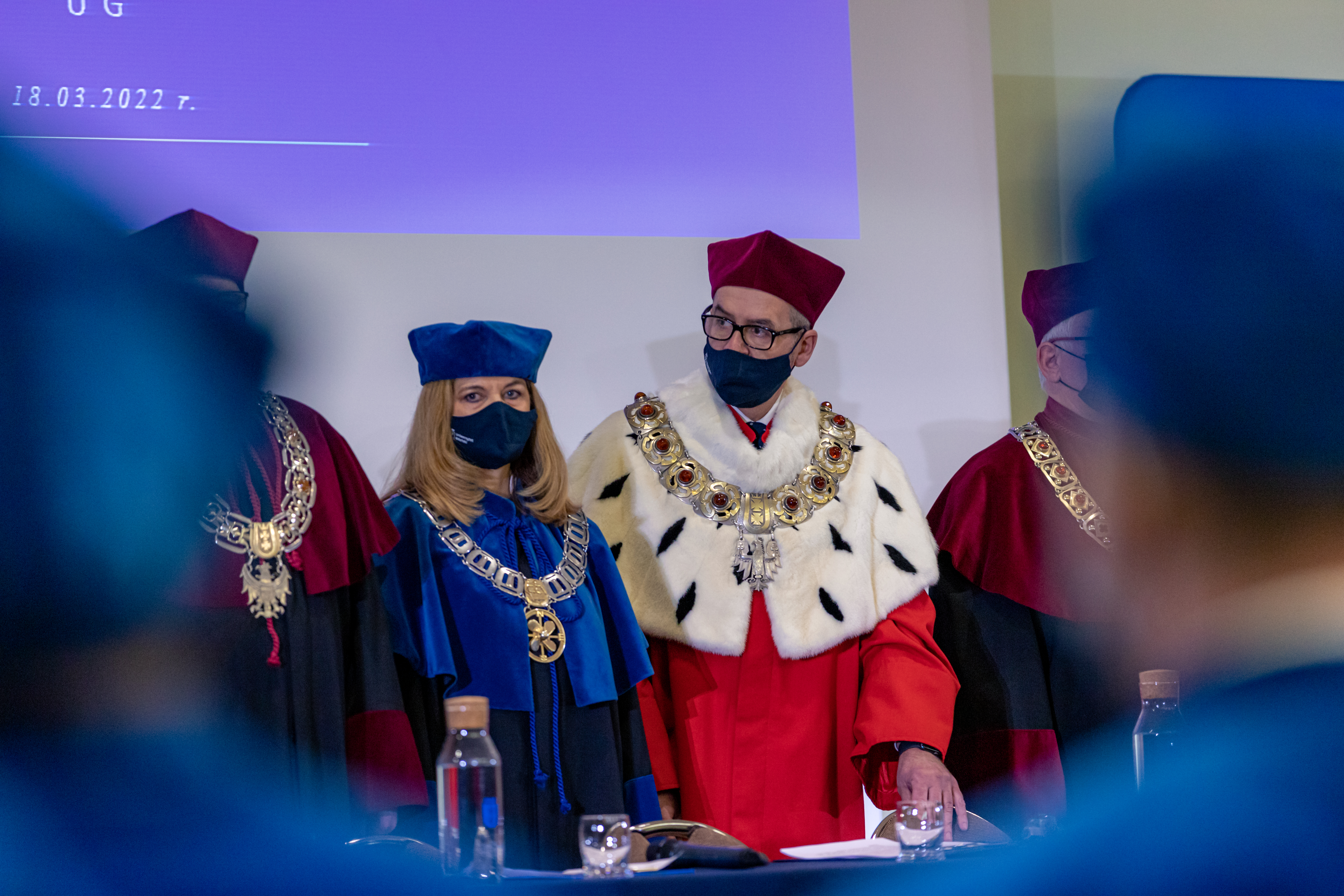 Święto Uniwersytetu Gdańskiego odbyło się 18 marca 2022 roku (piątek) w Auli im. T. Ocioszyńskiego Wydziału Ekonomicznego Uniwersytetu Gdańskiego w Sopocie.