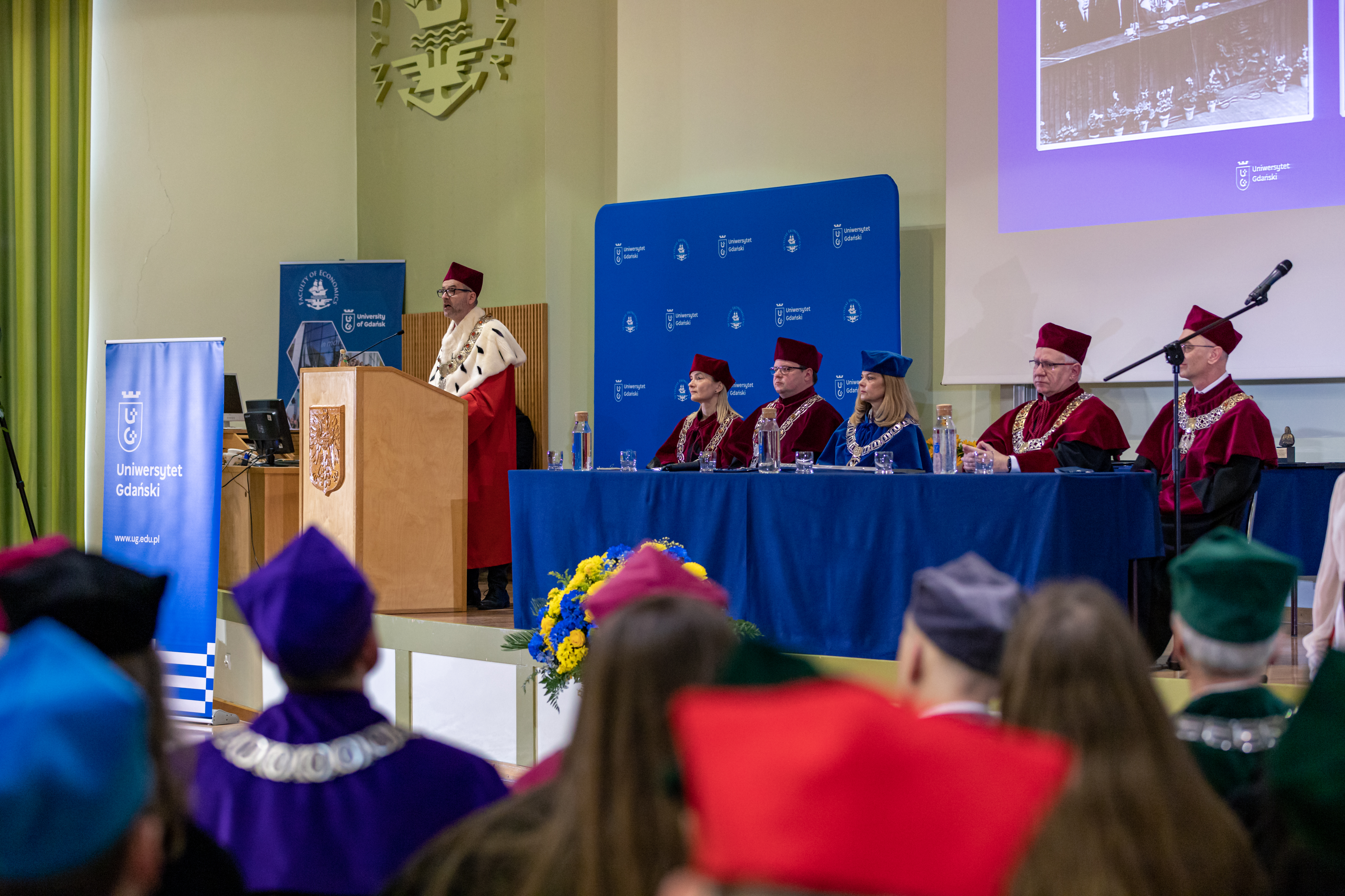 - Począwszy od tego roku postanowiliśmy organizować święto UG za każdym razem na innym Wydziale. W ten sposób chcemy umożliwić naszym gościom poznanie całej uczelni oraz dać okazję każdemu z Wydziałów do lepszego zaprezentowania się wszystkim zgromadzonym podczas uroczystości – powiedział prof. Piotr Stepnowski. - Dziś trudno jest nam jednak cieszyć się w pełni 52. rocznicą powołania Uniwersytetu Gdańskiego. Właśnie mijają 24 dni od ataku Rosji na Ukrainę. Dramatyczne wydarzenia, które rozgrywają się na terytorium naszego wschodniego sąsiada przerażają skalą ofiar i zniszczeń.