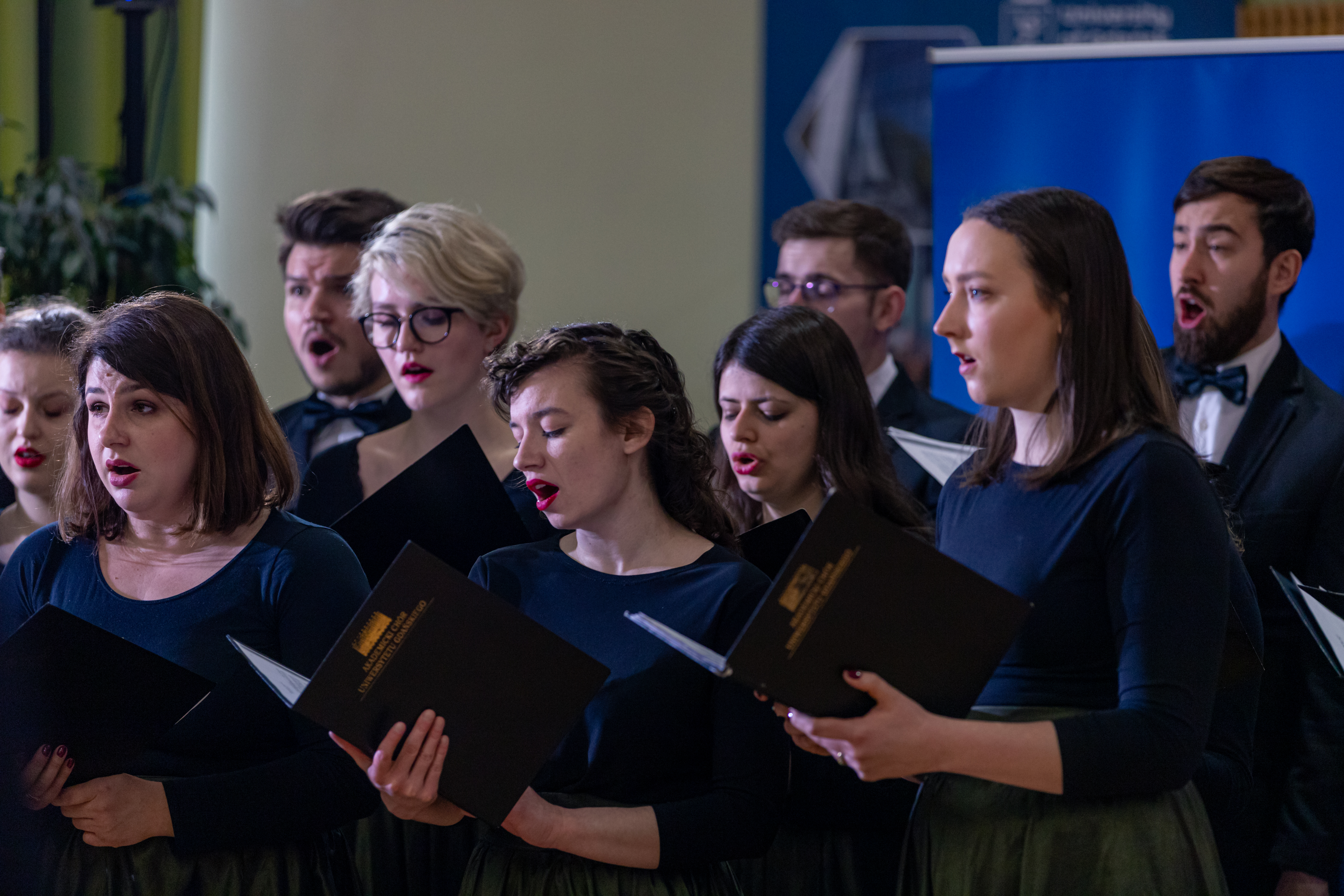Po przemówieniu prof. Leszka Balcerowicza ponownie usłyszeliśmy Akademicki Chór UG. Jako gest solidarności z Narodem Ukraińskim chór przygotował dwa utwory: Kompozycję E. Kozaka „Dymu moi” do fragmentów wiersza Tarasa Szewczenki z roku 1840, drugi – Psalm stojących w kolejce – z repertuaru Krystyny Prońko do słów E. Brylla (rok 1980 "Kolęda nocka"), którego drugą zwrotkę zaśpiewano po ukraińsku.