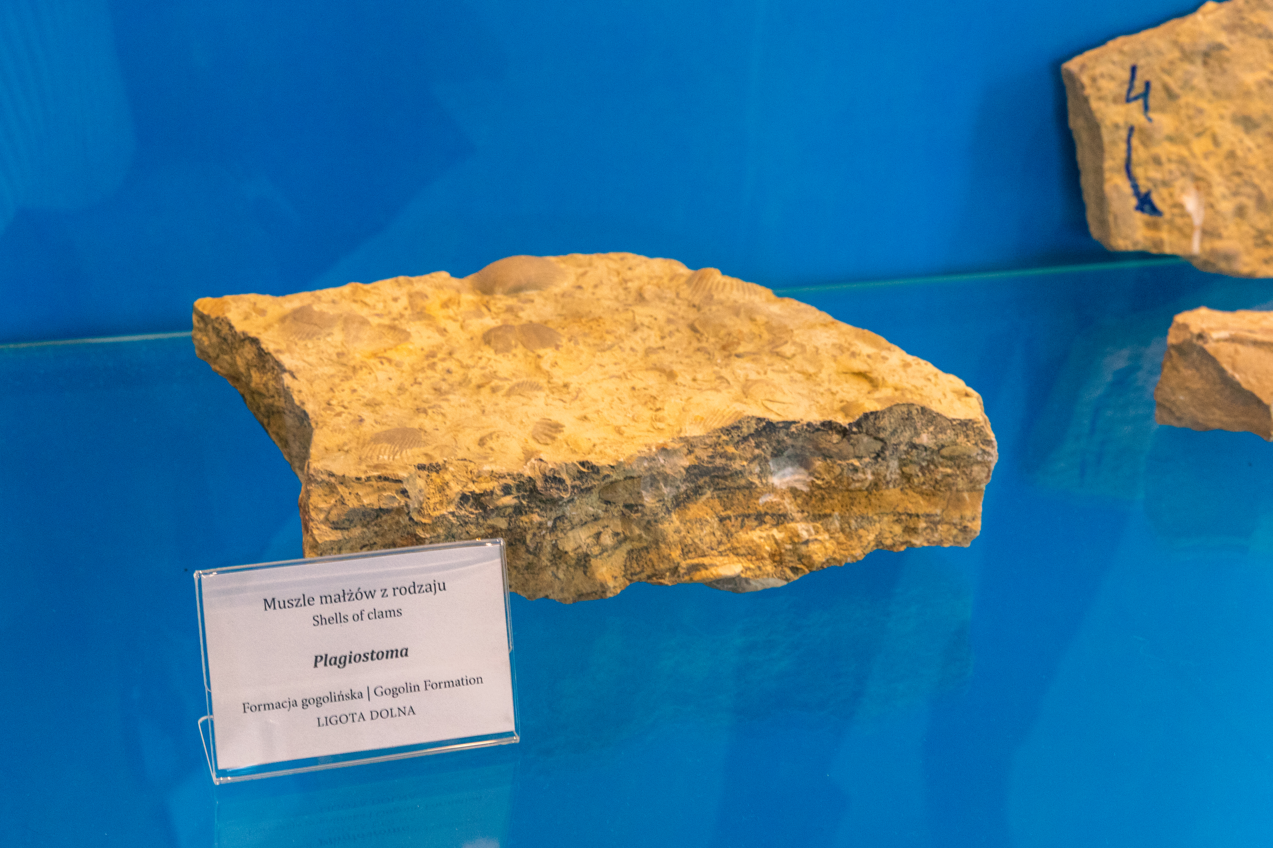 - kilkadziesiąt skamieniałości jeżowców, małży, ramienionogów i innych zwierząt dna morskiego.
