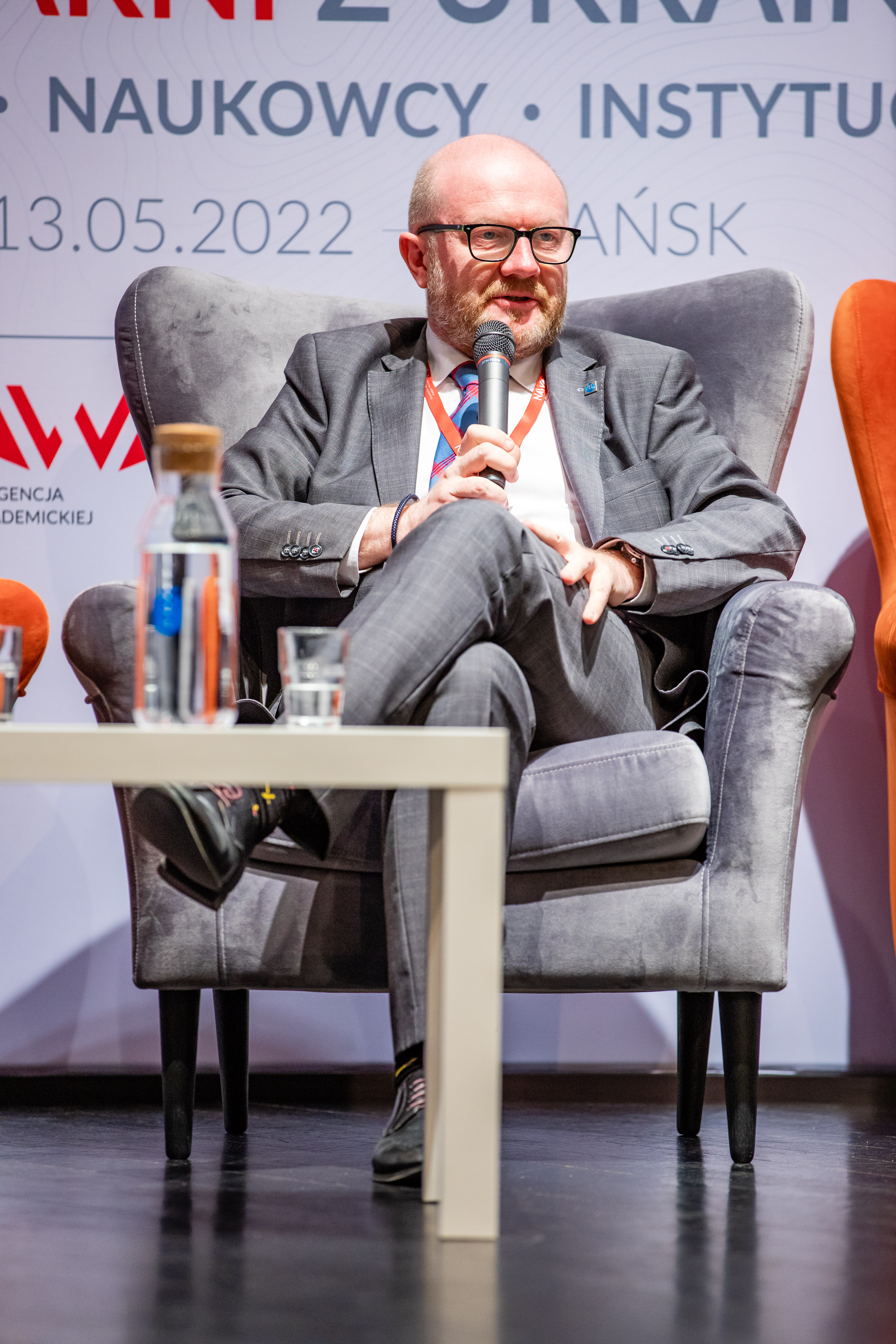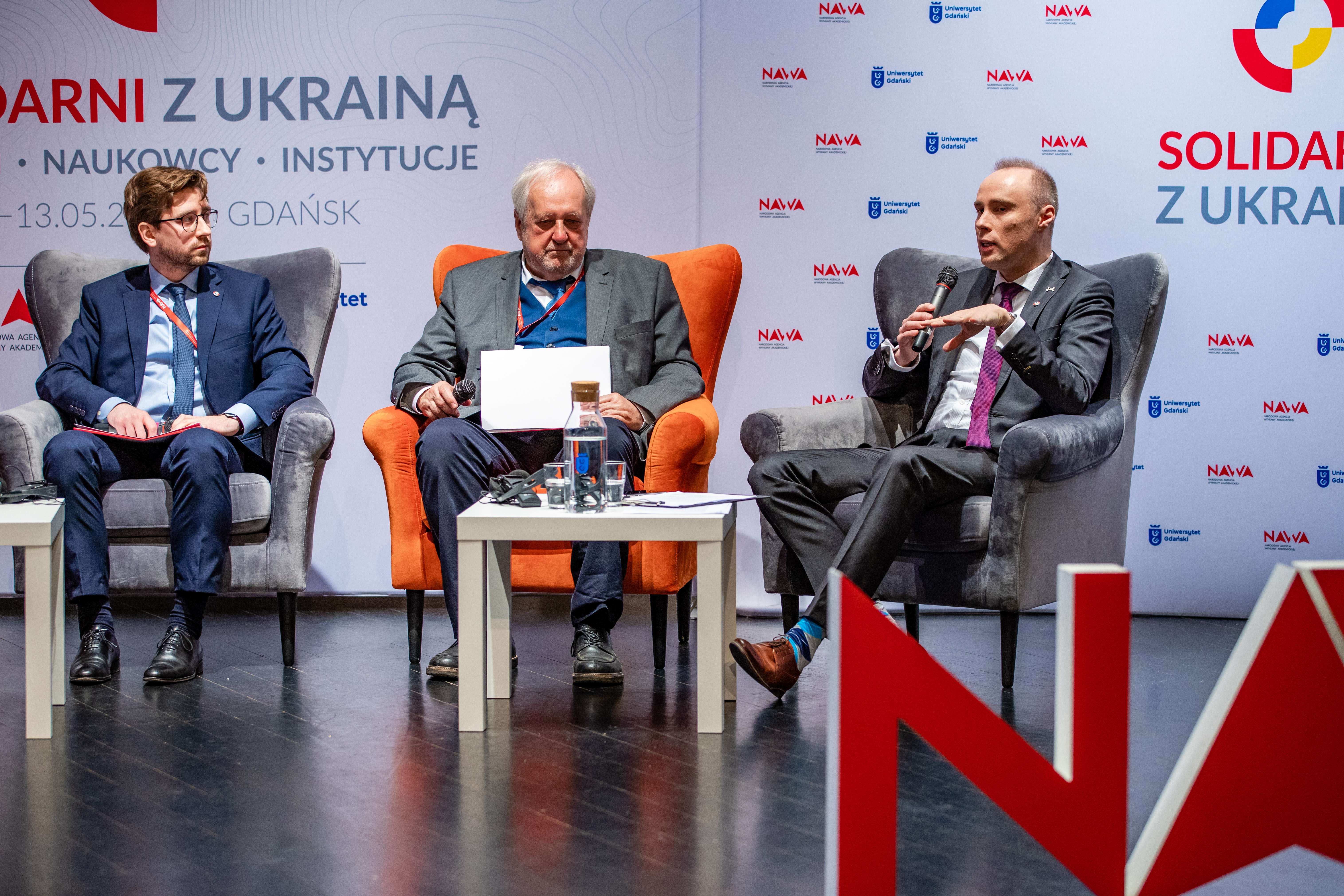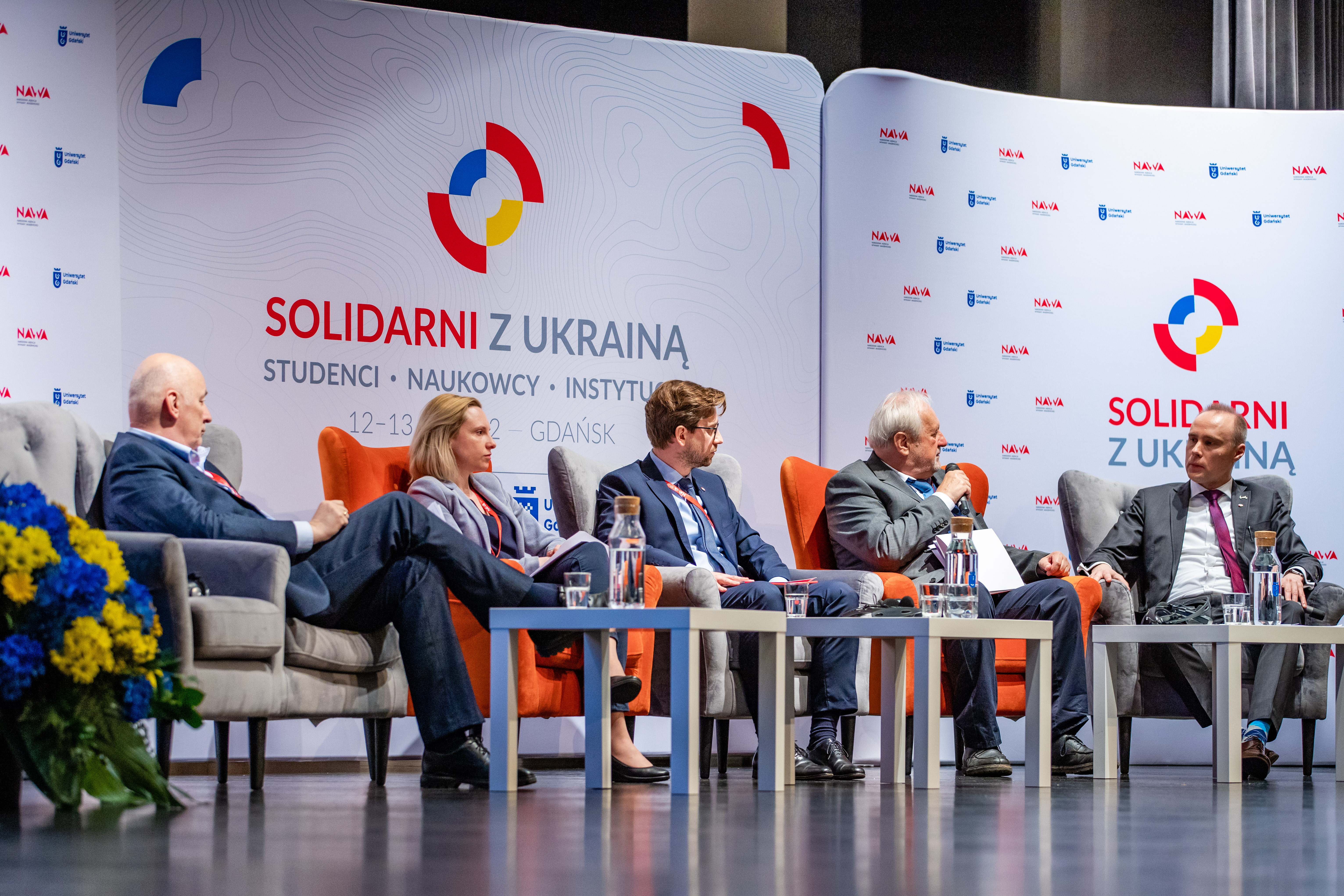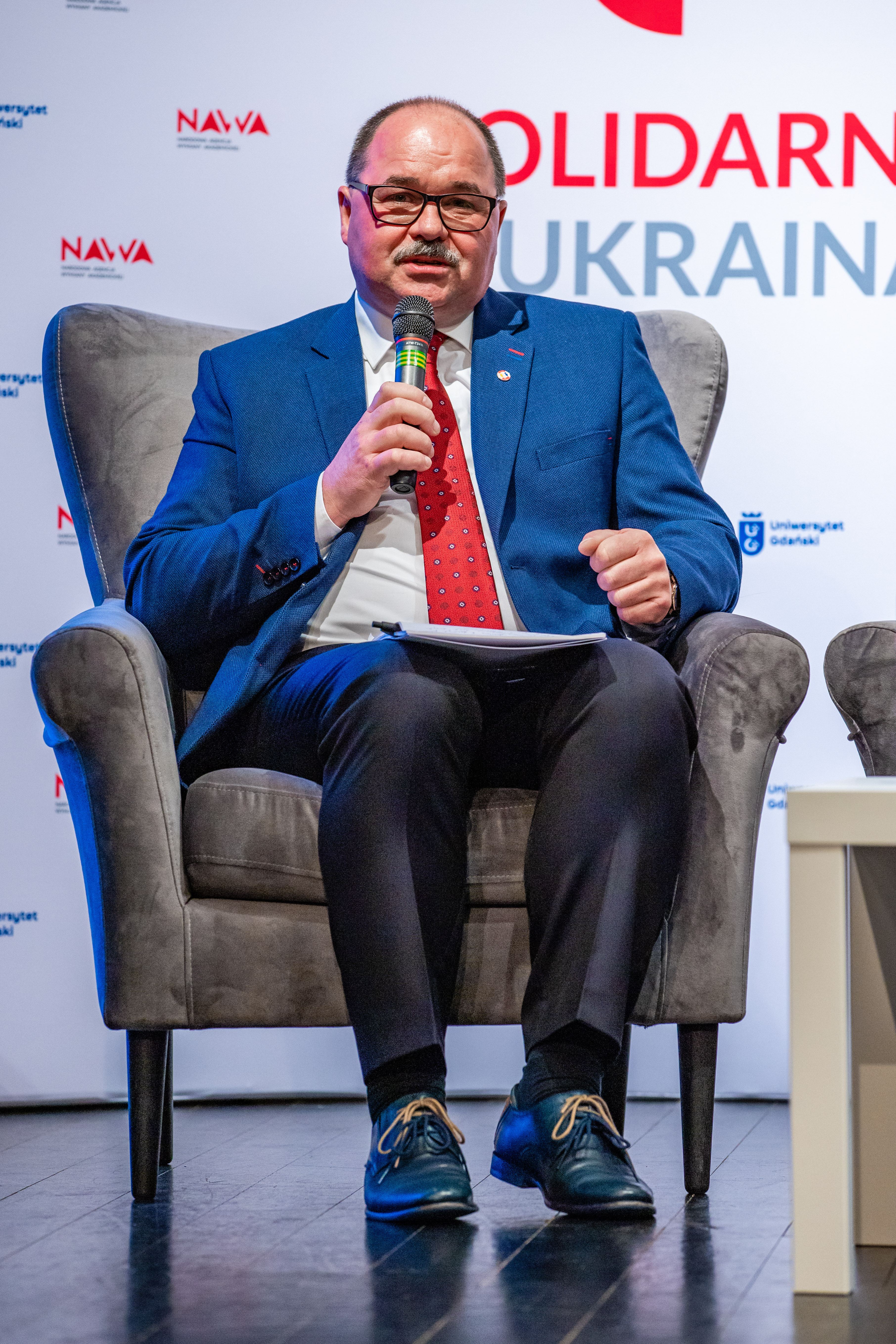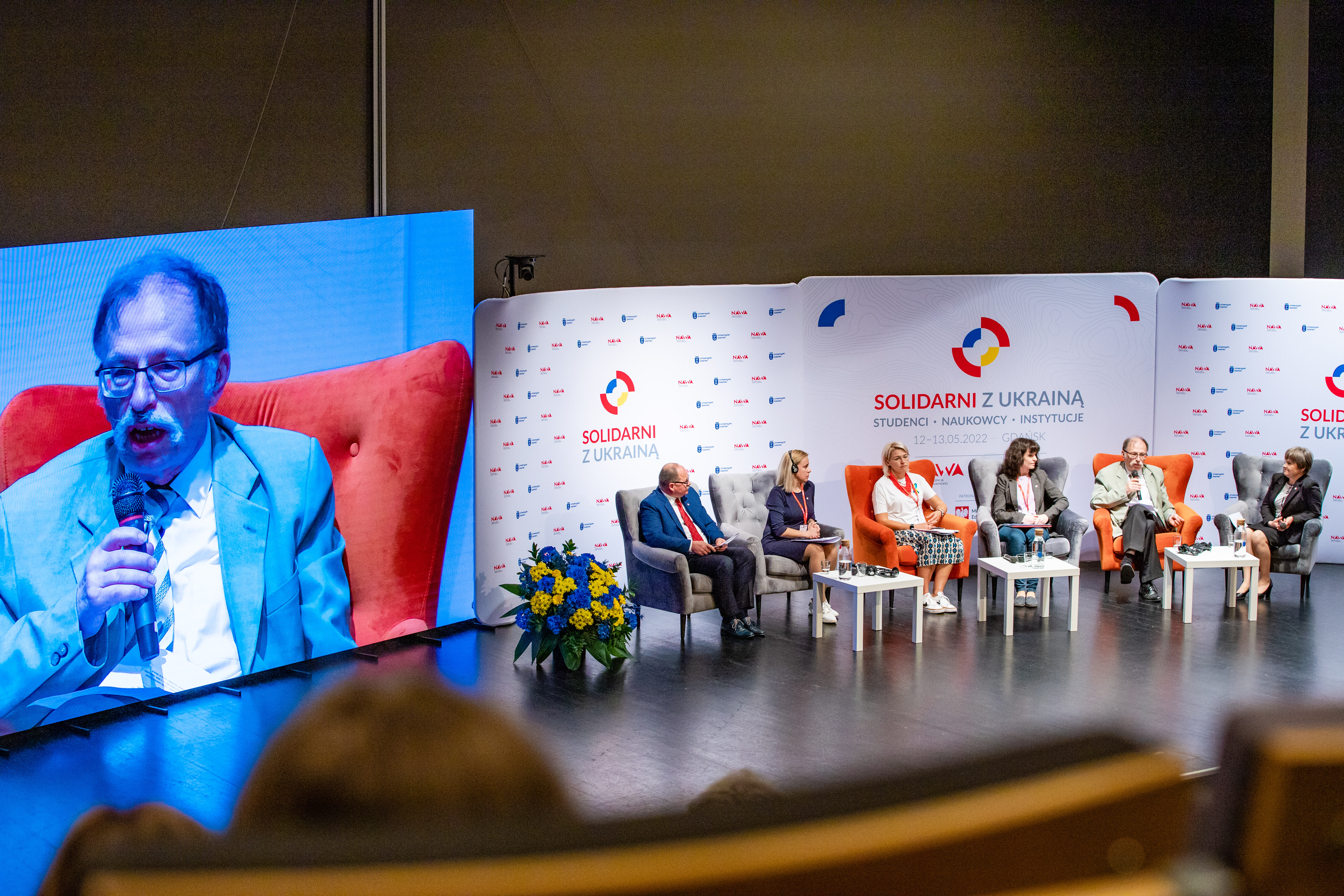 Prowadzącym ostatniego panelu był Rektor Uniwersytetu Gdańskiego, prof. dr hab. Piotr Stepnowski, który rozpoczął tą część kierując pytanie do przedstawicieli ukraińskiego społeczeństwa akademickiego o rodzaje pomocy, jakich potrzebują. - Naszym głównym celem jest zwiększenie, albo przynajmniej utrzymanie potencjału inteligencji Ukrainy. Dlatego chciałbym poprosić rektorów polskich uczelni o udostępnienie naszym studentom bazy wiedzy, jakim są biblioteki. Dla naszych naukowców proszę o tymczasowe zatrudnienie i umożliwienie im prowadzenia zajęć z naszymi studentami - odpowiedział prof. Andriej Vitrenka, Pierwszy Wiceminister Edukacji i Nauki Ukrainy.