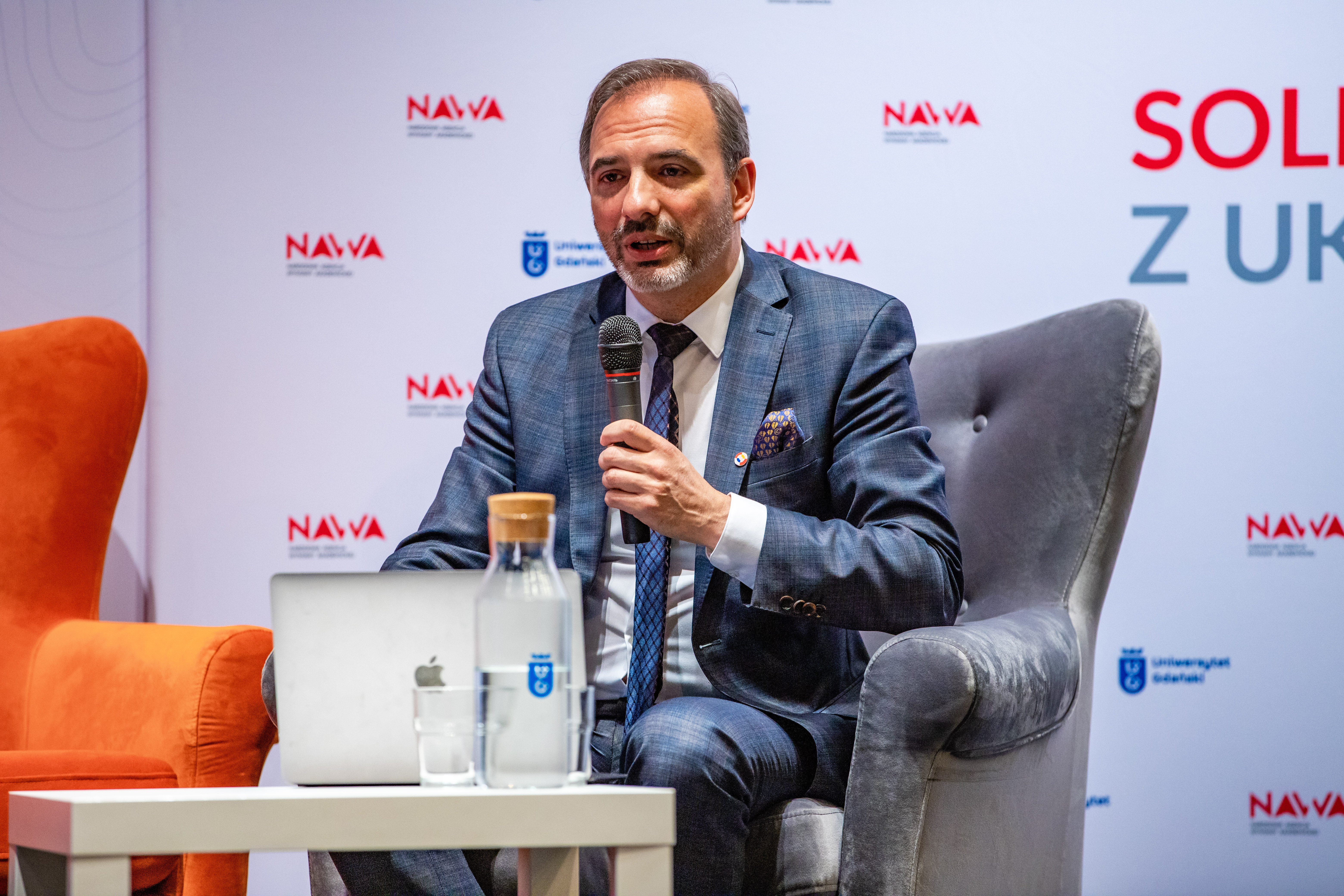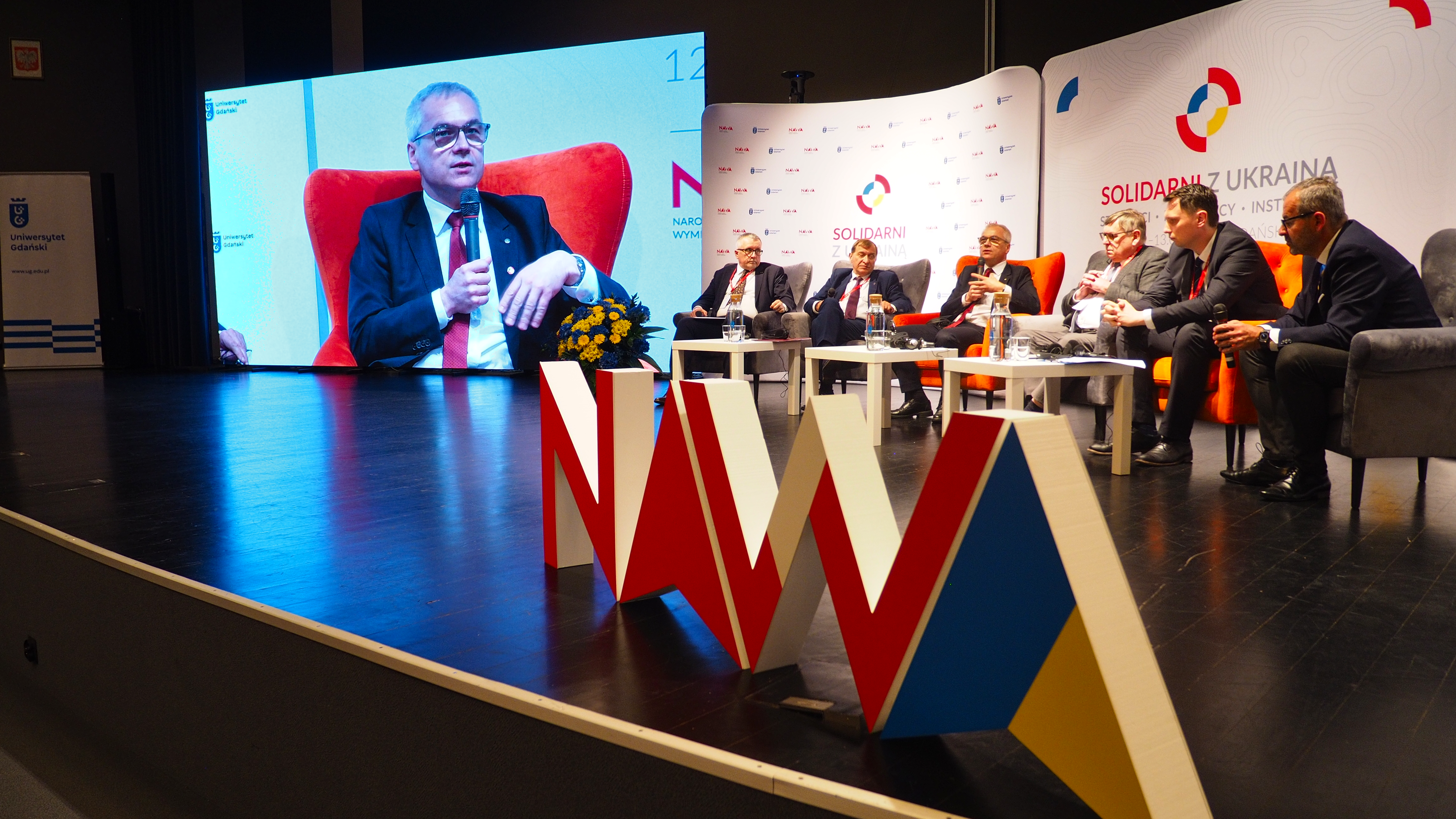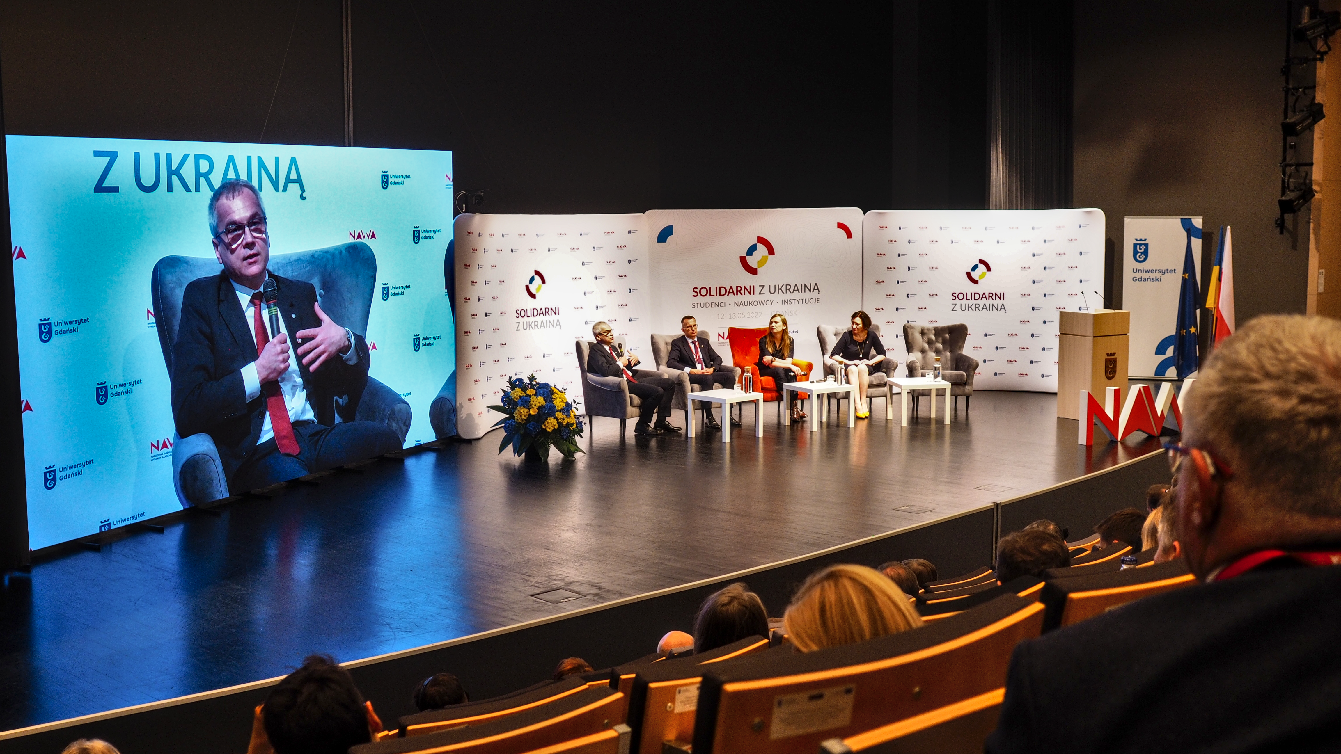 Swoje perspektywy na problem niszczonego społeczeństwa akademickiego Ukrainy, po Rektorze UG, przedstawili reprezentanci najważniejszych polskich instytucji związanych z edukacją wyższą. - Nie chcemy wykraczać poza sugestie i rozwiązania formalno-prawne zaproponowane ze strony ukraińskiej - deklarował minister Włodzimierz Bernacki. Dyrektor NAWA dr Grażyna Żebrowska opowiedziała o nowopowstałym programie “Solidarni z Ukrainą”. Ostatni głos wprowadzający należał do ministra Serhija Szkarłeta, który podsumował o dotychczasową współpracę między polskim a ukraińskim Ministerstwem Edukacji i Nauki.