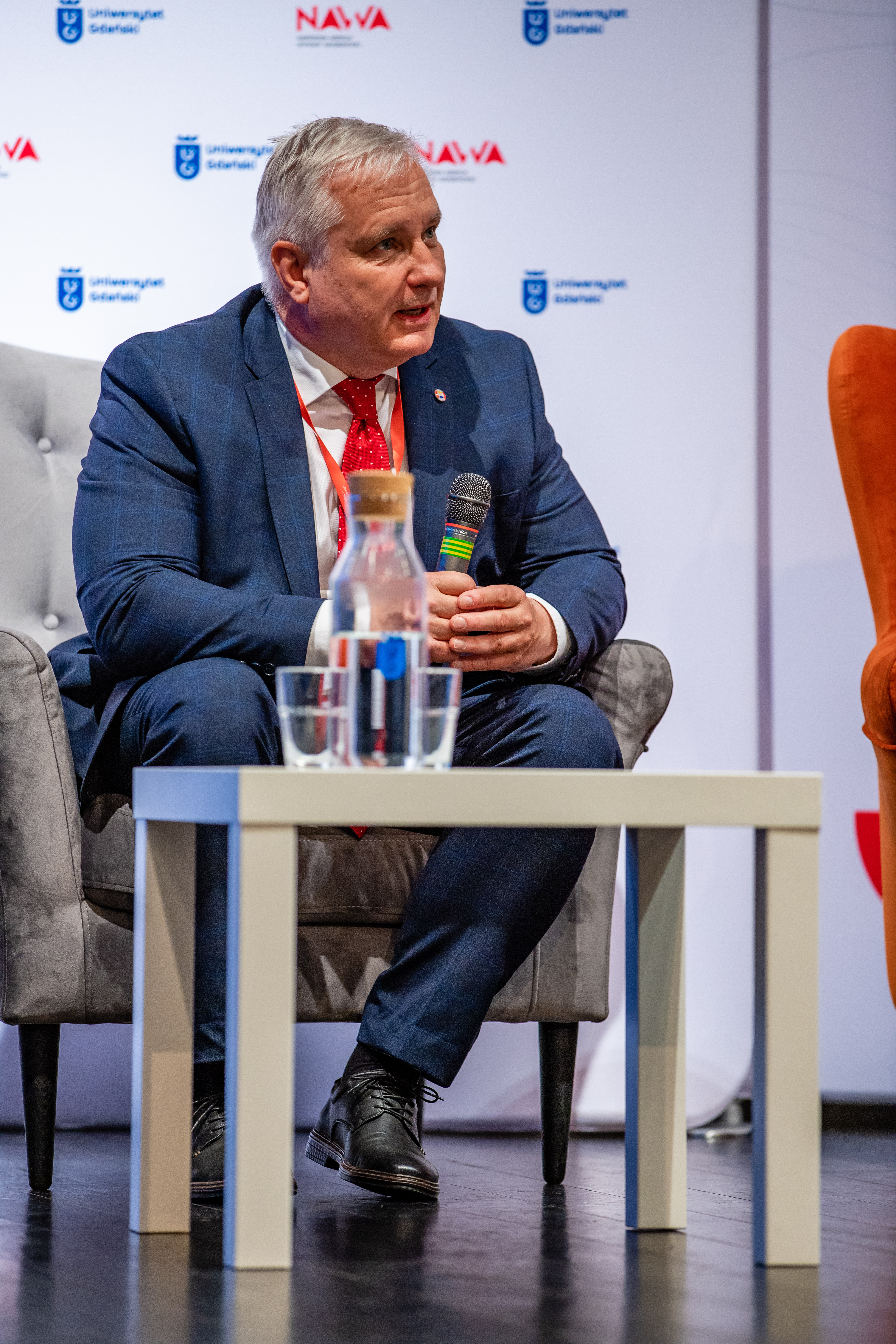 W ostatnim panelu brali też udział Rektor Akademii Górniczo-Hutniczej prof. dr hab. inż. Jerzy Lis, prof. Arkadiusz Mężyk oraz Wiceminister Edukacji i Nauki Ukrainy Vira Rogova. Dyskusja przedstawicieli polskich uczelni zakończyła pierwszy dzień konferencji.