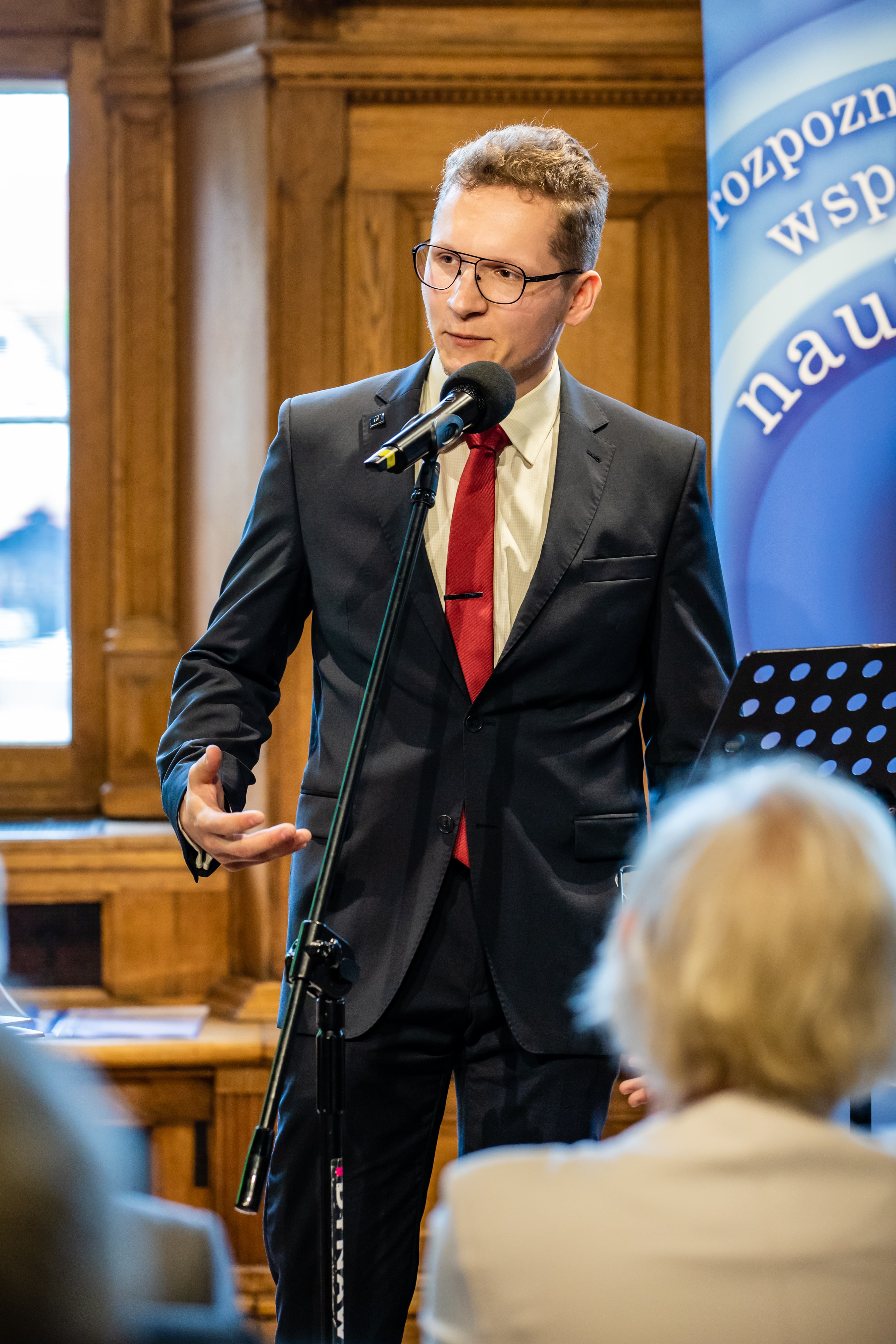 - Ta nagroda jest dla mnie czymś dużym. Publicznym dowodem na to, że szersze gremium zobaczyło, sprawdziło i uznało mnie godnym. Stanęli, wskazali palcem i powiedzieli: On ci jest – mówi dr Igor Rafał Obuchowski. - To jest duże wyróżnienie. Najbardziej cieszę się na samą okazję uroczystości wręczenia. Tak się składa, że mam kilka sukcesów naukowych na swoim koncie łącznie z wytworzeniem doktoratu ale nie było mi dane celebrować ich publicznie z powodu pandemii mimo że się hmm... kwalifikowały. I to jest ten pierwszy raz po długim czasie gdy faktyczne dostanę swój kawałek tortu, długo wyczekany i chyba nawet zasłużony. Nie jest łatwo oceniać swoje własne osiągnięcia, albo się przesadza albo się umniejsza. Dlatego jestem wdzięczny tym wszystkim którzy mi pomogli osiągnąć takie efekty - zwłaszcza szefowi - oraz tym wszystkim, którzy pochylili się nad kandydatami i postanowili nagrodzić właśnie mnie. To pozwala mi wierzyć że podjąłem dobre decyzje życiowe i naukowe ponieważ mnie tu doprowadziły.