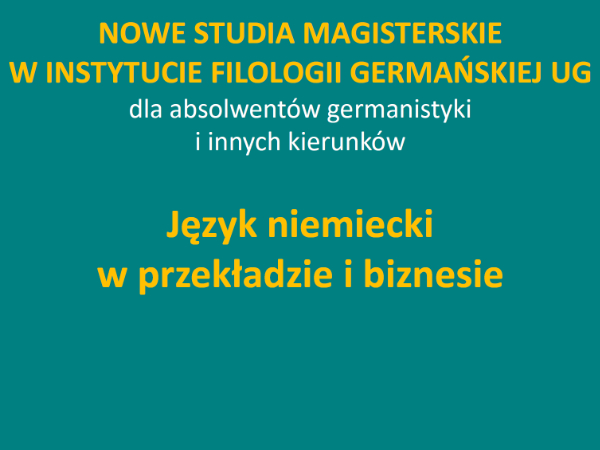 Jeśli kończysz germanistyczne studia licencjackie i chcesz poszerzyć swoją wiedzę odpowiednio o aspekt tłumaczeniowy lub biznesowy, a także doszlifować swój niemiecki, jeśli kończysz inny kierunek studiów, ale dobrze znasz niemiecki i chcesz zdobyć dyplom filologa świadczący na rynku pracy o twoich wysokich kompetencjach językowych – nowe studia Instytutu Filologii Germańskiej powinny Cię zainteresować.