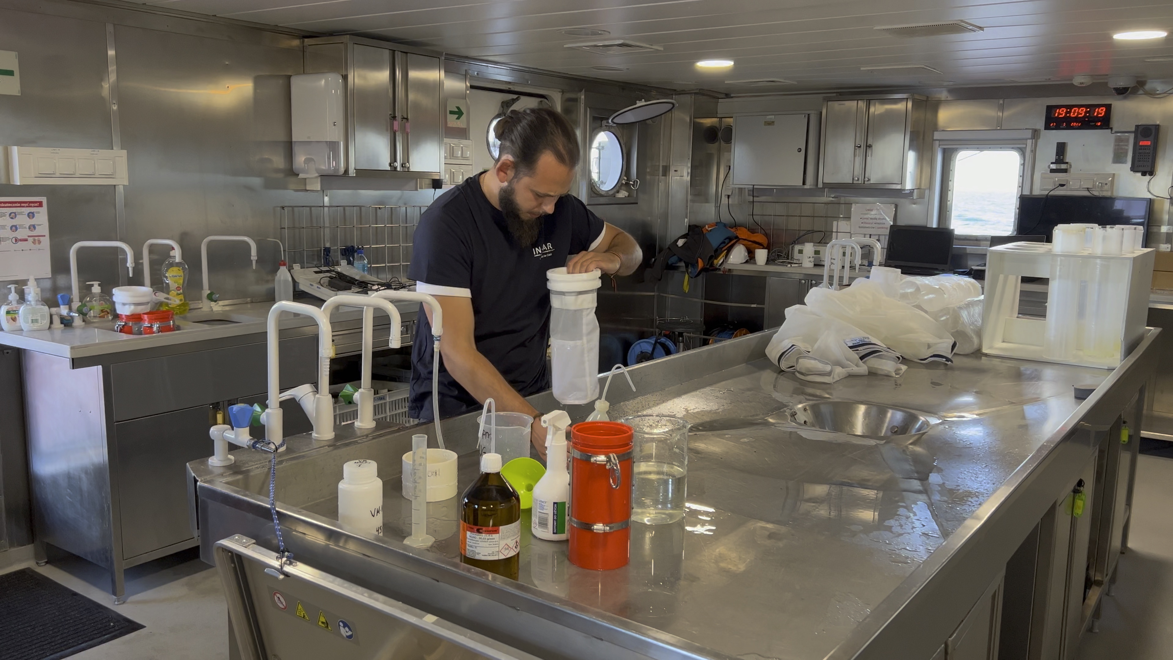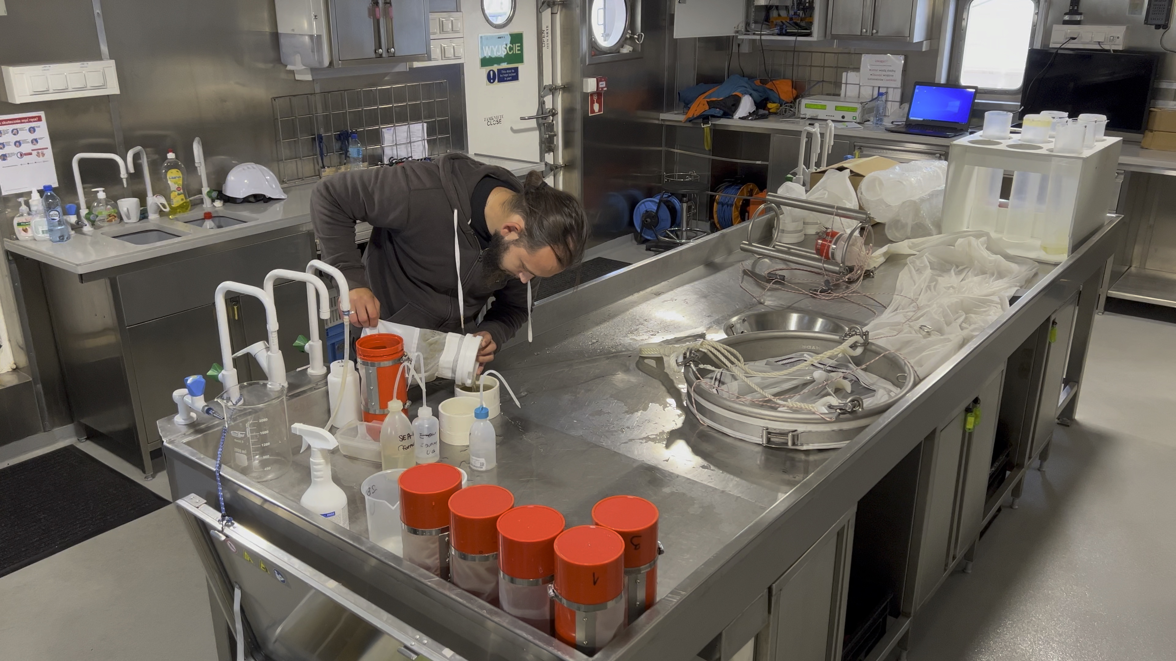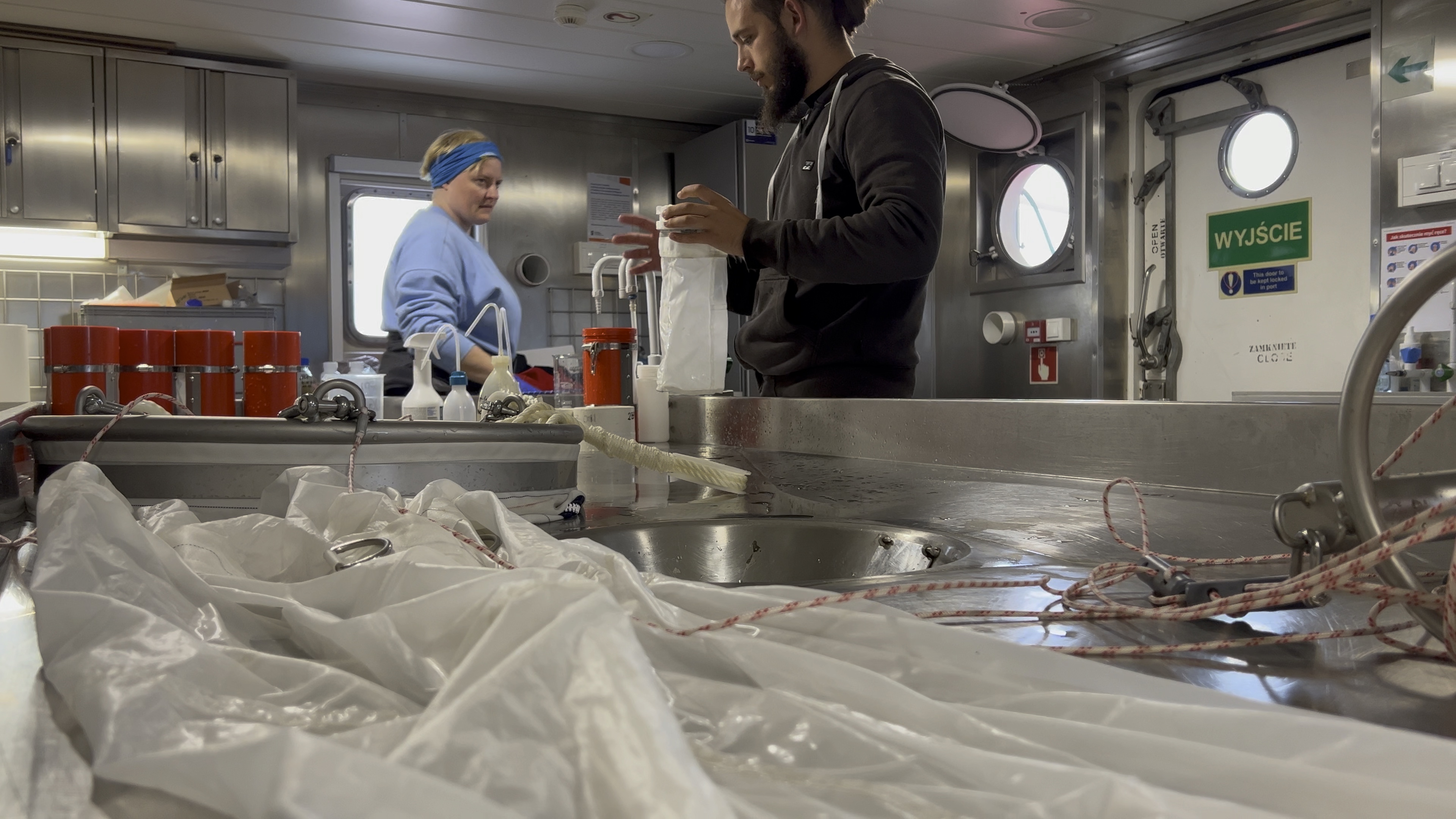 Zebrane próbki wody posłużą nam do oszacowania emisji gazów cieplarnianych ze środowiska morskiego do atmosfery. Za pomocą różnego rodzaju sieci uzyskaliśmy materiał badawczy do oceny zanieczyszczenia wód morskich mikroplastikami. Natomiast pobrane próbki aerozoli posłużą do dalszych badań pod kątem zanieczyszczenia atmosfery. Część analiz wykonywaliśmy na bieżąco w specjalistycznych laboratoriach na statku, pozostałe zostaną wykonane po powrocie na ląd.