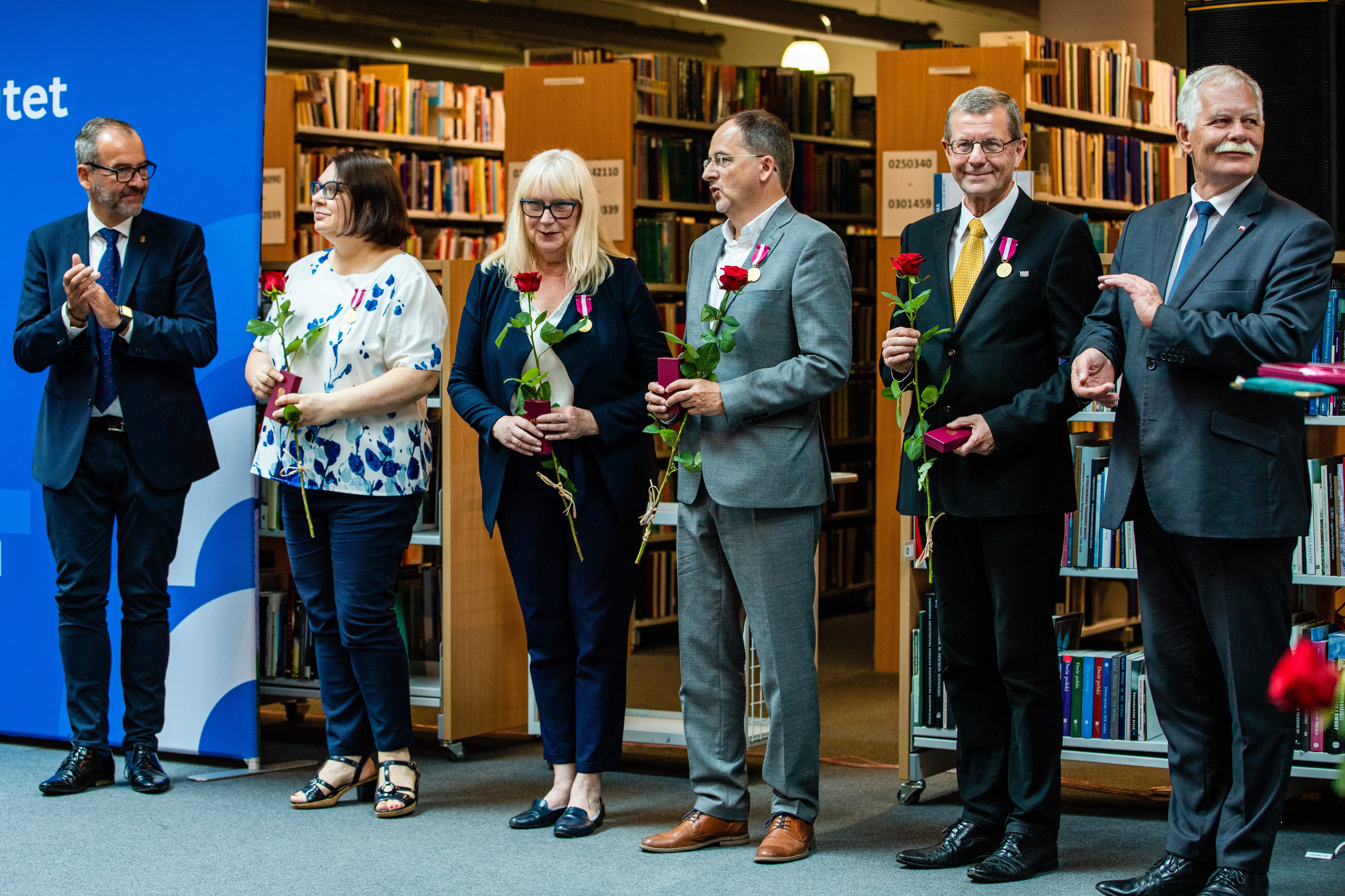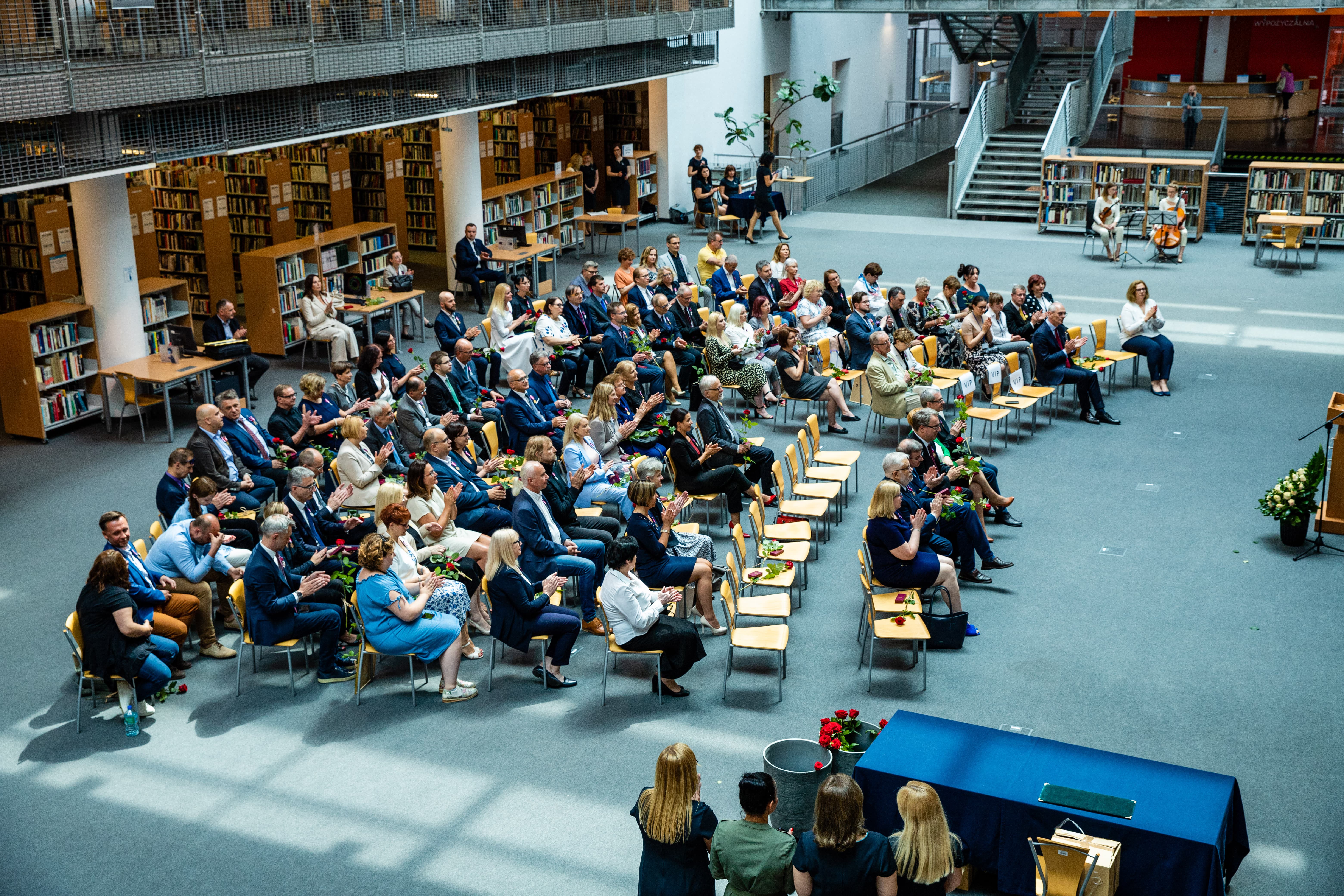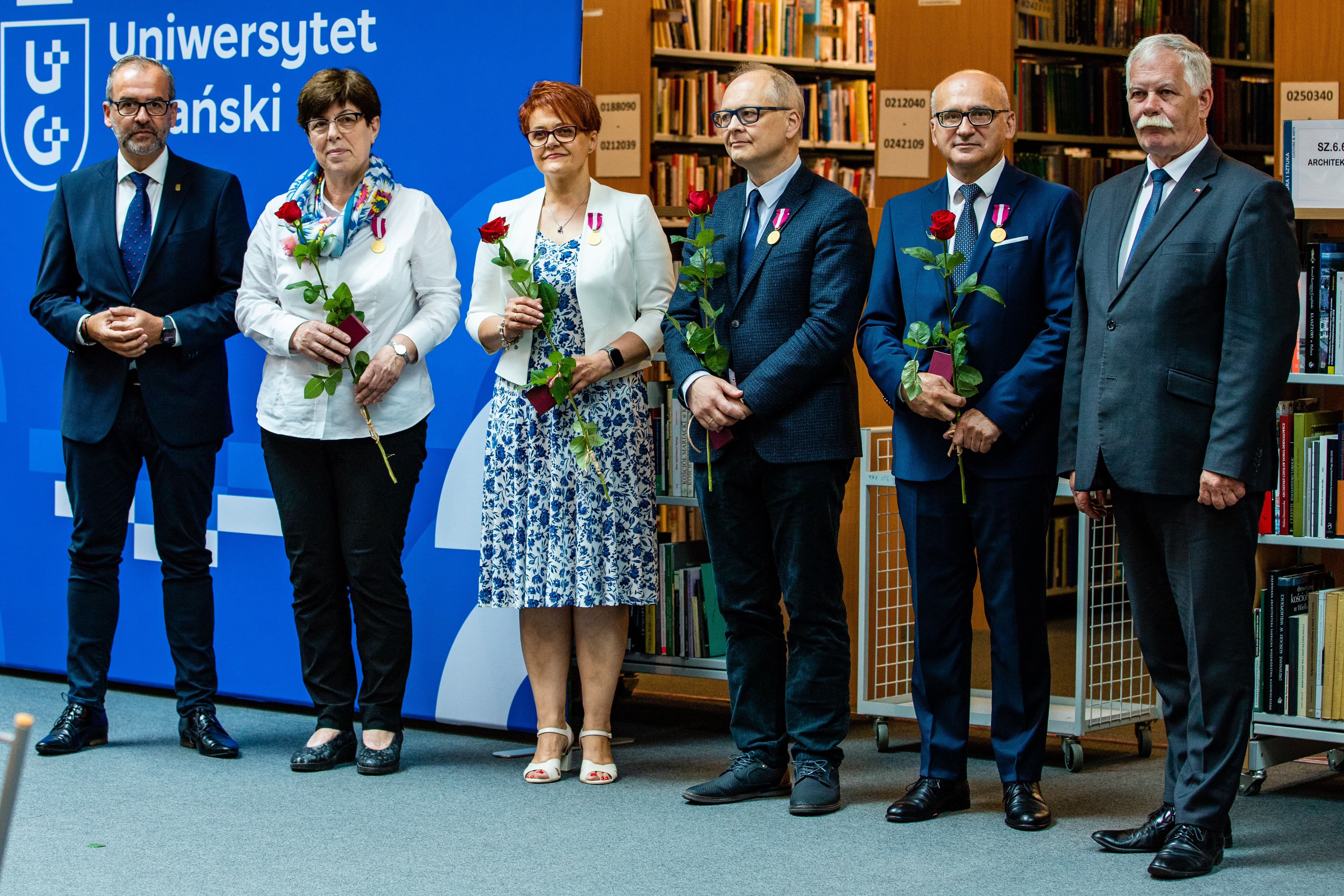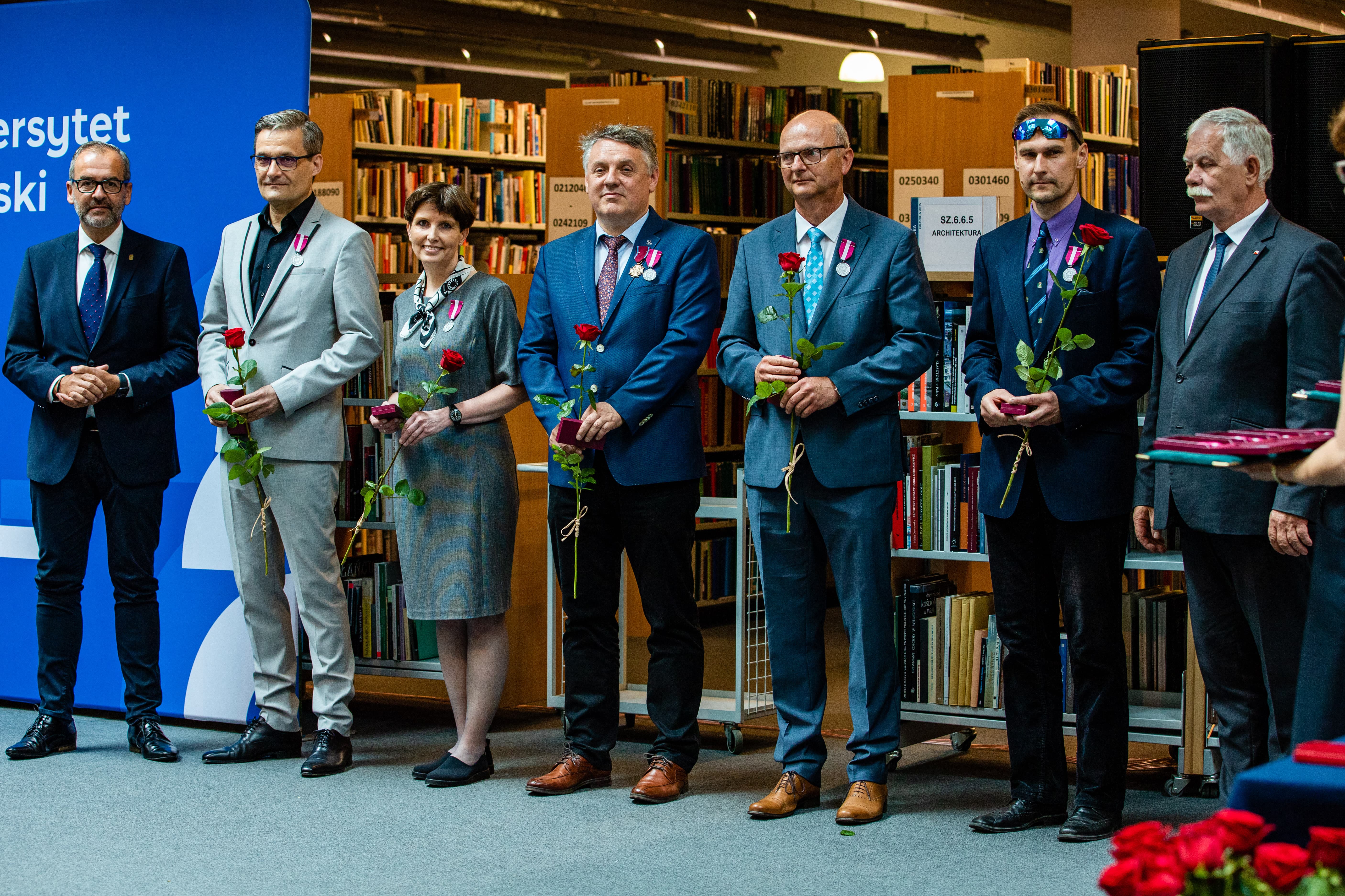 Wicewojewoda, który zgodnie z ceremoniałem przypinał odznaczenia– gratulował pracownikom i władzom Uczelni jej rozwoju.