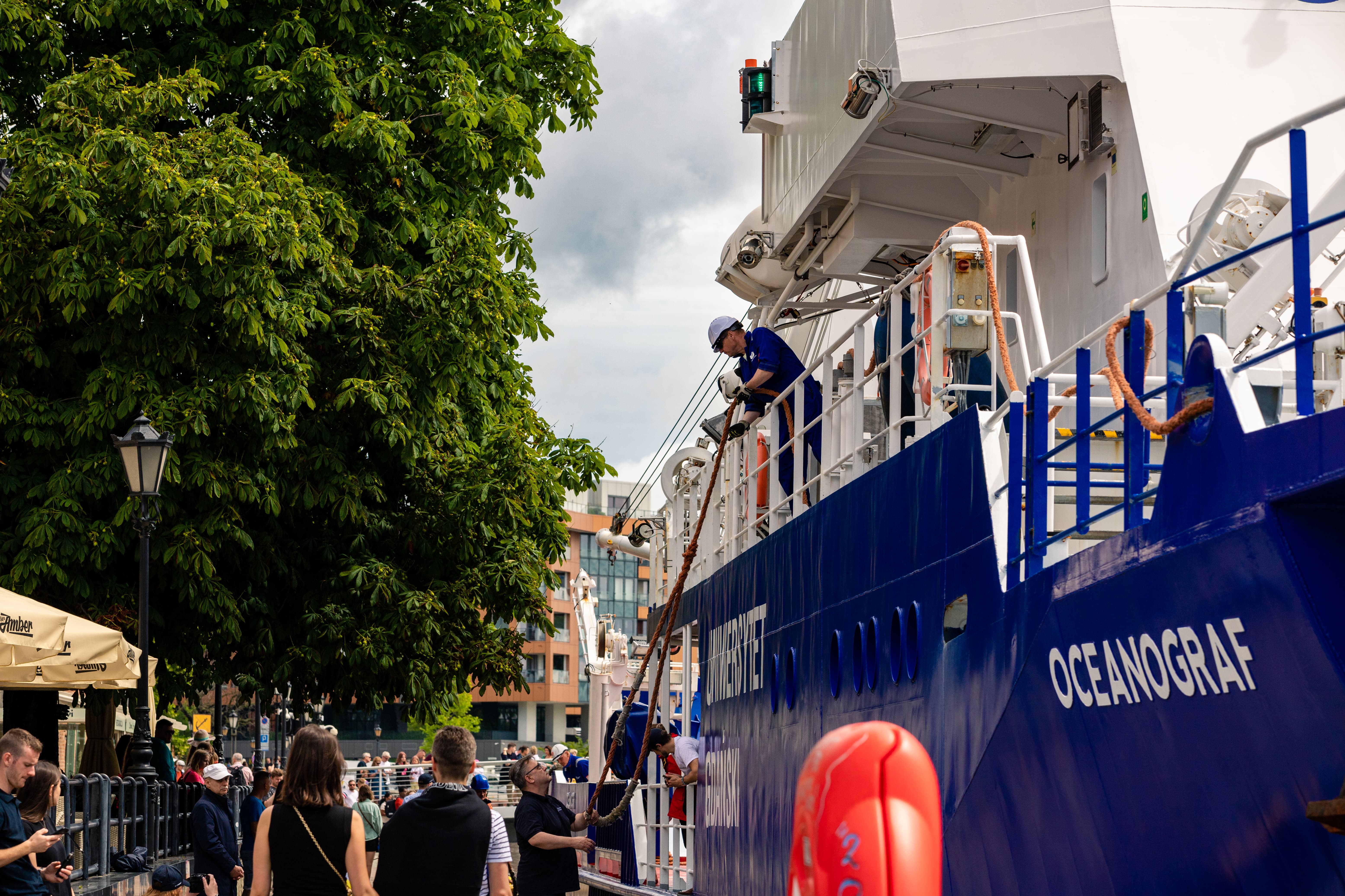 Pełnym sukcesem zakończył się rejs badawczy SEA-EU! Drugiego lipca o 11.30 statek Uniwersytetu Gdańskiego r/v Oceanograf przybił do nabrzeża przy Targu Rybnym w Gdańsku. Na miejscu powitały go władze uczelni, społeczność akademicka, wiceprezydent Gdańska Monika Chabior oraz orkiestra dęta. Statek i uroczystość przyciągnęły także uwagę licznych spacerowiczów.