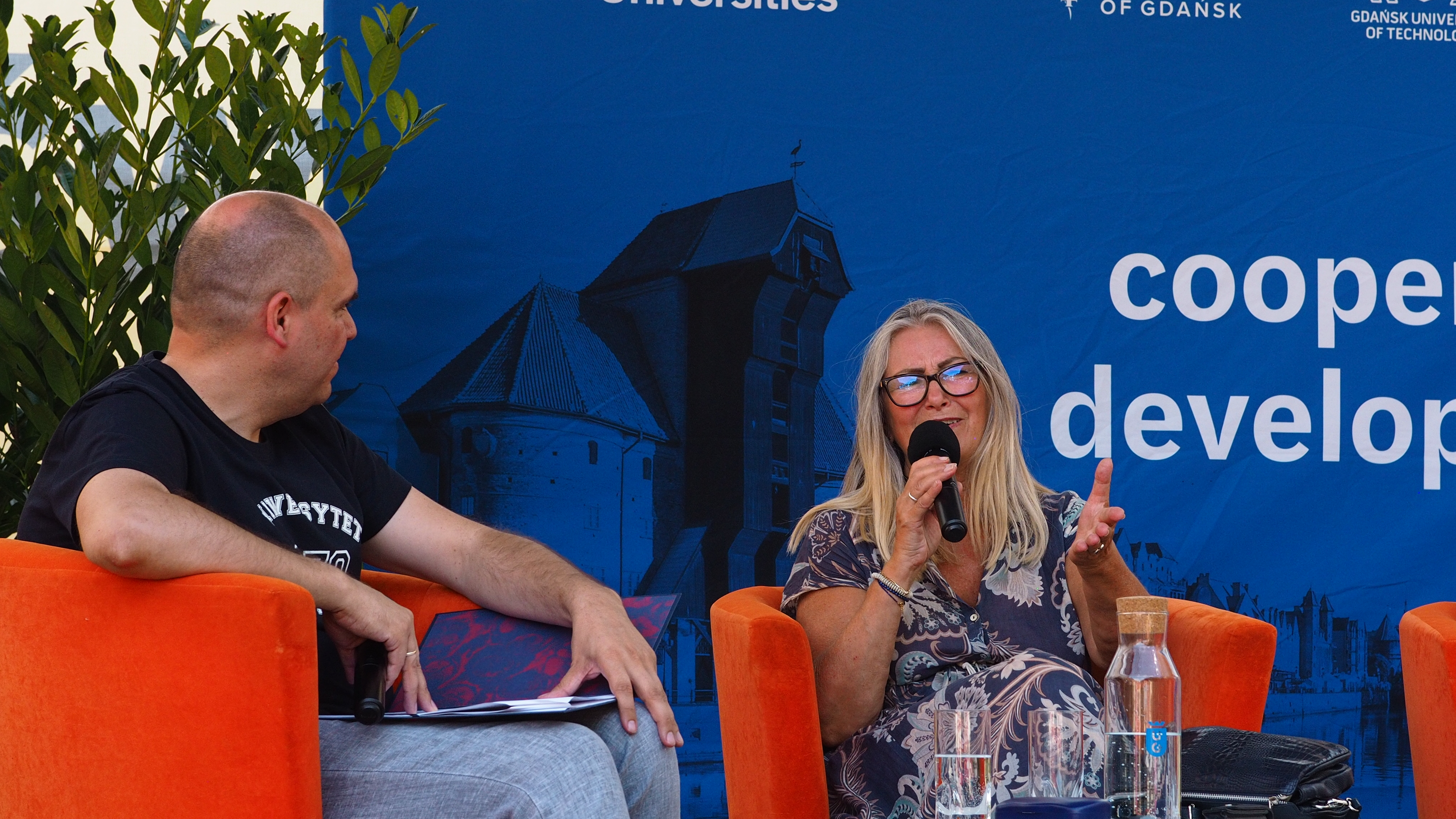 Po krótkim wstępie rozpoczął się panel dyskusyjny. Wzięły w nim udział prof. dr hab. inż. Adriana Zaleska-Medynska, chemiczka, dyrektor Związku Uczelni im. Daniela Fahrenheita, prof. dr hab. Maria Mendel, pedagożka, Prorektor ds. Kształcenia w UG w latach 2008-2012 oraz dr Aleksandra Brodecka-Goluch, oceanografka, która pełniła rolę kierownika rejsu badawczego SEA-EU od Gdyni do Kadyksu.