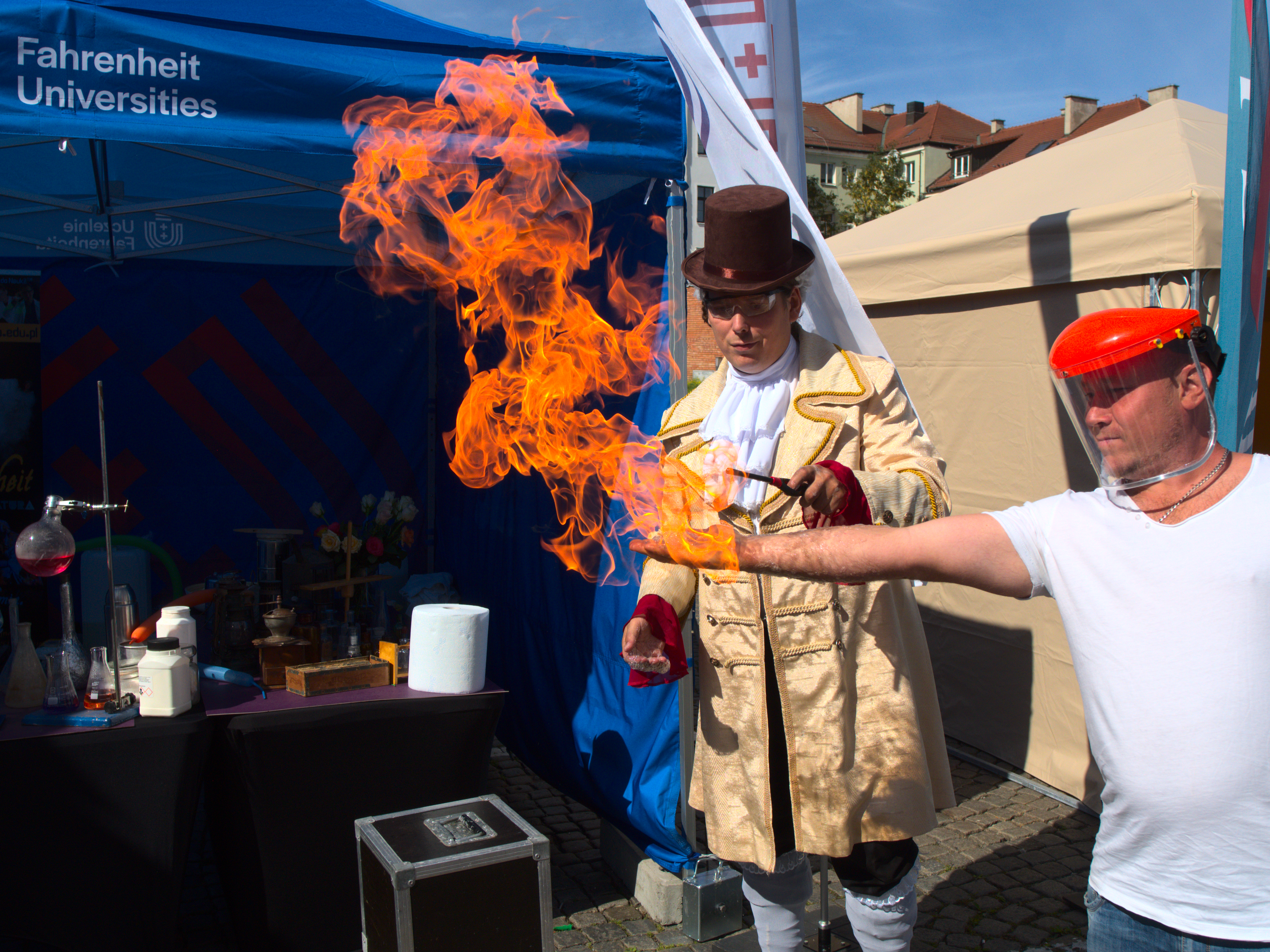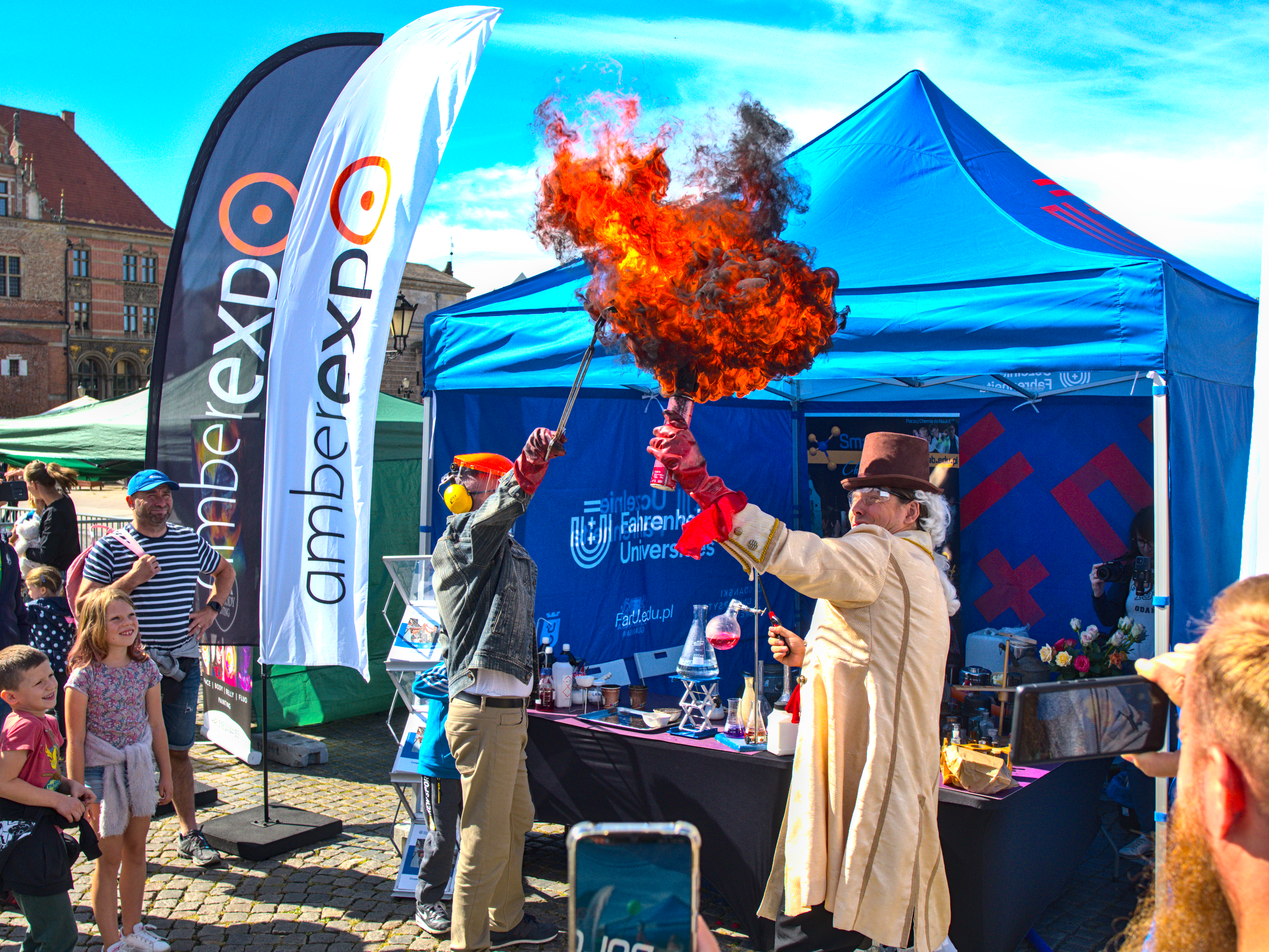 Setki osób odwiedziły czwartego września Rodzinny Piknik Erasmus+. Stoiska na Targu Węglowym kusiły zapachem - pełne przysmaków stanowisko Bartosza Wicherka, brązowego medalisty w kategorii gotowanie EuroSkills Graz 2021, dźwiękiem - scena koncertowa, na której wystąpiło m.in. Studio Wokalne UG, jak i obrazem - namiot Uczelni im. Daniela Fahrenheita, gdzie uczestnicy pikniku mogli zobaczyć gorące wybuchy oraz eksperymenty z mroźnym azotem.