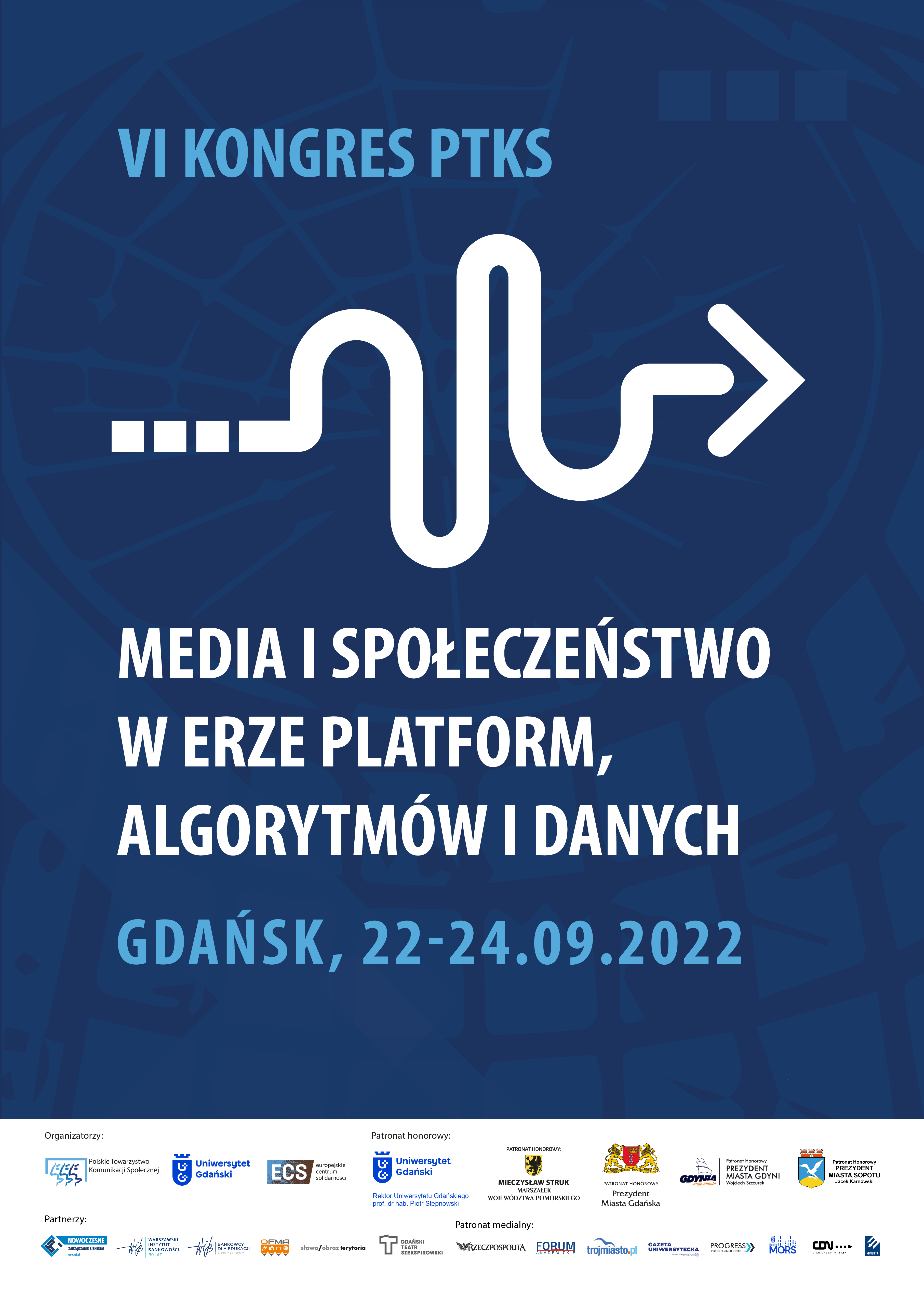 VI Kongres Polskiego Towarzystwa Komunikacji Społecznej (PTKS) to 54 panele tematyczne, niemal 300 gości z całej Polski, wybitni keynote speakerzy i wydarzenia towarzyszące. Najważniejsze, odbywające się raz na trzy lata spotkanie dla środowiska komunikologów i medioznawców po raz pierwszy odbywa się w Gdańsku. Hasło tegorocznego Kongresu to „Media i społeczeństwo w erze platform, algorytmów i danych”. Współorganizatorem jest Instytut Mediów, Dziennikarstwa i Komunikacji Społecznej Uniwersytetu Gdańskiego.