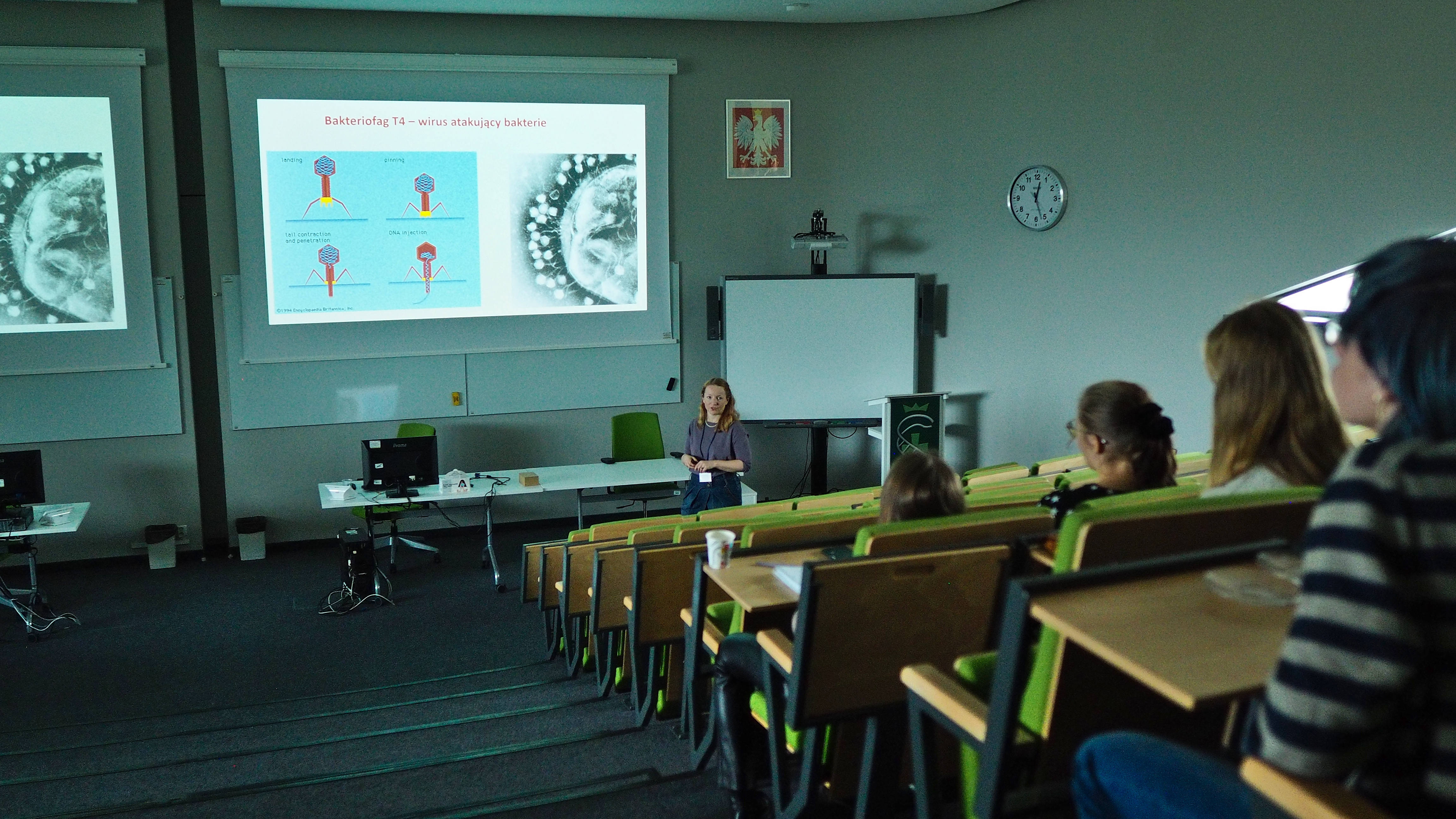 Każdego dnia odbywały się też zajęcia teoretyczne. O wirusach uczestnikom inicjatywy opowiedziała dr Alicja Chmielewska z MWB UG i GUMed. Biotechnolożka wytłumaczyła słuchaczom m.in., jak funkcjonują te drobnoustroje oraz w jaki sposób można je „zobaczyć” w laboratorium. Tematem wystąpienia były także sposoby uodporniania ciała na infekcje wirusowe, czyli szczepionki.