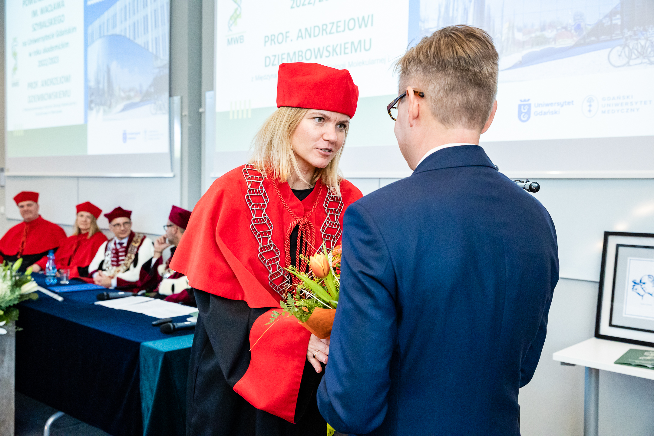 - Prof. Andrzej Dziembowski jest biologiem molekularnym, biochemikiem i genetykiem. Uzyskał tytuł magistra i doktora na Wydziale Biologii Uniwersytetu Warszawskiego. Przez kilka lat pracował w Centrum Genetyki Molekularnej we Francji, następnie prowadził samodzielne laboratorium w Instytucie Biochemii i Biofizyki PAN w Warszawie. Jest też autorem artykułów naukowych w najbardziej prestiżowych czasopismach takich jak Nature”, Cell”, „Nature Structural”. Uzyskał szereg nagród w tym Nagrodę Fundacji na rzecz Nauki Polskiej, czyli tzw. polskiego nobla”. W ostatnich latach ważny wątek w jego badaniach stanowią szczepionki mRNA - przedstawiła nowego kierownika katedry Dziekan MWB UG i GUMed dr hab. Ewelina Król, prof. UG