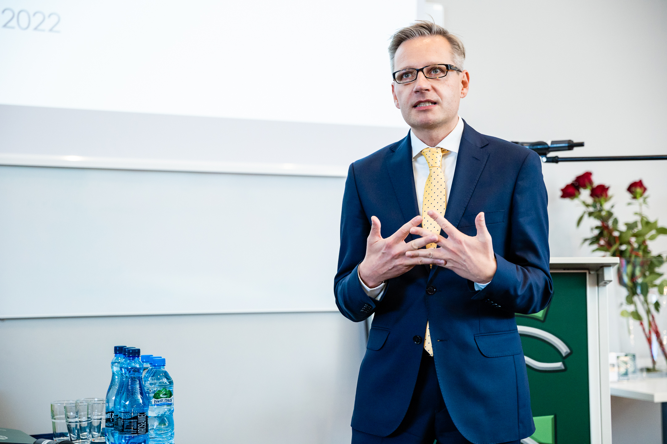 Prof. Andrzej Dziembowski podczas wykładu inaugurującego rok akademicki 2022/2023 na MWB UG i GUMed pt.  „mRNA – rewolucyjna technologia leków biologicznych”