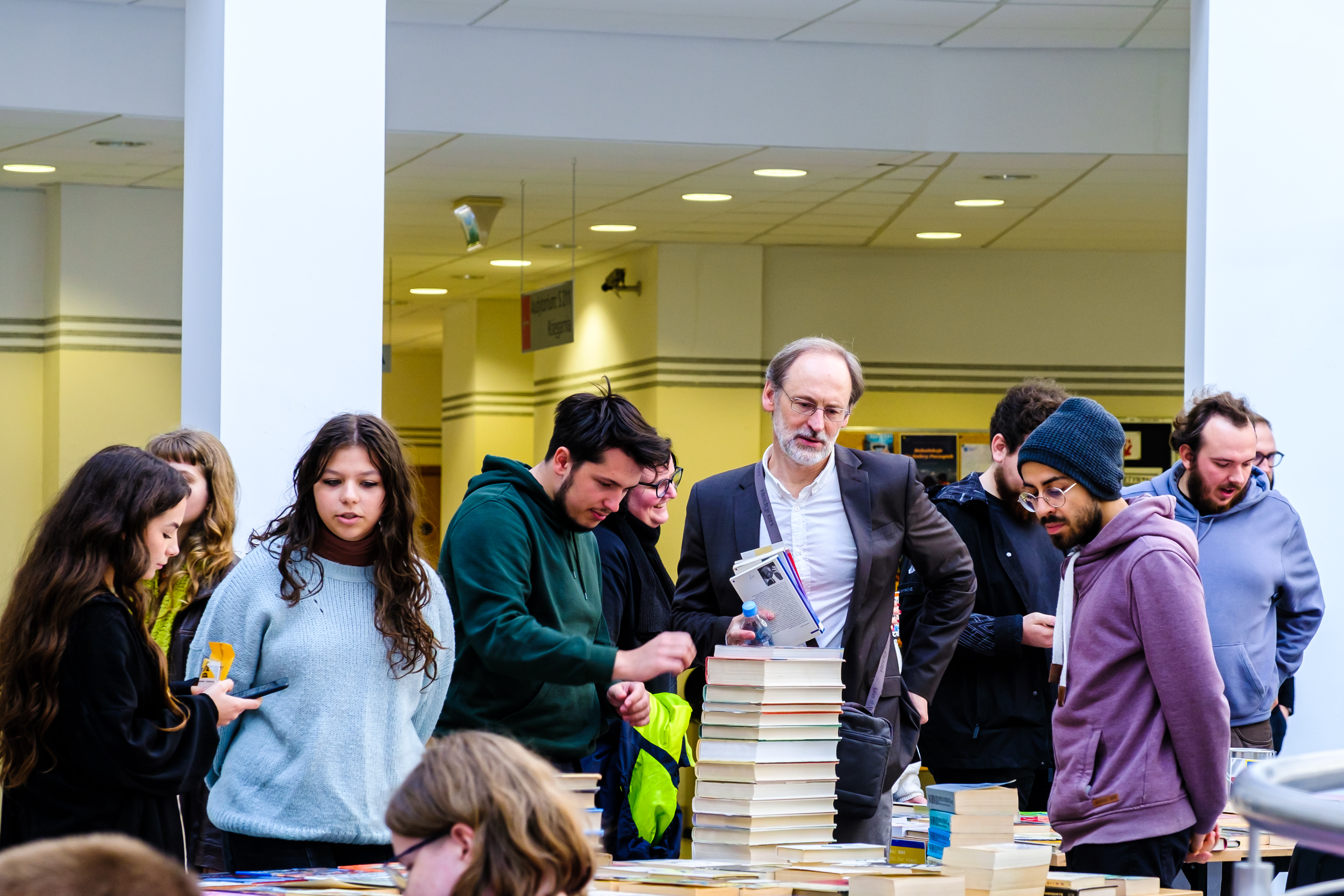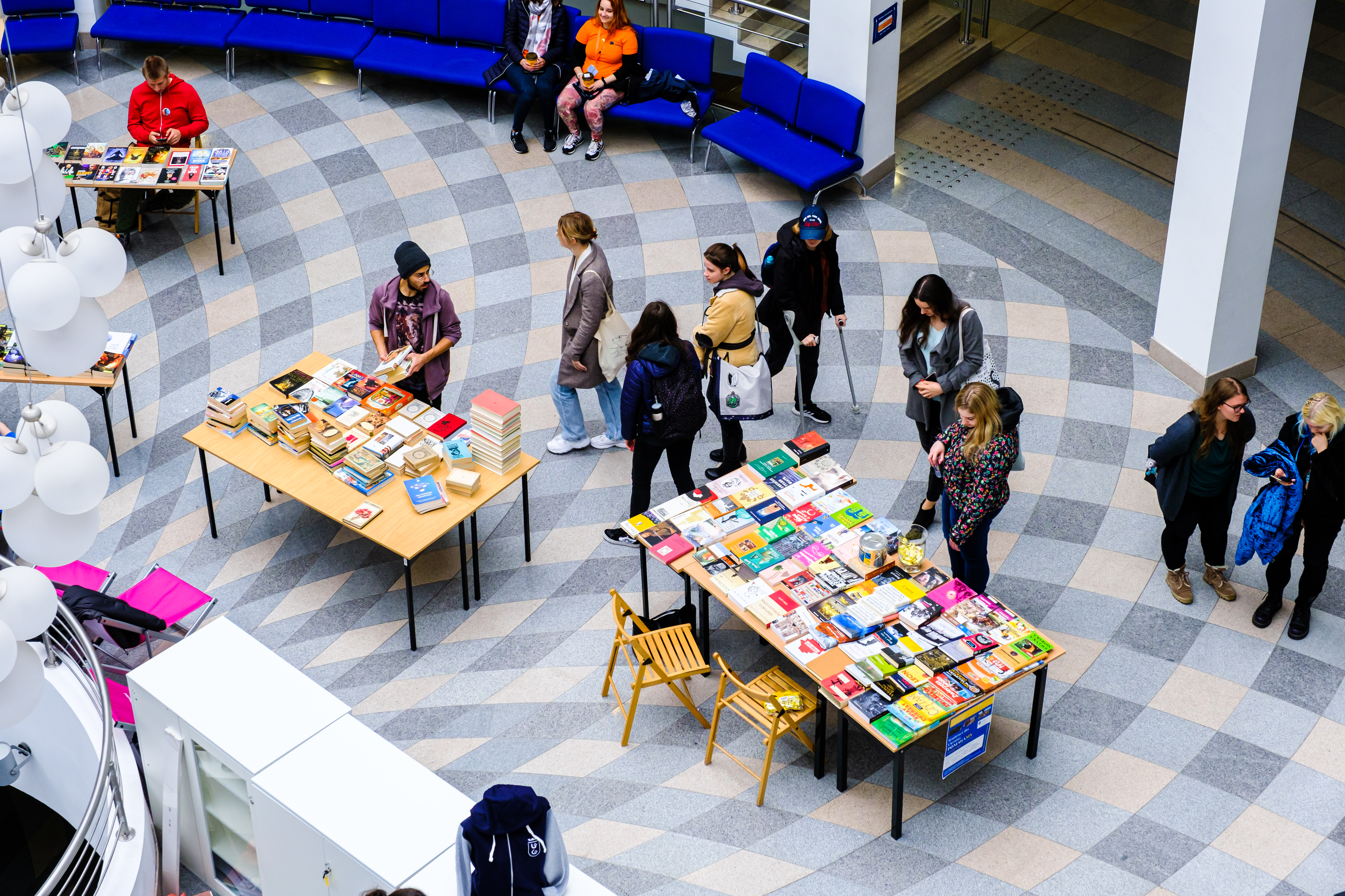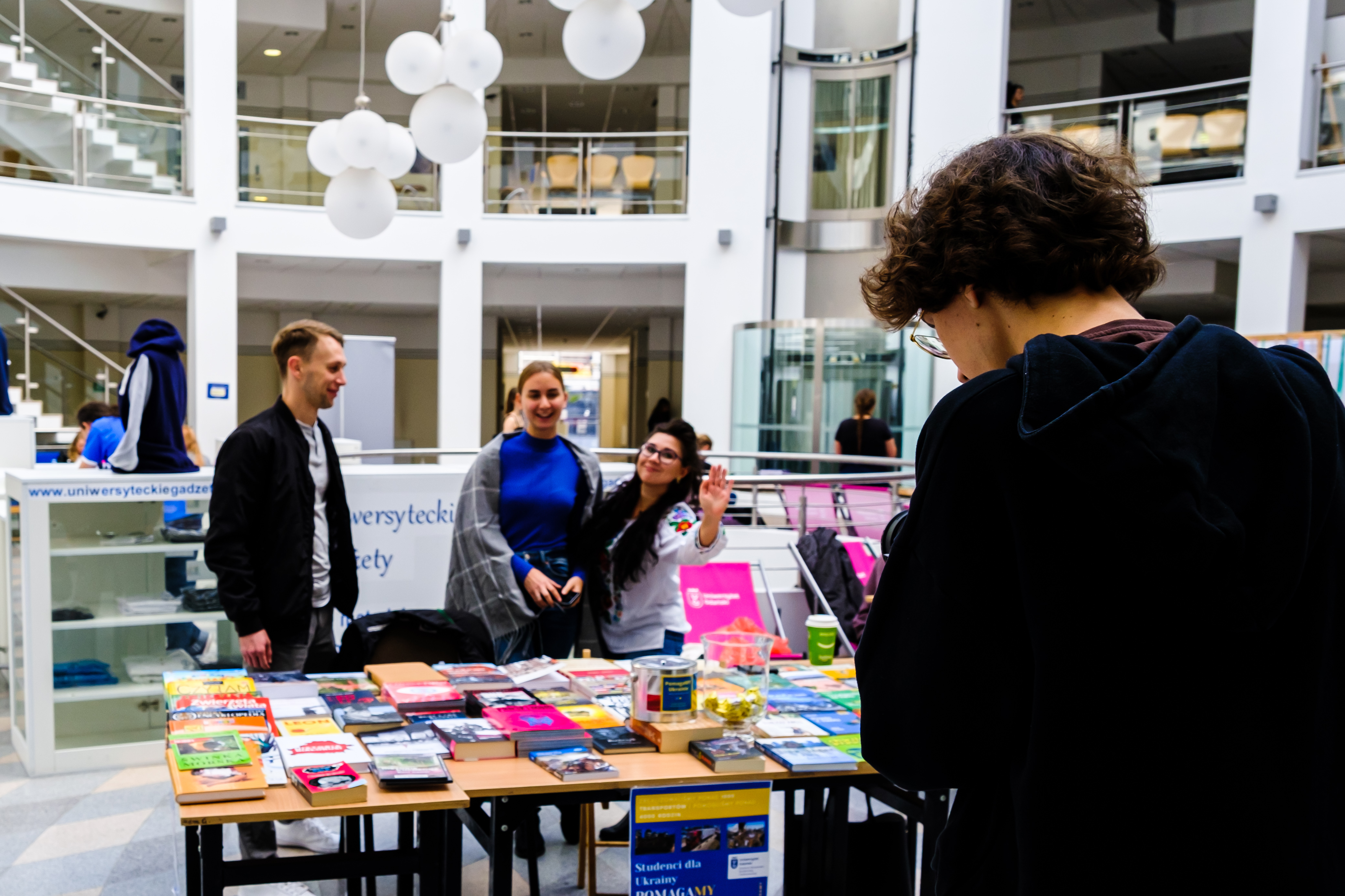 Podczas wydarzenia odbył się także kiermasz książek, w ramach którego członkowie społeczności akademickiej mogli sprzedać lub wymienić nie tylko podręczniki. Dzięki wsparciu pracowników, studentów i doktorantów, którzy podarowali książki pojawiło się stoisko charytatywne Komitetu Społecznego Studenci dla Ukrainy, na którym - w zamian za datek finansowy - można było wybierać spośród kilkuset interesujących pozycji.