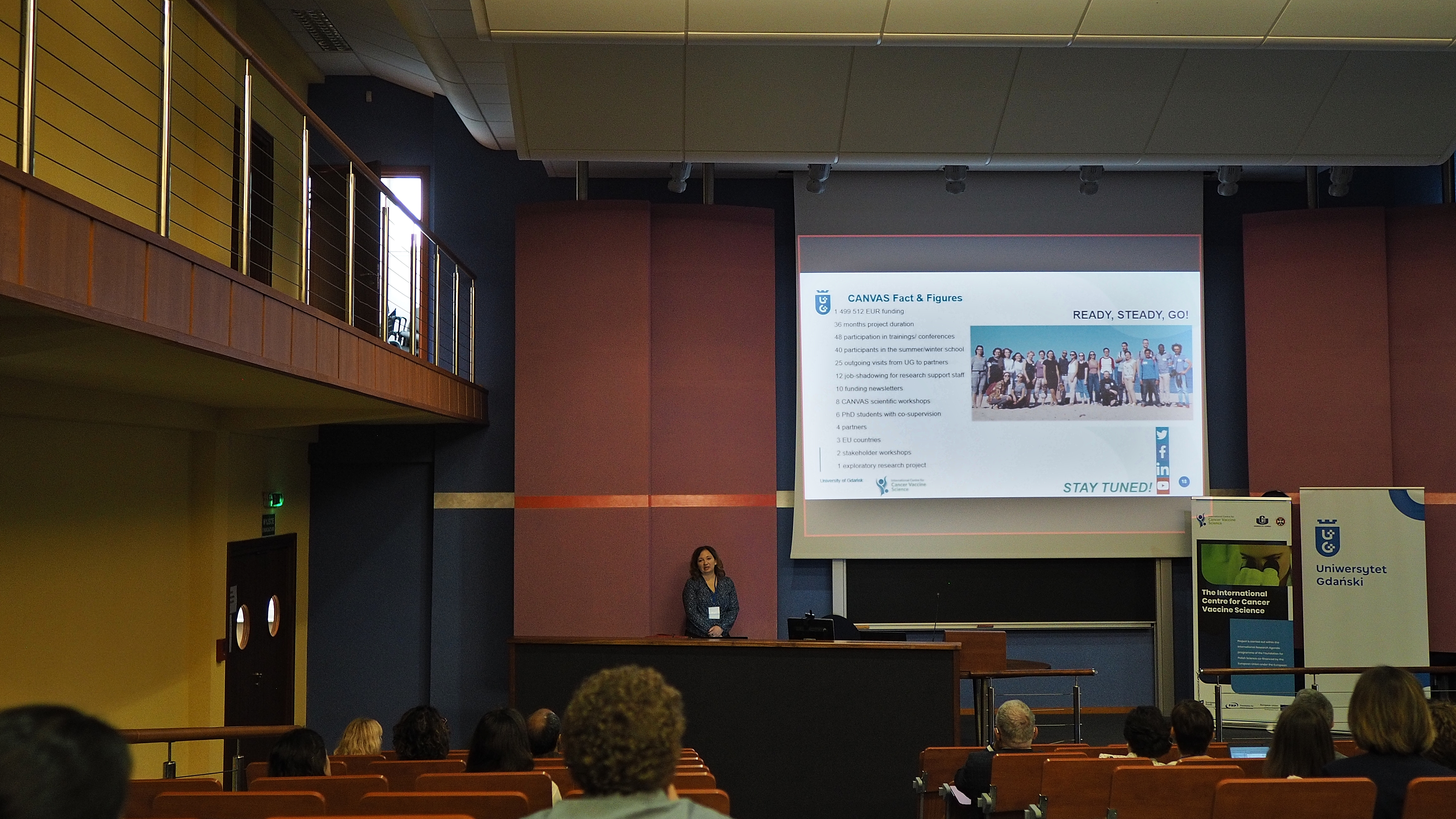 Podczas otwarcia CANVAS o projekcie uczestnikom opowiedziała Izabela Raszczyk z ICCVS. W ramach uroczystości odbyło się także naukowe sympozjum, podczas którego badacze z Hiszpanii i Francji poruszyli o różne aspekty badań nad rakiem. Wykład gościnny o immunologii i immunoterapii guzów wygłosiła prof. Eva Martínez-Cáceres ze Szpitala Universitari Germans Trias i Pujol oraz Uniwersytetu Autonomicznego w Barcelonie. Głos zabrali także partnerzy UG z projektu Canvas jak i pracownicy ICCVS.