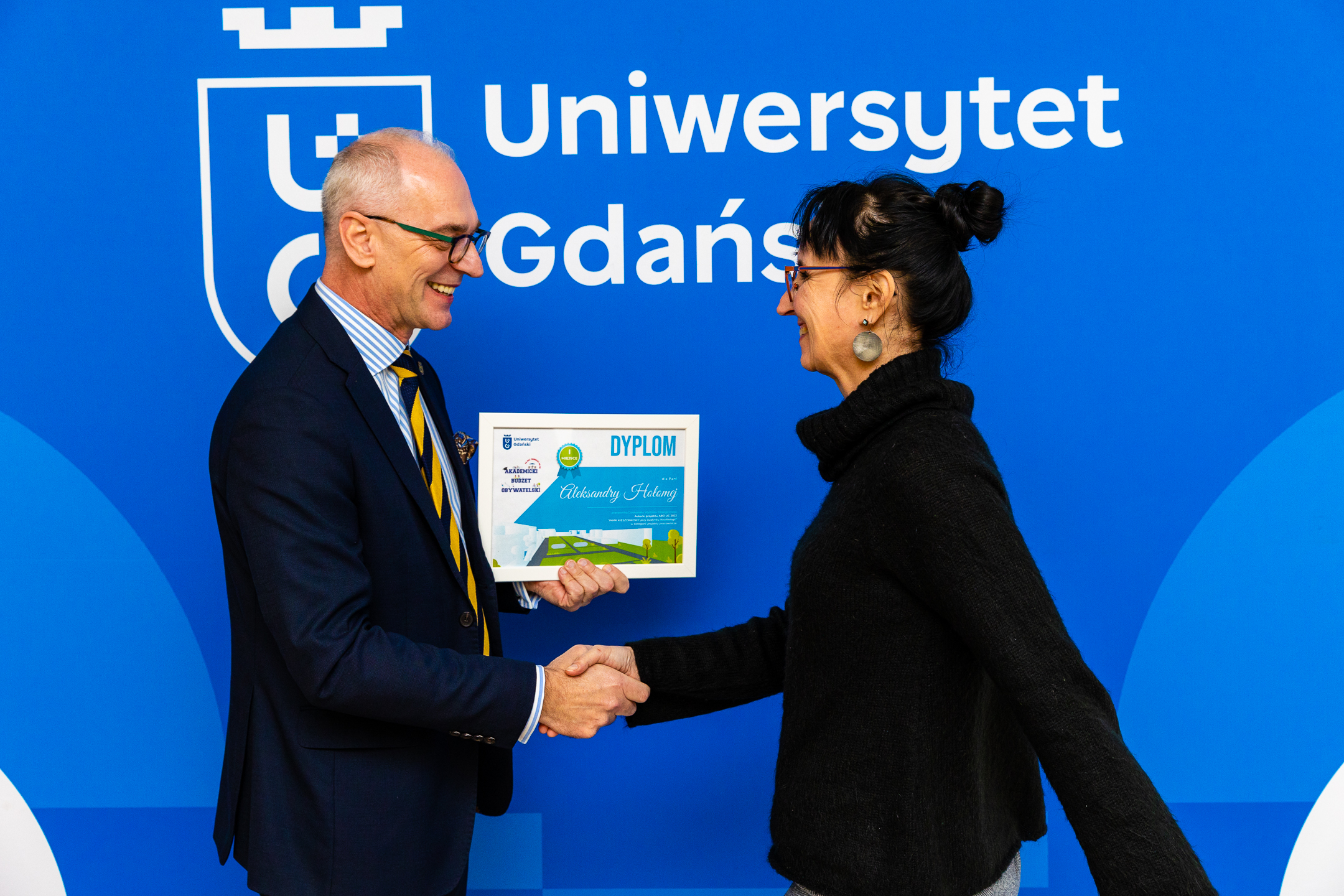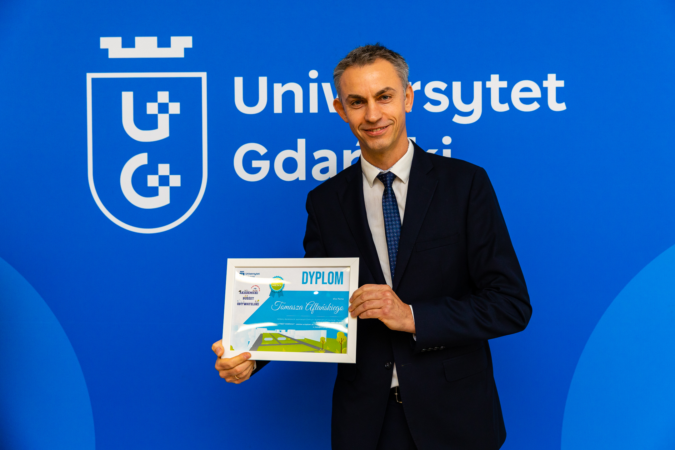 - W tym konkursie chodziło między innymi o aktywizację naszego środowiska i o pewną identyfikację z uczelnią, żebyśmy pomyśleli o tej przestrzeni, w której spędzamy dużo godzin każdego dnia. Dobrze byłoby zatem, aby to miejsce stawało się coraz bardziej przyjazne i służyło nam wszystkim: pracownikom, studentom i doktorantom - powiedział na otwarcie uroczystości Prorektor ds. Studenckich i Jakości Kształcenia UG dr hab. Arnold Kłonczyński, prof. UG. W trakcie wydarzenia odtworzono także film z gratulacjami od Rektora UG prof. dr hab. Piotra Stepnowskiego, który w tym czasie przebywał na posiedzeniu Konferencji Rektorów Uniwersytetów Polskich.