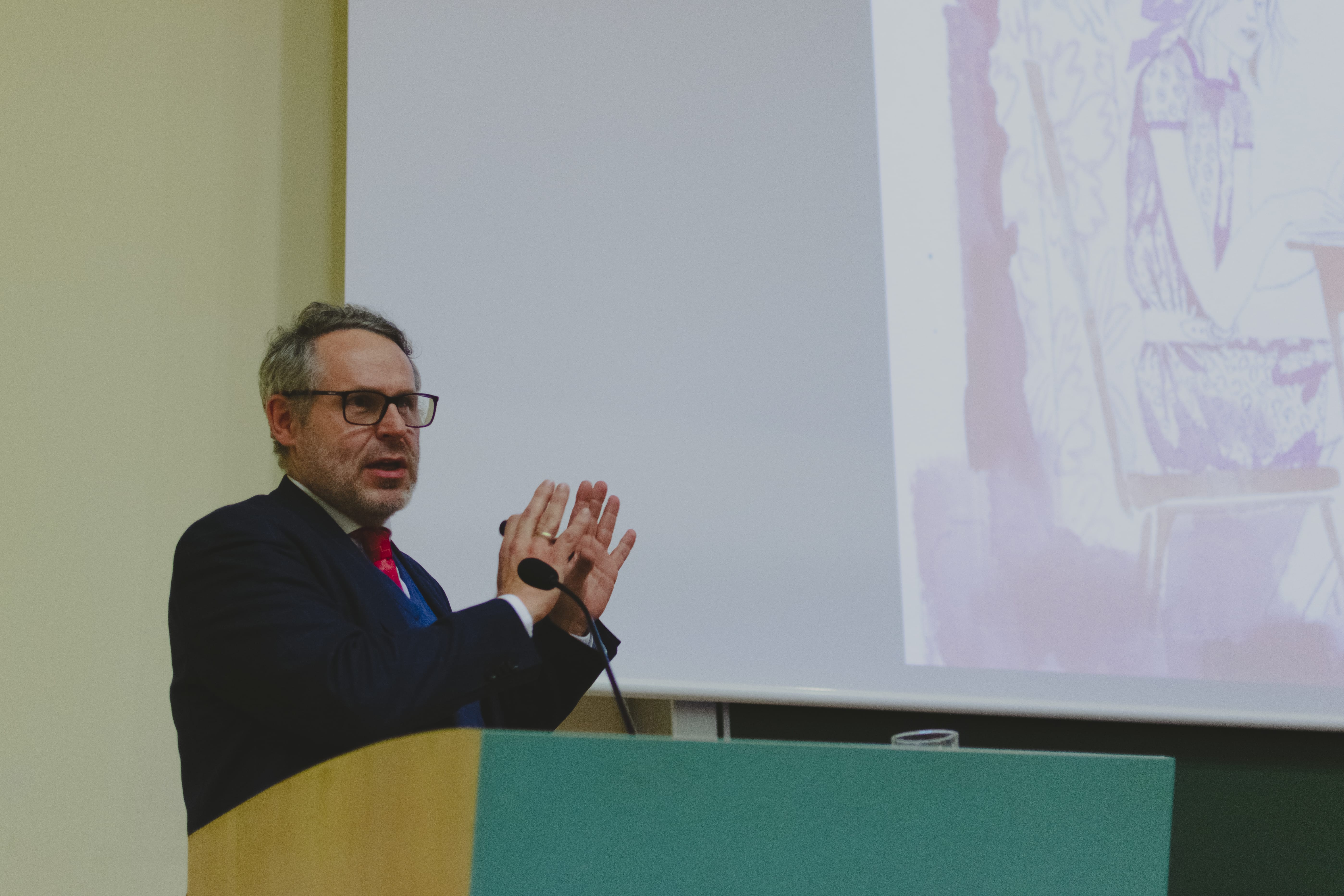 B.M.: Tak, dobór wyglądał w ten sposób, że posłaliśmy tak zwany otwarte zaproszenie) na social media, ale też w czasie kiedy jeszcze czekaliśmy na spływające propozycje, byłam na kongresie, na który jeżdżę corocznie, to jest kongres mediewistyczny w Leeds i tam po prostu zaprosiłam kolegów. Do naszych spikerów, w tym wspomnianego Jacka Hartnella, napisałam po prostu mejla, że chcieliśmy go zaprosić na uniwersytet jako gościa specjalnego i właściwie zgodził się bez wahania. Tym razem Jack mówił o człowieku rannym, prezentował ikonografię przedstawiająca takiego rannego w różne części ciała człowieka. Natomiast drugą spikerką była pani profesor Daniela Rywikova, którą znam z innych kontaktów naukowych i wiedziałam, że zajmuje się również tematyką ciała, ikonografią śmierci ale też różnym wyobrażeniom „ciała mistycznego”. Trzecim z kolei został pan profesor Andrzej Wypustek, który również zajmuje się ciałem w starożytnym Rzymie, tym razem postawił pytanie o orgie, czy są mitem czy mają odbicie w starożytnych źródłach. Muszę powiedzieć, że większość zgłoszeń, które napłynęły zostały zaakceptowane, czyli po prostu odpowiadały dokładnie temu, o co nam chodziło.