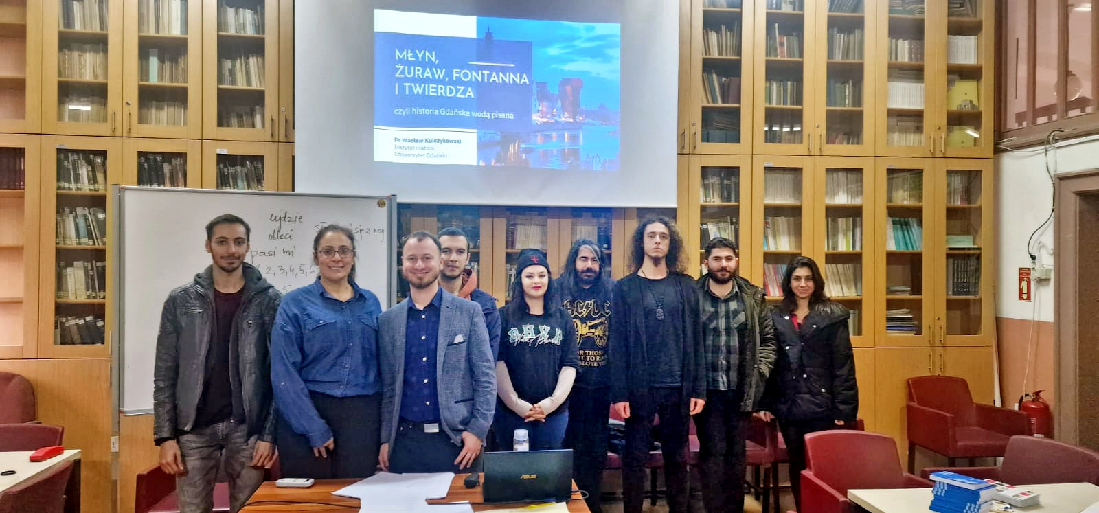 Dr Wacław Kulczykowski z Zakładu Edukacji Historycznej przeprowadził zajęcia zatytułowane „Młyn, żuraw, fontanna i twierdza, czyli historia Gdańska wodą pisana". Opowiedział o najbardziej znanych gdańskich zabytkach, których funkcje oraz historia nierozerwalnie związane są z morskim charakterem miasta. Warsztaty zostały uzupełnione o historyczne nawiązania polsko-tureckie, dyskusję ze studentkami i studentami, quiz, upominki, a także rozmowy o spacerujących po budynku stambulskich kotach.
