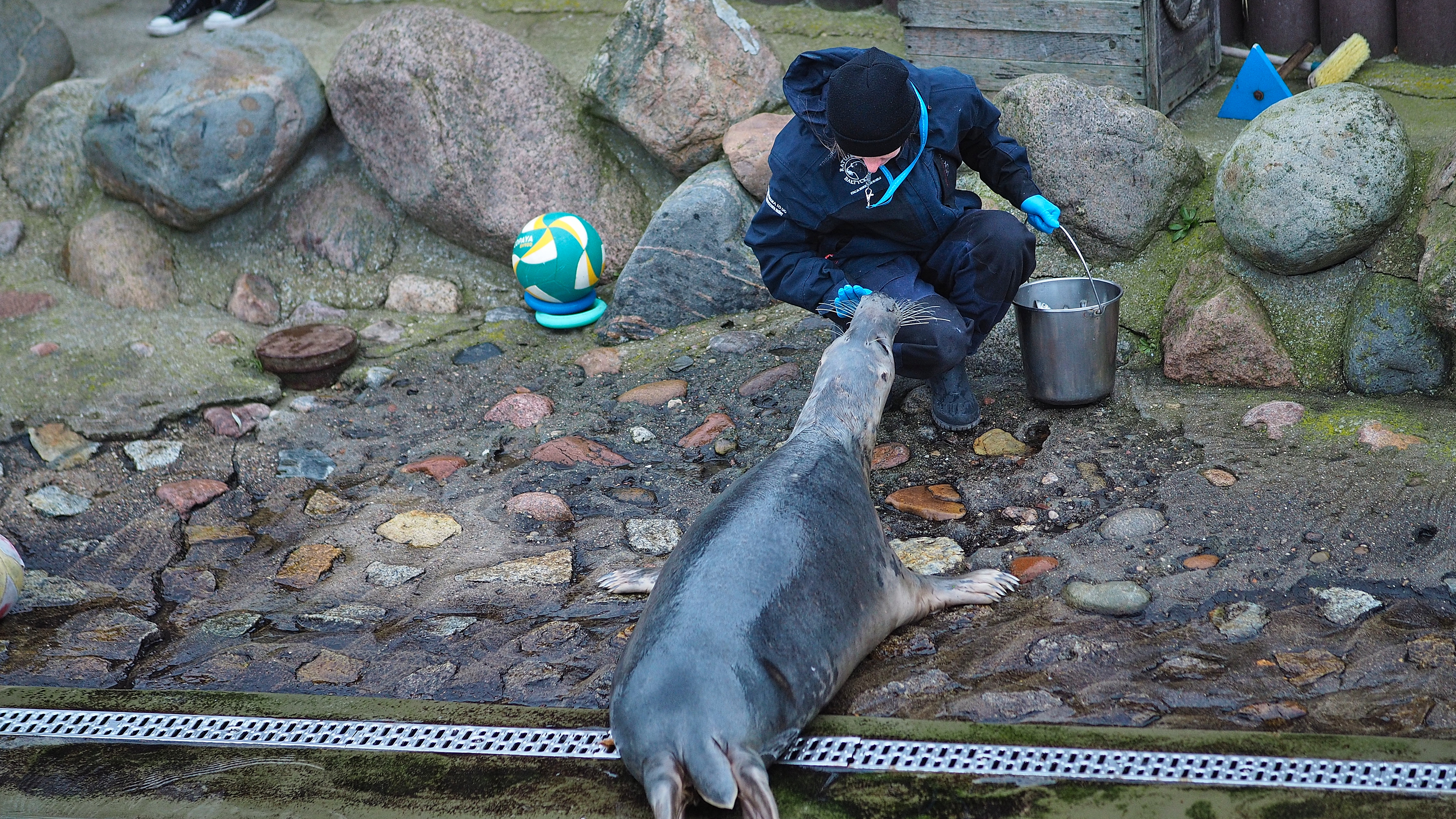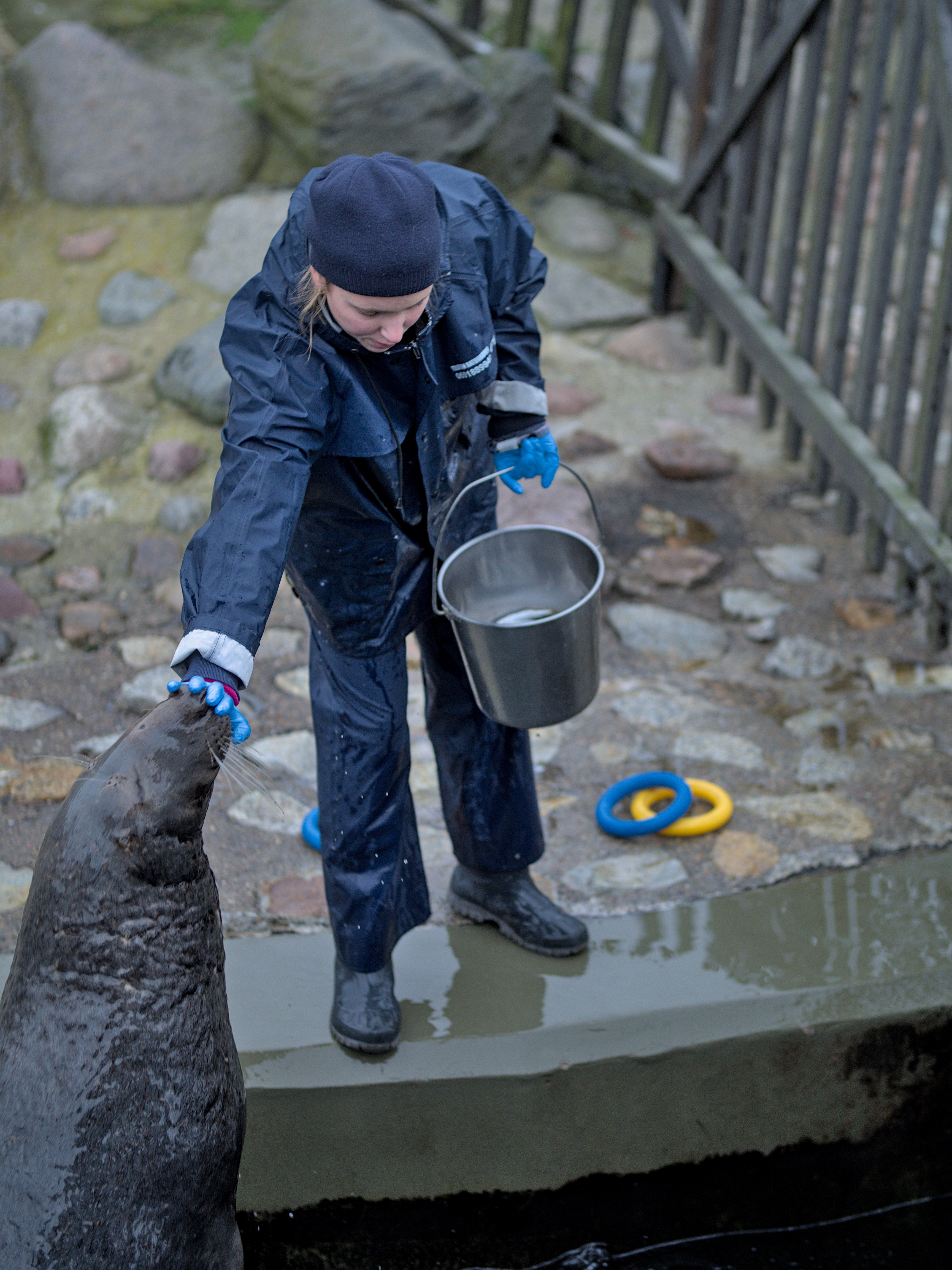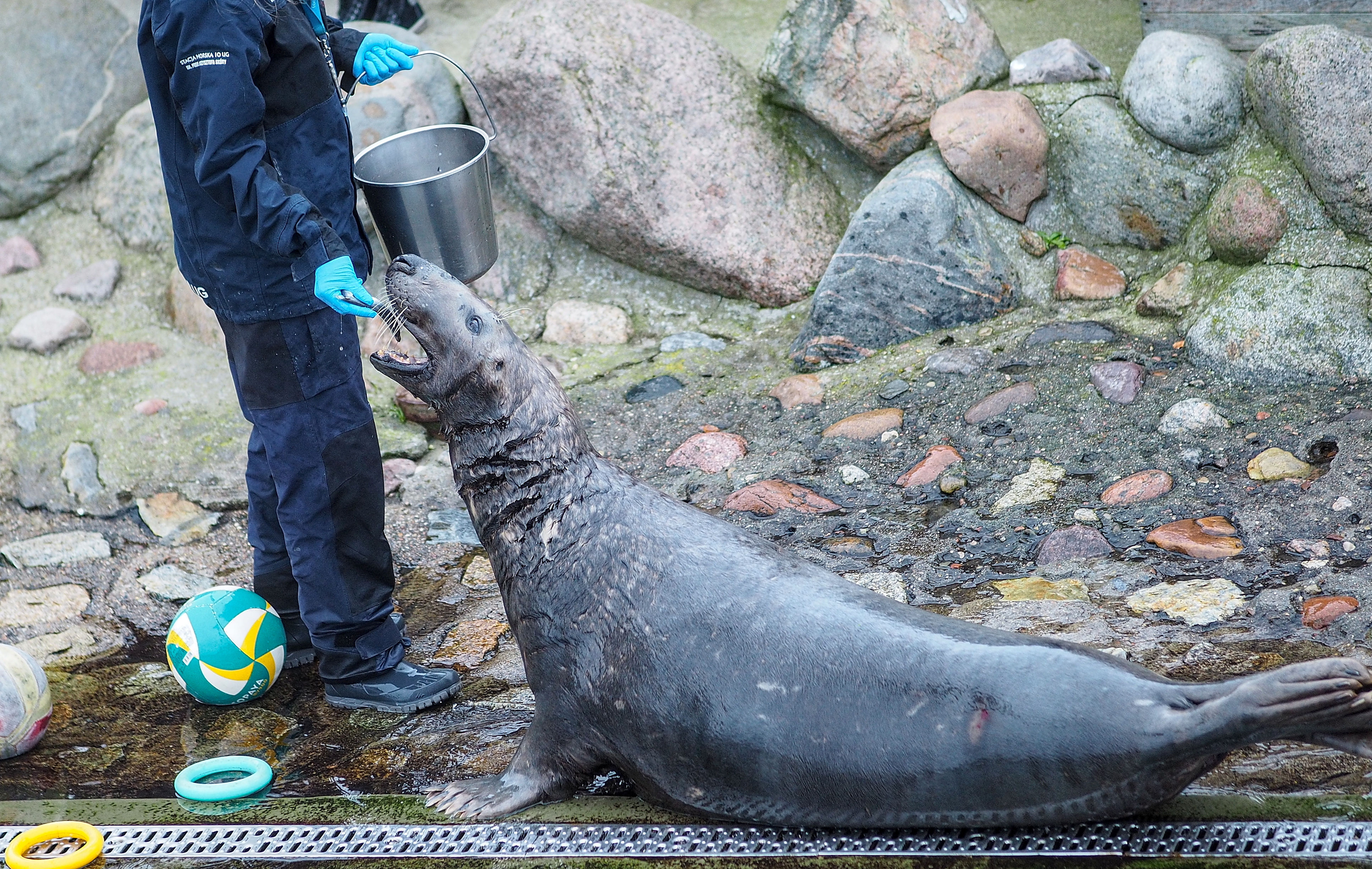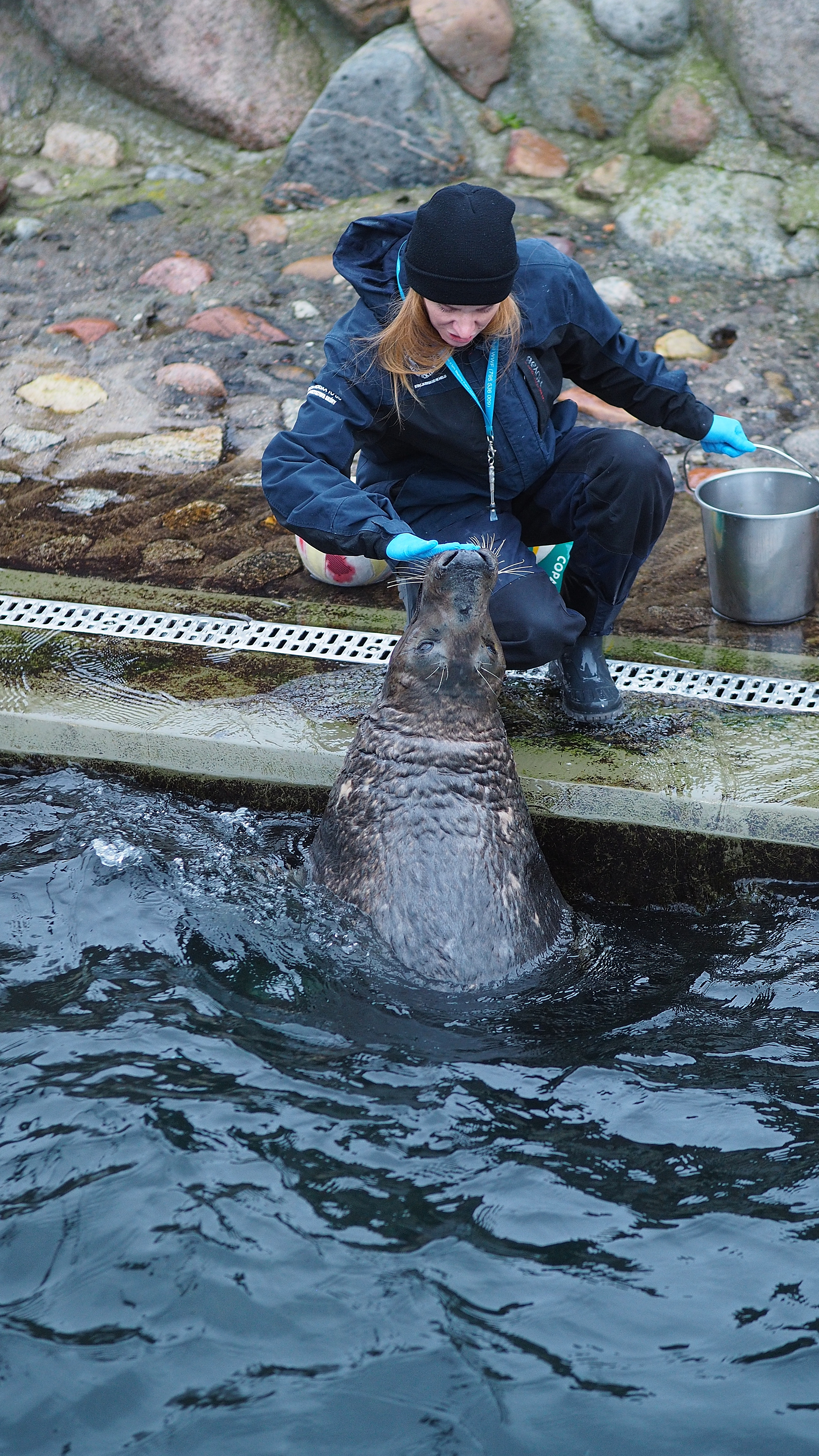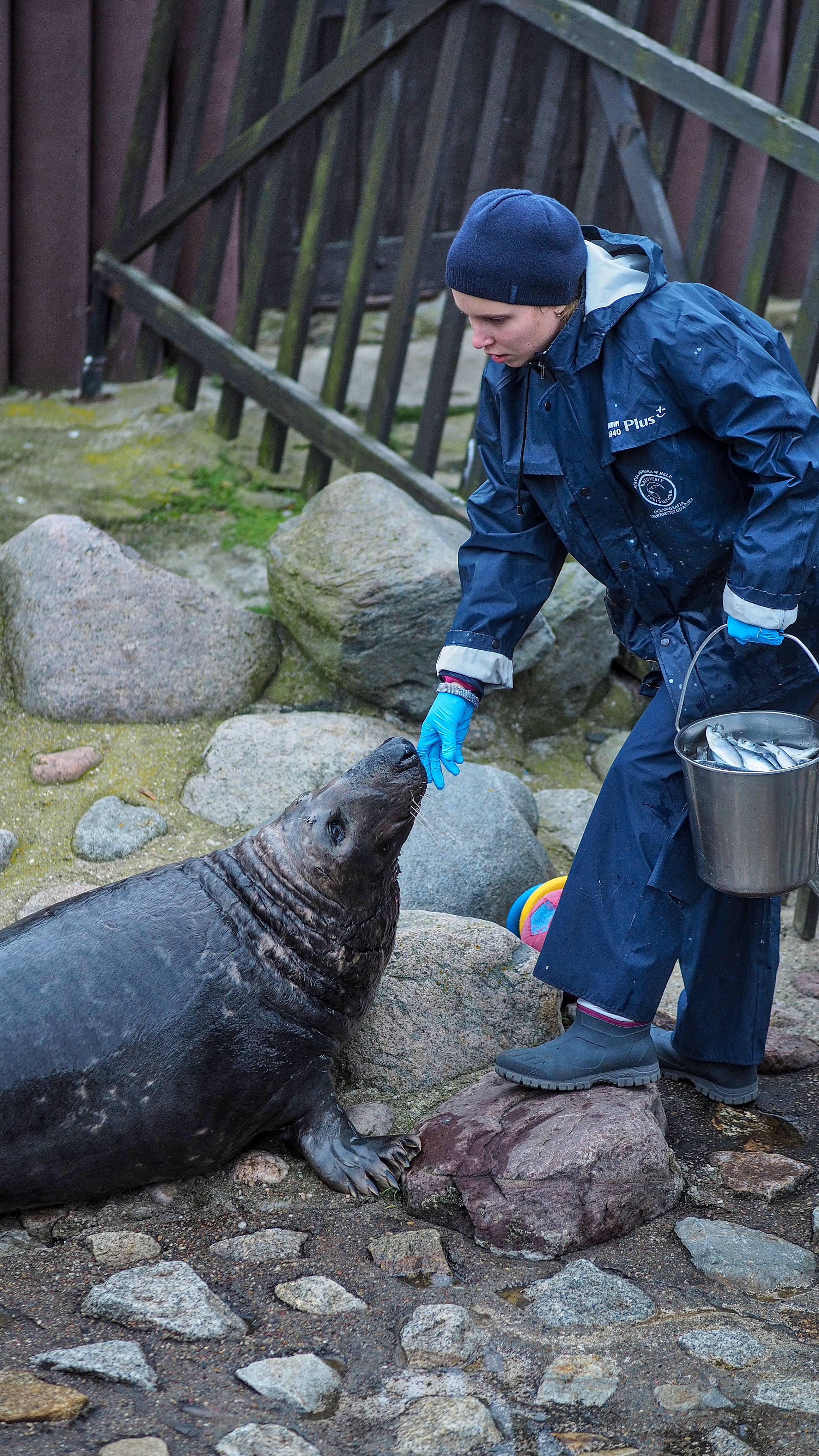 WM: Po kolei trzeba je oswajać z człowiekiem, jak to bywa z dzikimi zwierzętami. Zaczynamy tak, żeby najpierw wzięła rybę z ręki, później, kiedy pozwoli się dotknąć, też dostanie rybę. Aż do głaskania po całym ciele. Z każdym ćwiczeniem dostają jak najwięcej ryby, żeby kojarzyły to z czymś dobrym. Jeśli chodzi o foki, które trafiają do nas na rehabilitacje to staramy się jak najmniej mieć z nimi tego kontaktu, bo chcemy, żeby później wróciły na wolność.