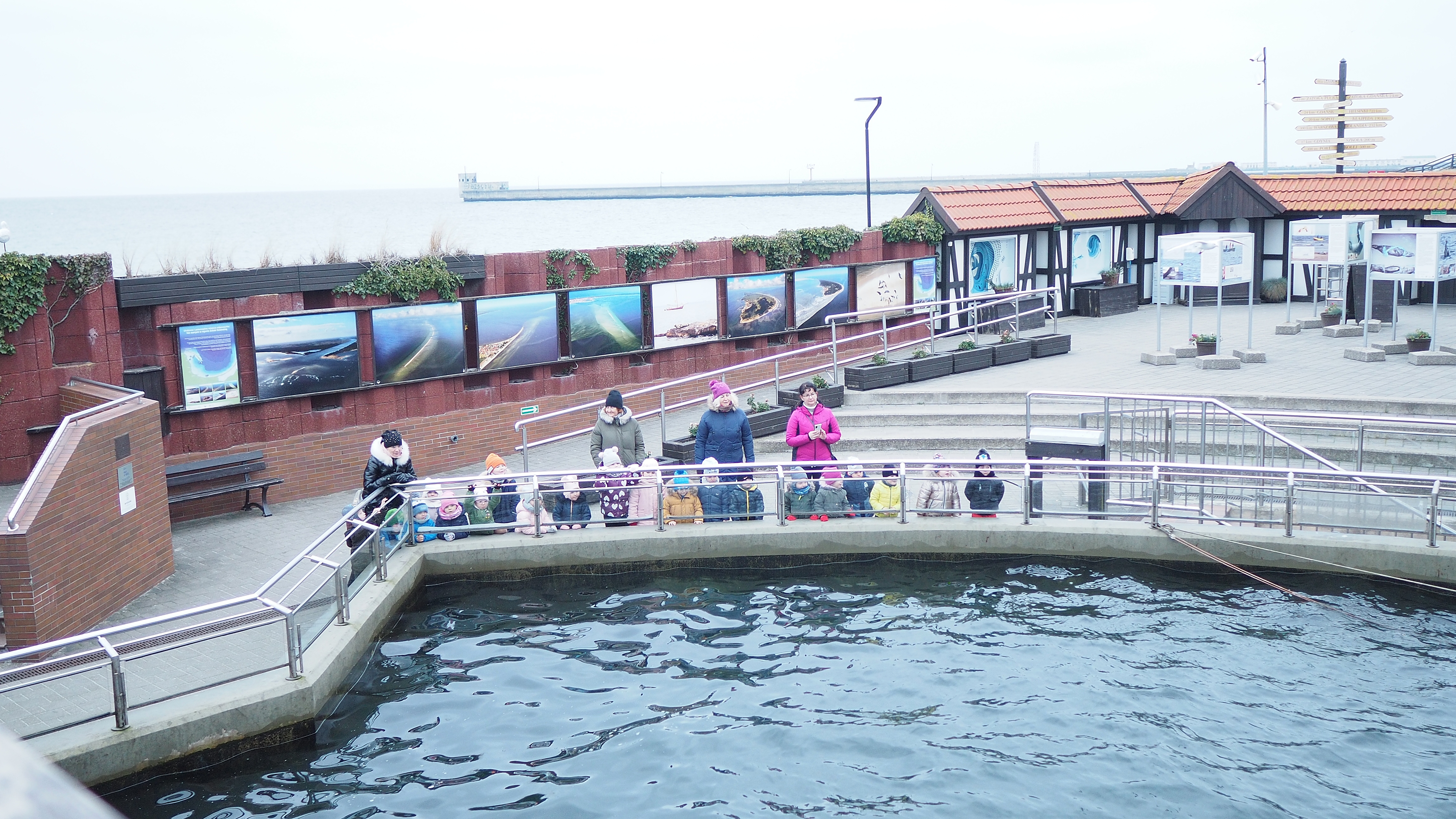 Hel wita nas wiatrem i zimnem, które każą nam naciągnąć wszystkie szale, kołnierze i czapki mocniej. Mamy szczęście, gdyż pomimo drobnego poślizgu czasowego zdążyliśmy na karmienie zwierząt. Gdy docieramy na miejsce, okazuje się, że nie jesteśmy jedynymi wizytatorami. Poza naszą skromną delegacją fokarium odwiedziła również grupa przedszkolaków. W odróżnieniu od nas, dzieci przyszły tu głównie, żeby obejrzeć zwierzęta, z którymi dotychczas nie miały styczności.