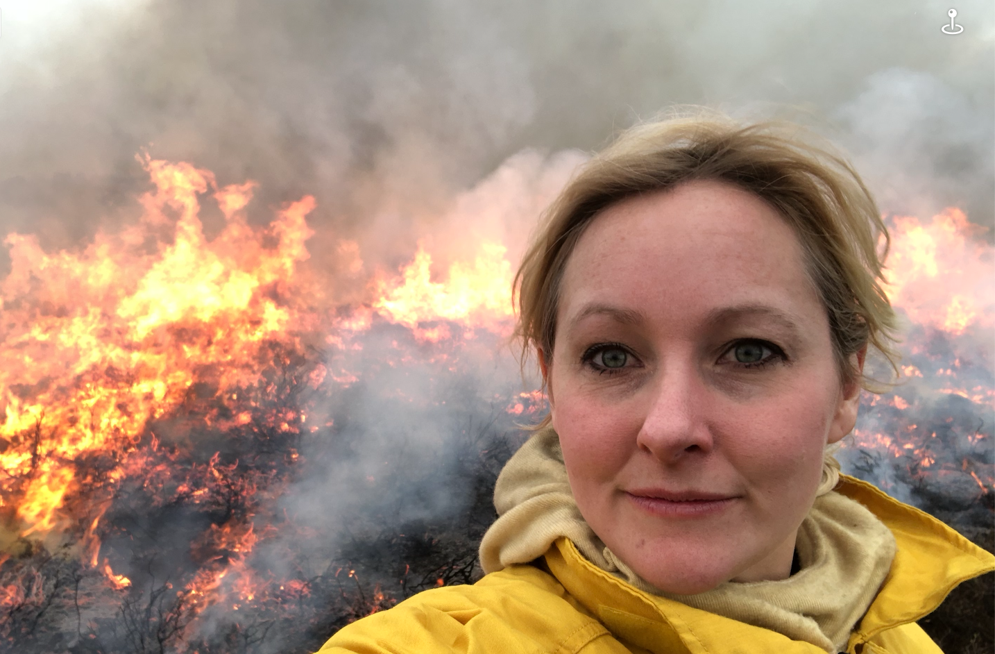 Kontrolowany pożar w Dorest, Wielka Brytania. Na zdjęciu prof. Claire Belcher