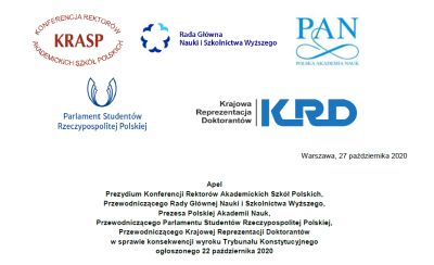 Apel Prezydium Konferencji Rektorów Akademickich Szkół Polskich, Przewodniczącego Rady Głównej Nauki i Szkolnictwa Wyższego, Prezesa Polskiej Akademii Nauk, Przewodniczącego Parlamentu Studentów Rzeczypospolitej Polskiej, Przewodniczącego Krajowej Reprezentacji Doktorantów w sprawie konsekwencji wyroku Trybunału Konstytucyjnego ogłoszonego 22 października 2020