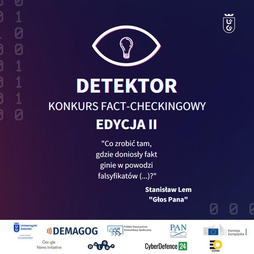 II edycja ogólnopolskiego akademickiego konkursu fact-checkingowego „DETEKTOR” organizowana przez Instytut Mediów, Dziennikarstwa i Komunikacji Społecznej na Uniwersytecie Gdańskim dobiegła końca. Znamy już zwycięzców – to studenci Uniwersytetu Gdańskiego, Uniwersytetu Marii Curie-Skłodowskiej i Uniwersytetu Jagiellońskiego!