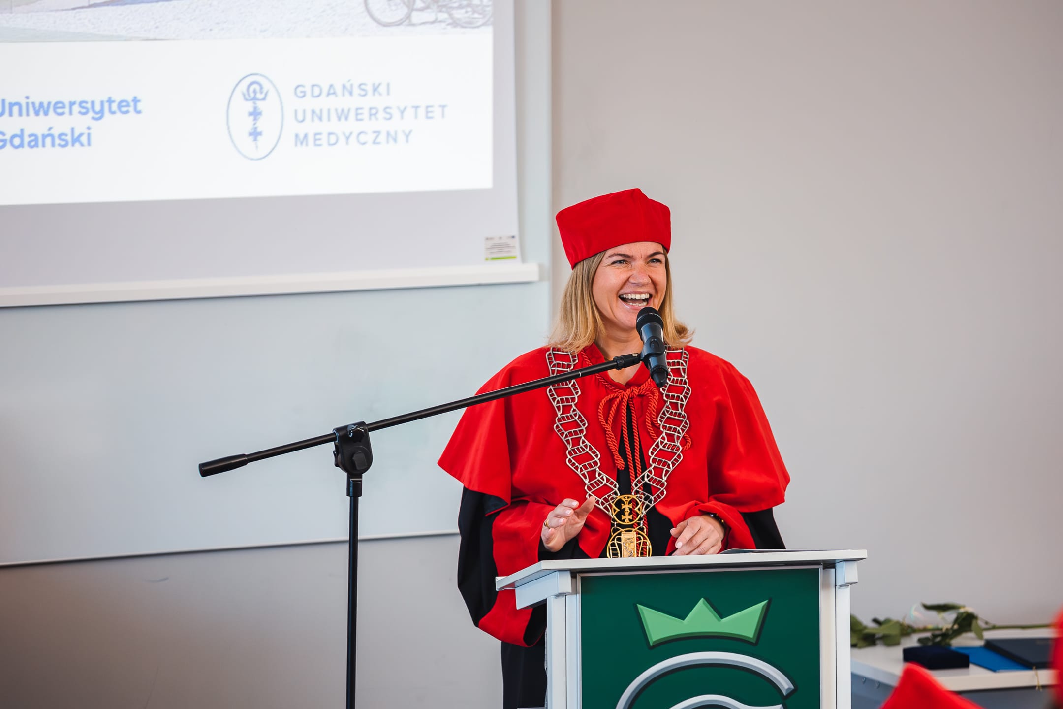 - Jestem niezwykle dumny z tego, że mogę dzisiaj stać z państwem i być świadkiem osiągnięcia tego wspólnego kamienia milowego Uniwersytetu Gdańskiego i Gdańskiego Uniwersytetu Medycznego - powiedział Prorektor ds. Badań Naukowych  UG prof. dr hab. Wiesław Laskowski.- Przez ostanie trzy dekady Międzyuczelniany Wydział Biotechnologii pokazywał, że znajduje się w ścisłej czołówce pod względem innowacji naukowych, badań i jakości kształcenia. Był kolebką dla bystrych umysłów i rozwijał talenty. Powodował, że młodzi ludzie chcieli zostawać biotechnologami.