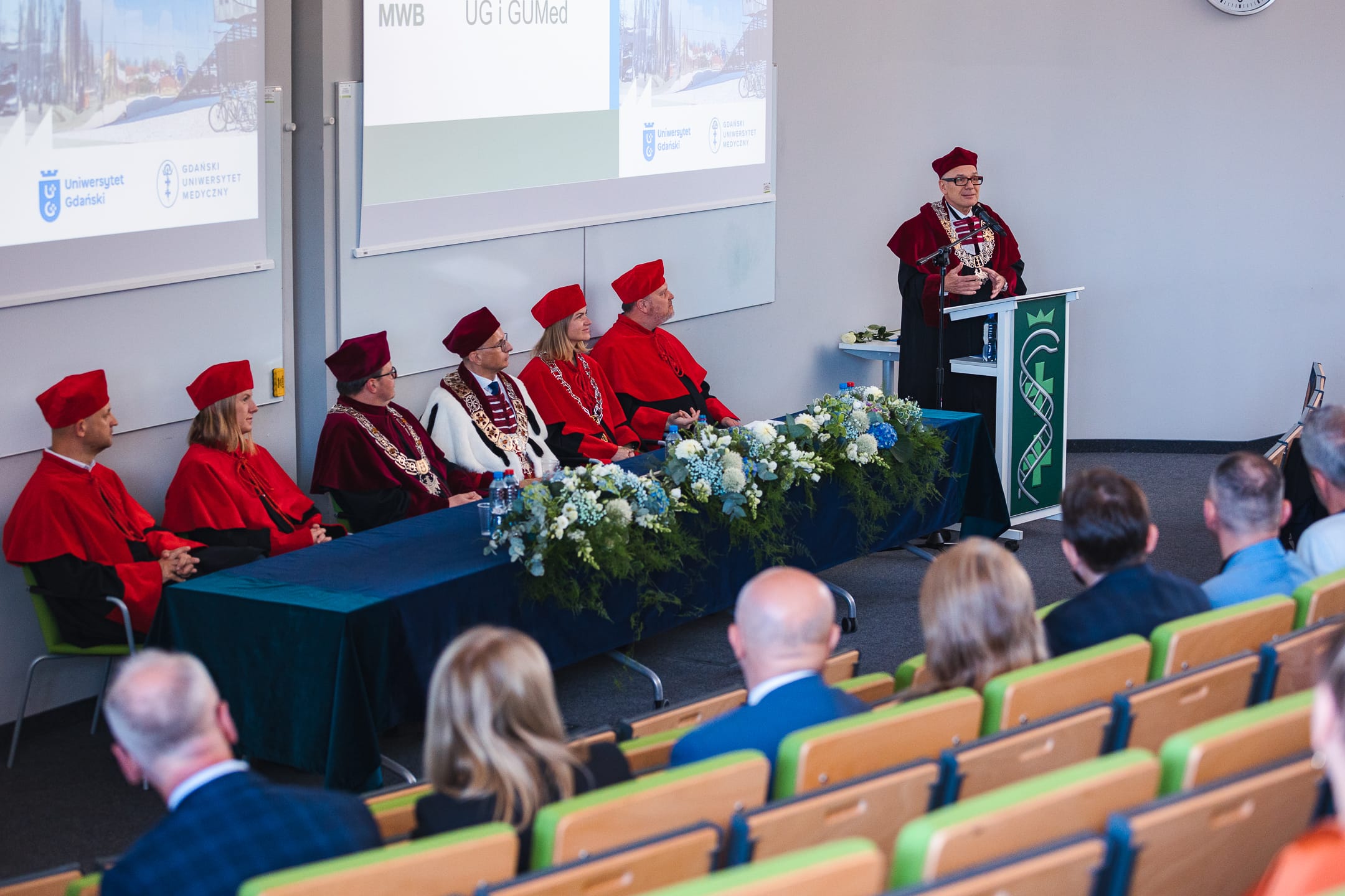 Rektor GUMed prof. dr hab. Marcin Gruchała opowiedział o swoich wspomnieniach z czasów tworzenia MWB UG i GUMed. Zauważył, że nowy wydział wpasował się w szeroko pojętą potrzebę z lat 90. dołączenia do Zachodu i prowadzenia działań na poziomie światowym. - Podkreślano, że ten wydział jest tworzony tak, jak na Zachodzie, że studenci mogą wybierać ścieżkę edukacyjną, przedmioty i że są zaangażowani w pracę naukową. Bardzo nas to ciekawiło, na te pierwsze rekrutacje Biotechnologii zgłaszali się także studenci kierunku lekarskiego - powiedział Rektor GUMed. W trakcie swojej przemowy prof. Marcin Gruchała podkreślił także jak ważną inicjatywą jest MWB UG i GUMed w kontekście szerszej współpracy w ramach Uczelni Fahrenheita.
