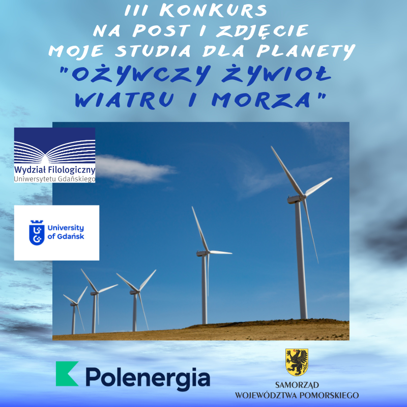 Zapraszamy studentów i doktorantów Uniwersytetu Gdańskiego oraz uczniów szkół ponadpodstawowych województwa pomorskiego do udziału w III edycji konkursu „Moje studia dla planety” pod hasłem Ożywczy żywioł wiatru i morza.