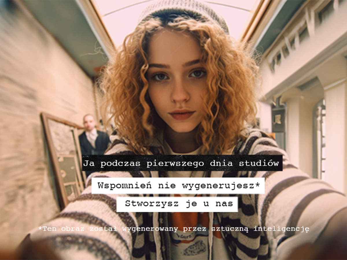 Prawdziwe wspomnienia, których nie da się wygenerować przez AI. Podkreślając ten fakt, oznaczyliśmy kampanijne kreacje sformułowaniem: „ten obraz został wygenerowany przez sztuczną inteligencję”. Dzięki temu komunikujemy, że prezentowane na materiałach sceny z cyklu „ja podczas …. nauki do pierwszej sesji, pierwszych zajęć na kampusie, pierwszego dnia studiów, pierwszego wykładu”, to ważne momenty z prawdziwego studenckiego życia, jednak odzwierciedlające je obrazy są fikcją. Wyrażamy w ten sposób hasło naszej kampanii: Wspomnień nie wygenerujesz. Stworzysz je u nas.