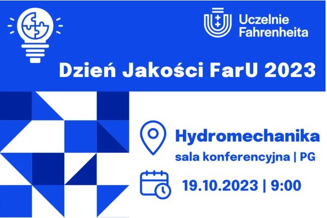 Konferencja „Dzień Jakości FarU” odbędzie się 19 października br. w godz. 9:00-14:00 na Politechnice Gdańskiej w auli budynku Hydromechaniki PG.