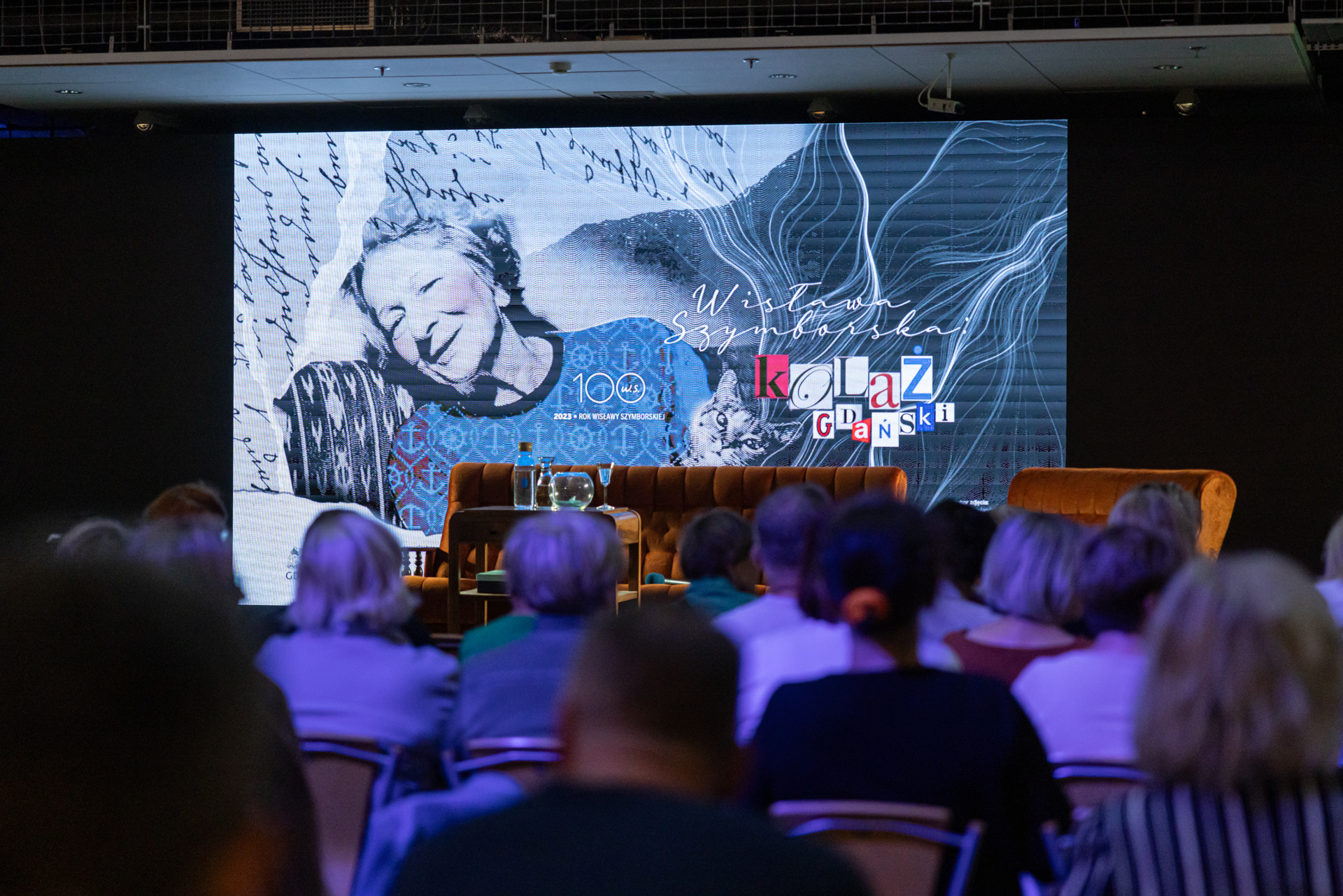 Po spotkaniu widzowie zostali zaproszeni na spektakl Szymborska: kolaż, stworzony przez Akademickie Centrum Kultury UG, studentów wiedzy o teatrze na Uniwersytecie Gdańskim, tancerki Teatru Tańca „Kiosk Ruchu” i solistki Studia Wokalnego UG. Zainspirowane – zarówno pod względem tematyki, jak i techniki wykonania – kolażową twórczością Szymborskiej, swoją premierę miało w marcu 2023 roku podczas Święta Uniwersytetu Gdańskiego. Na scenie spotykamy kilka wcieleń poetki, ukazujących różne oblicza jej osobowości i dojrzałości: od dzieciństwa, po starość. Podróżujemy także po równoległych światach: mieszkaniu poetki, czy mównicy w Sztokholmie, gdzie Szymborska odbierała literacką nagrodę Nobla w 1996 roku. Autorką scenariusza jest Barbara Madany, choreografię opracowała Agata Gregorkiewicz, za oprawę muzyczną i przygotowanie występów odpowiada Krzysztof Majda, a opiekę nad aktorami sprawował Piotr Biedroń (aktor Teatru Wybrzeże). Przedstawienie zostało nagrodzone Grand Prix na festiwalu Studencka Wiosna Teatralna w Lublinie.