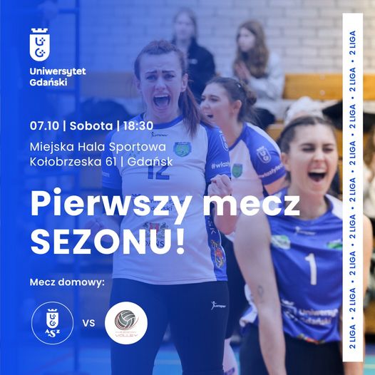 W najbliższy weekend trzy zespoły AZS Uniwersytetu Gdańskiego rozegrają mecze ligowe. Zapraszamy kibiców na mecz inauguracyjny siatkarek, które w Miejskiej Hali Sportowej przy ulicy Kołobrzeskiej w Gdańsku podejmować będą Easy Wrap Volley Kobyłka. Wstęp na mecz jest bezpłatny. W niedzielę, późnym popołudniem, futsaliści AZS UG w pierwszej lidze zagrają z KS Gniezno, a wcześniej na parkiet w Lublinie wybiegną nasze koszykarki.