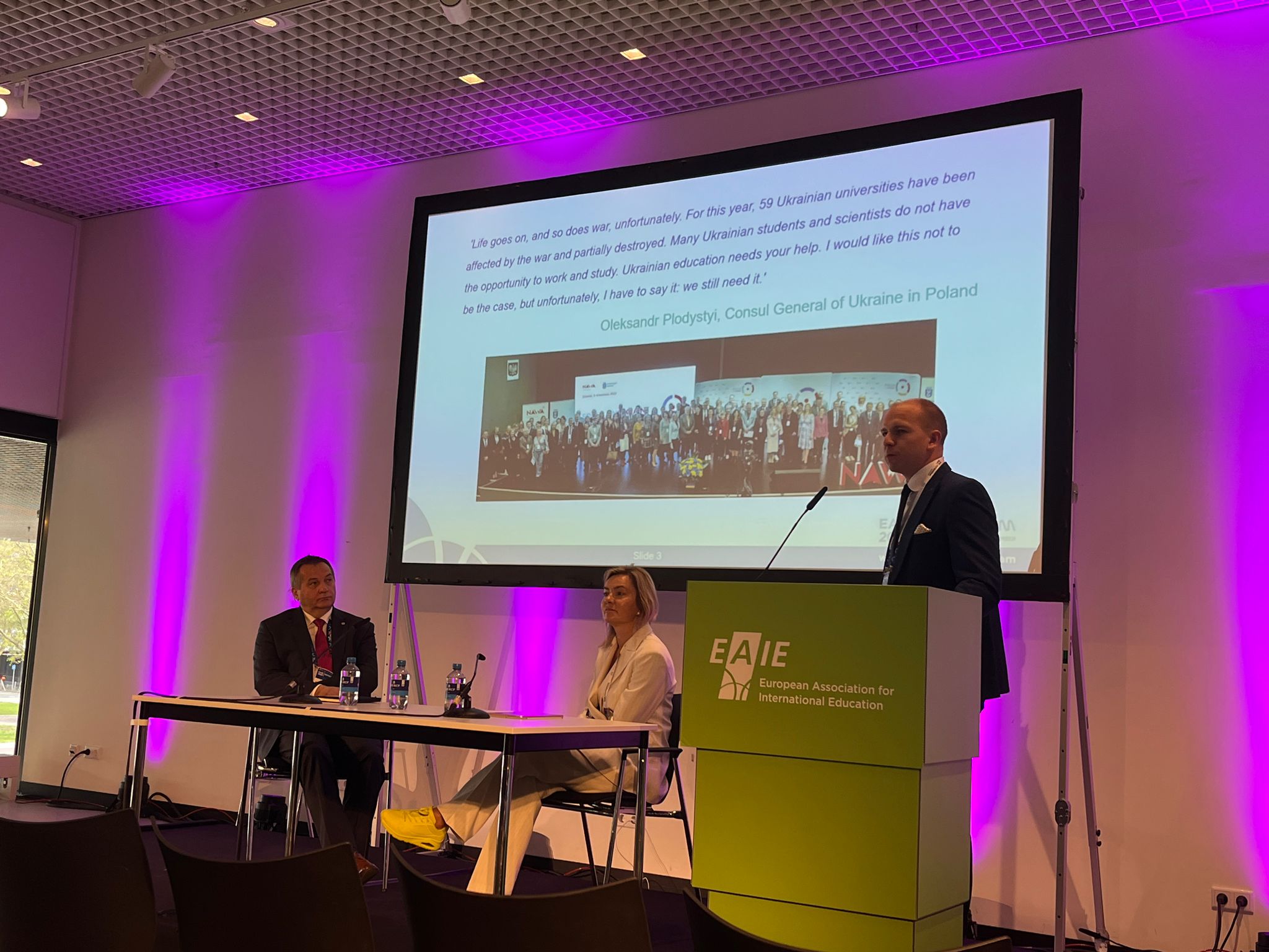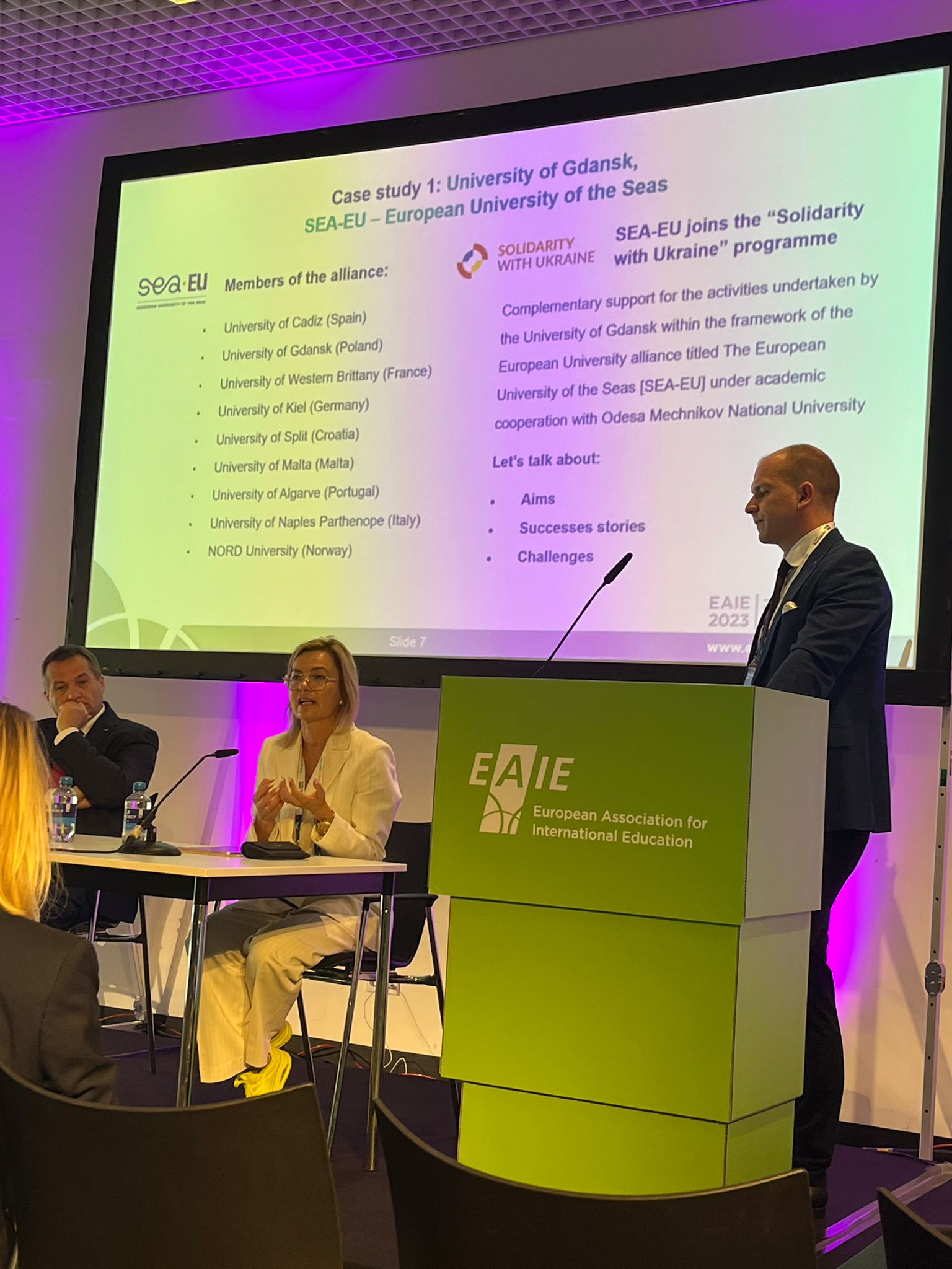 O pomocy Ukrainie i współpracy z Odeskim Uniwersytetem Narodowym im. Ilji Miecznikowa (ONU) mówiła Prorektor ds. Współpracy Międzynarodowej dr hab. Anna Jurkowska-Zeidler, prof. UG podczas konferencji European Association of International Education w Rotterdamie.